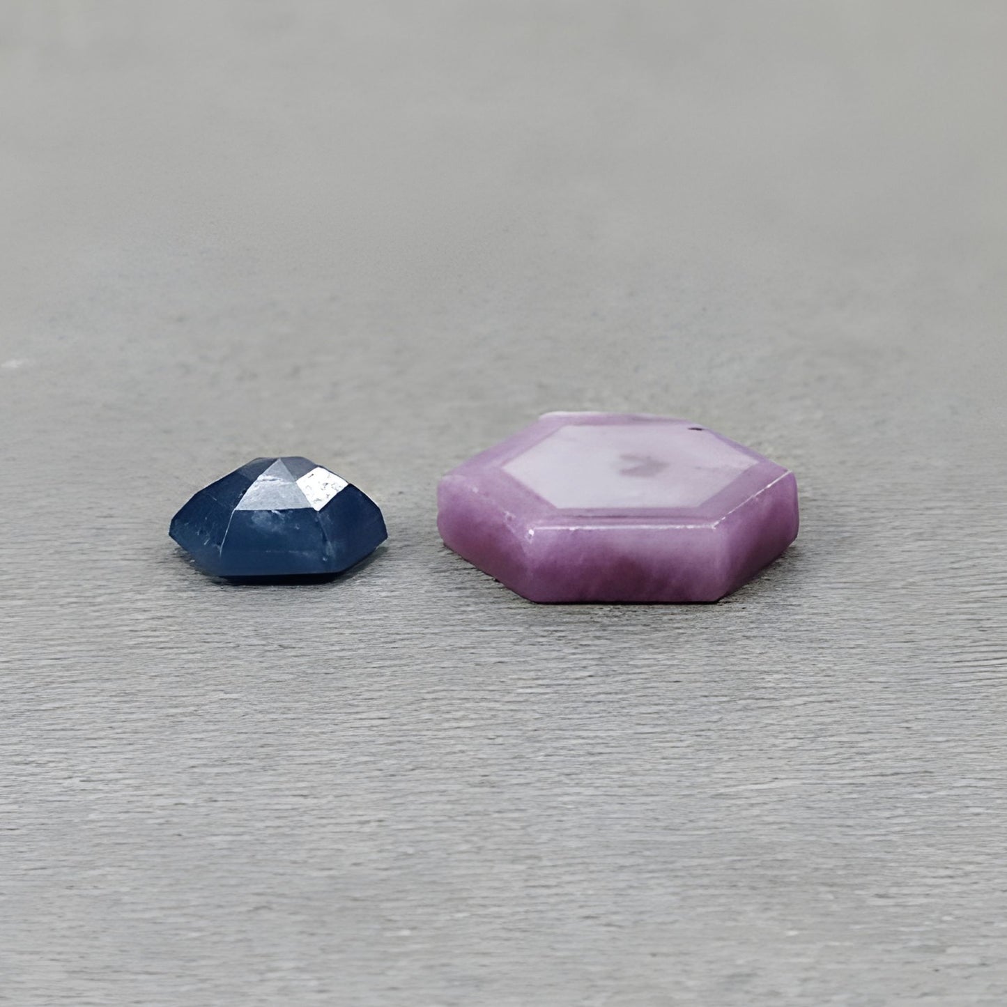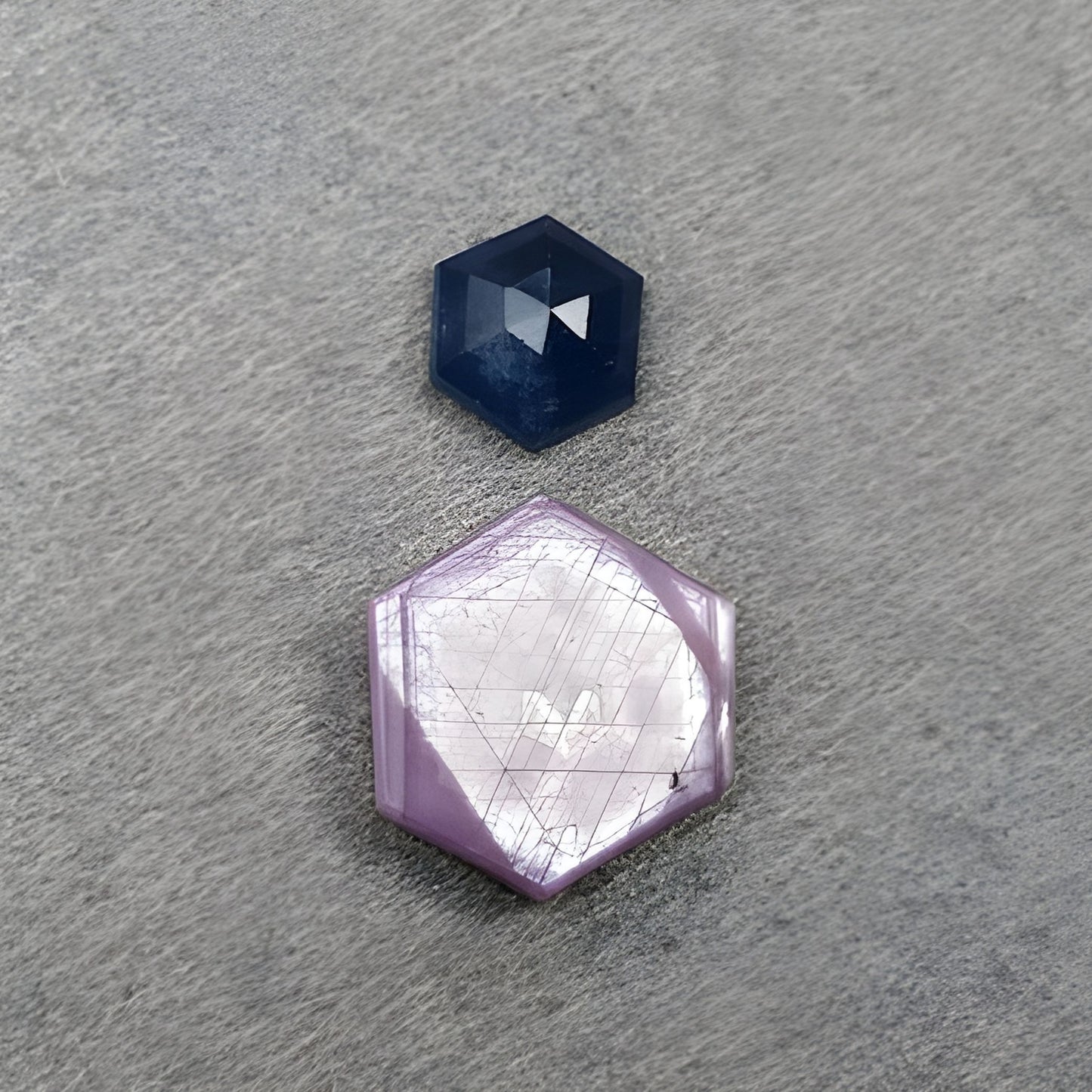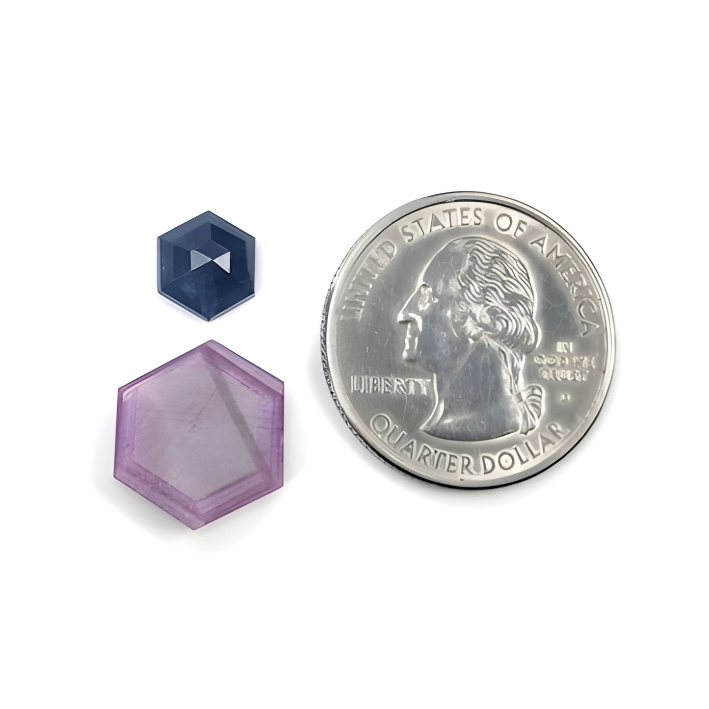 11.35cts Rosemary Pink, Blue Sapphire Flat Slices Gemstone Natural Untreated Hexagon 2pcs