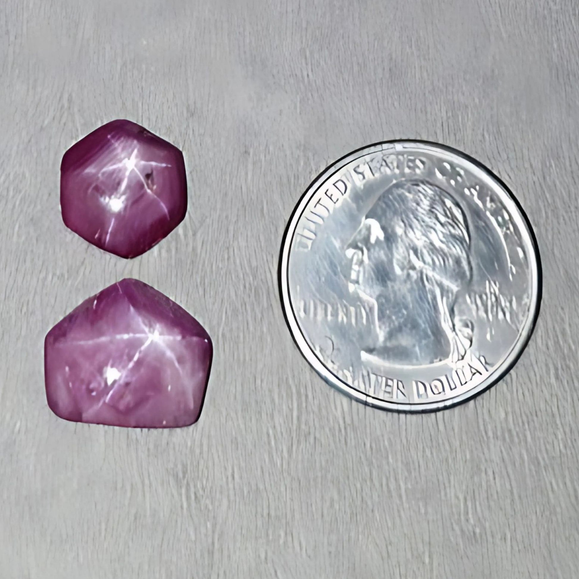 12.55cts Natural Untreated Star Ruby Gemstone Hexagon Shape Cabochon 11*13mm - 13*12mm 2pcs