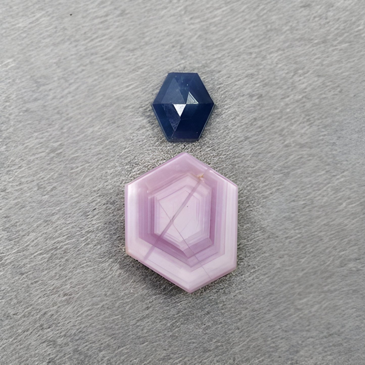 12.65cts Rosemary Pink, Blue Sapphire Flat Slices Gemstone Natural Untreated Hexagon 2pcs
