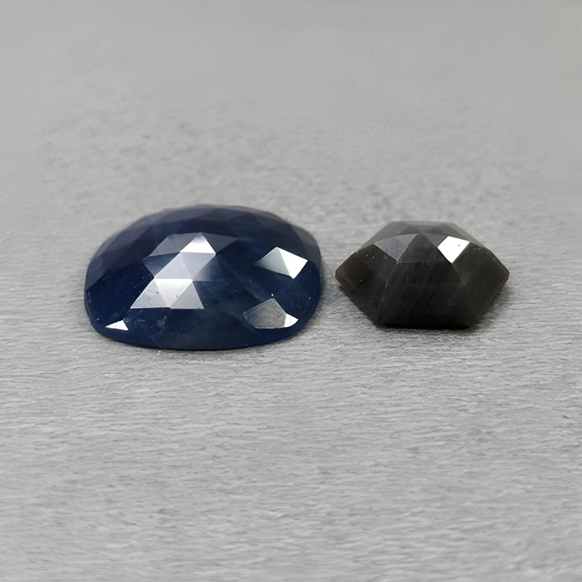15.00cts Blue, Silver Sapphire Rose Cut Natural Untreated Pear Shape 2pcs