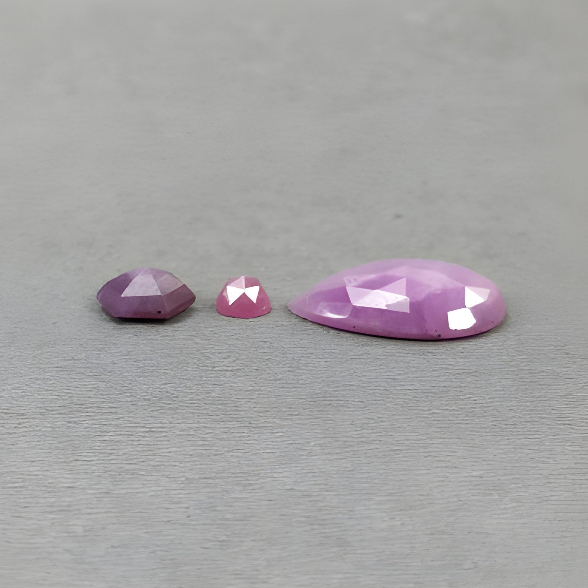 15.65cts Raspberry Sapphire Gemstone Natural Untreated Rose Cut Pear Shape 3pcs