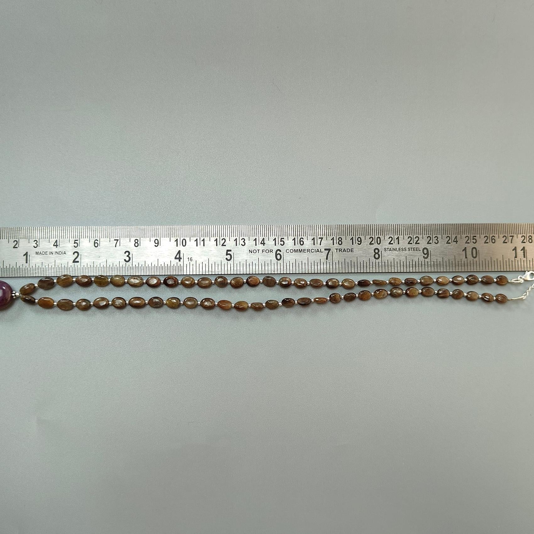 Golden Chocolate Sapphire Gemstone Beads Necklace: 24.06gms Natural Ruby, Sapphire Plain Oval 925 Silver Necklace 6*5mm - 8*5.5mm 22"