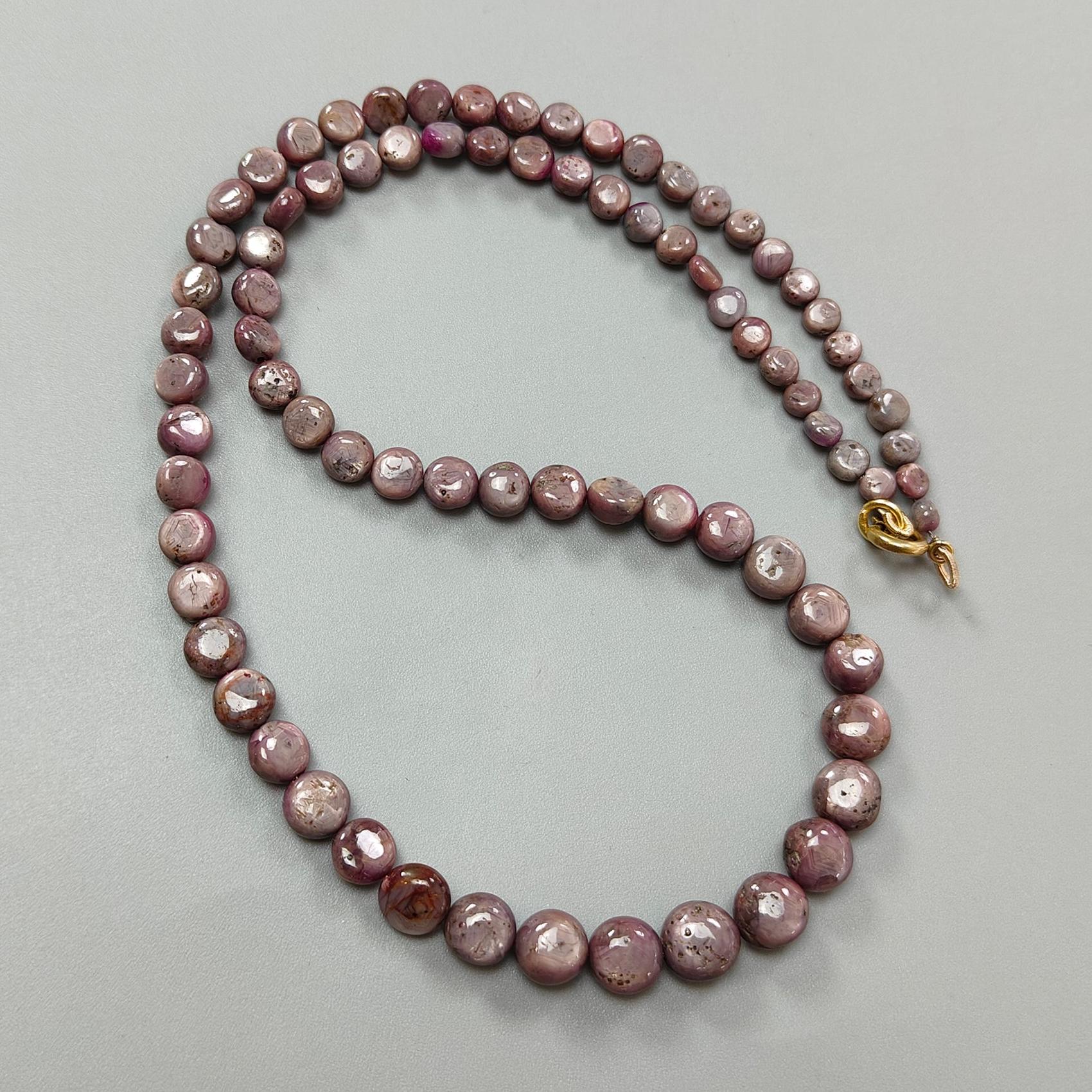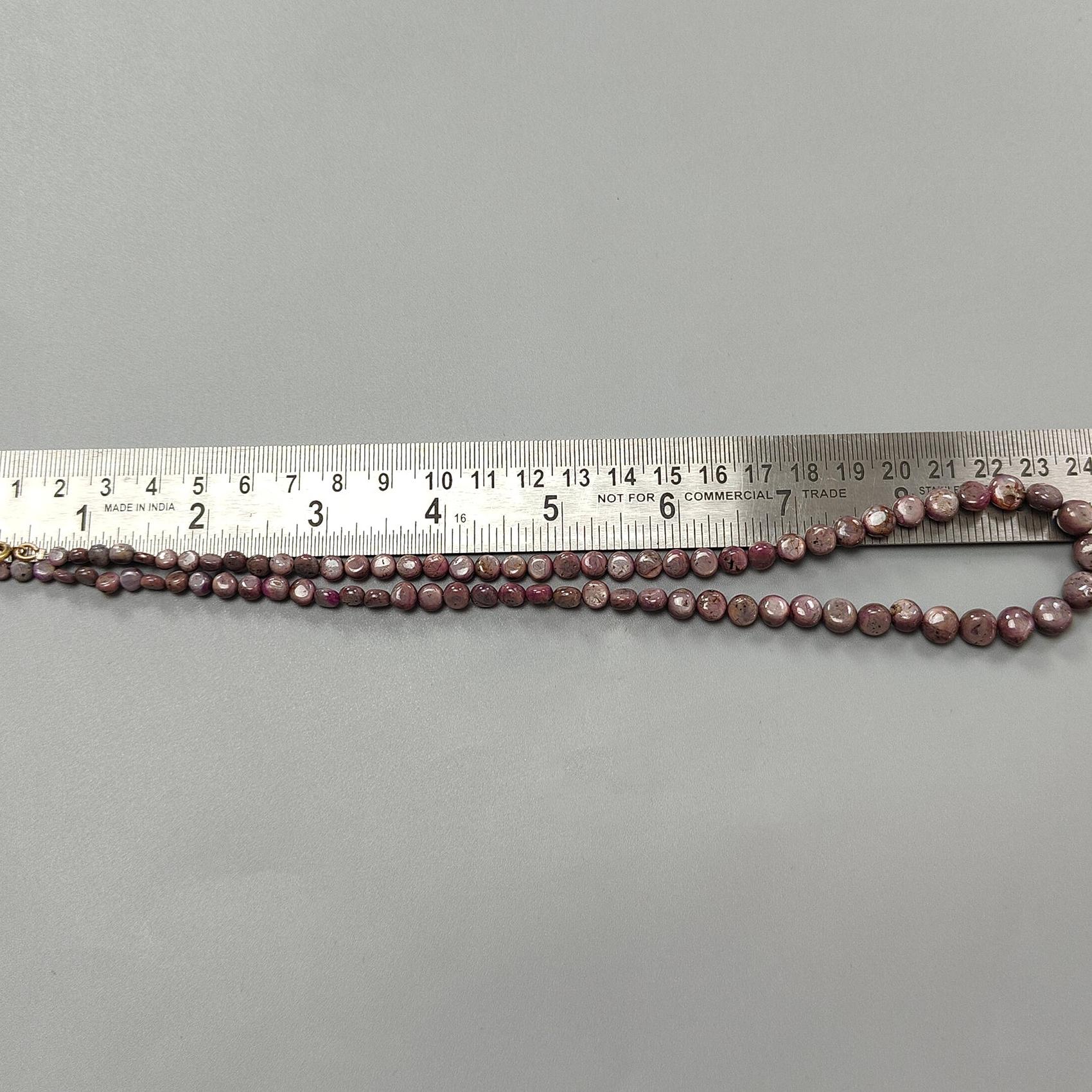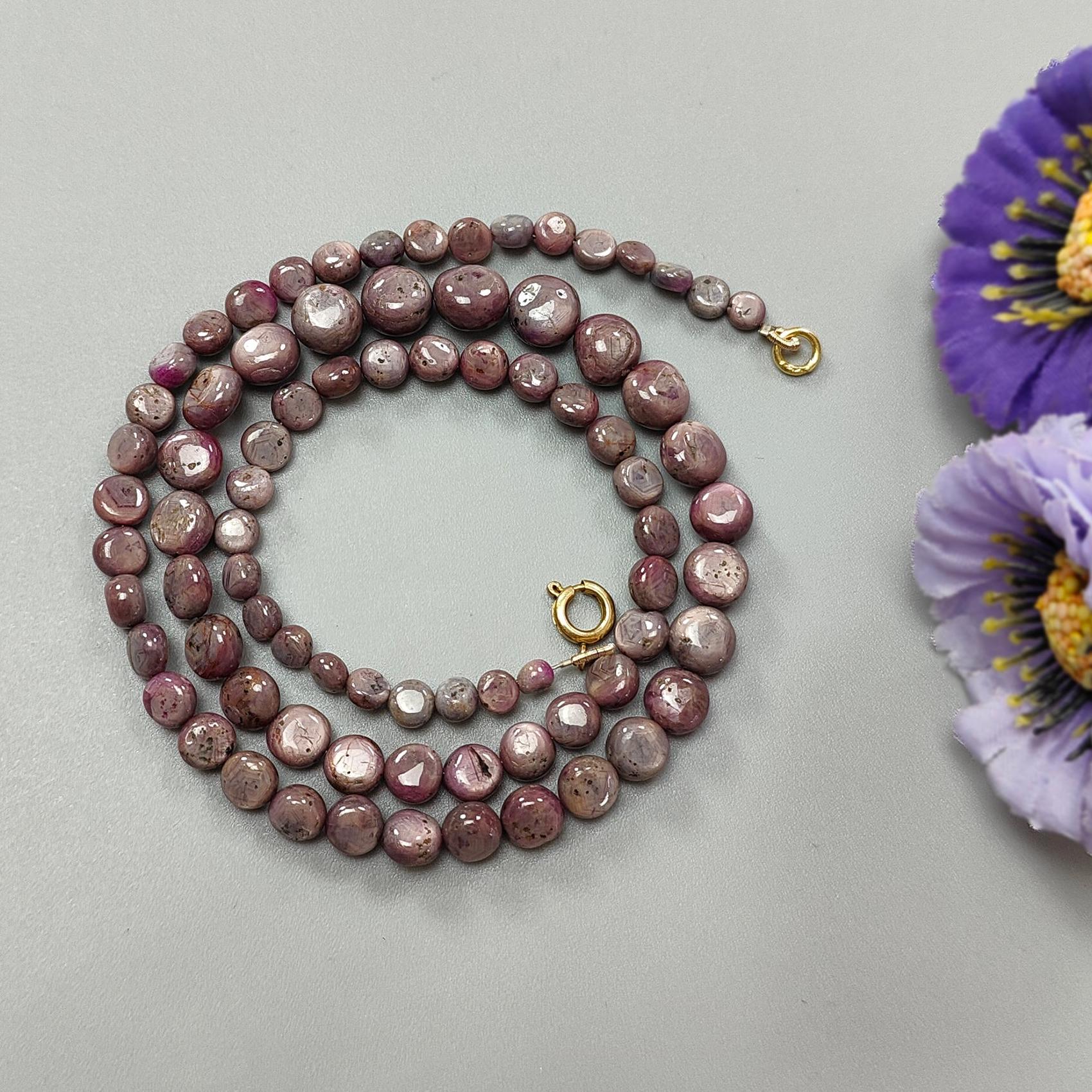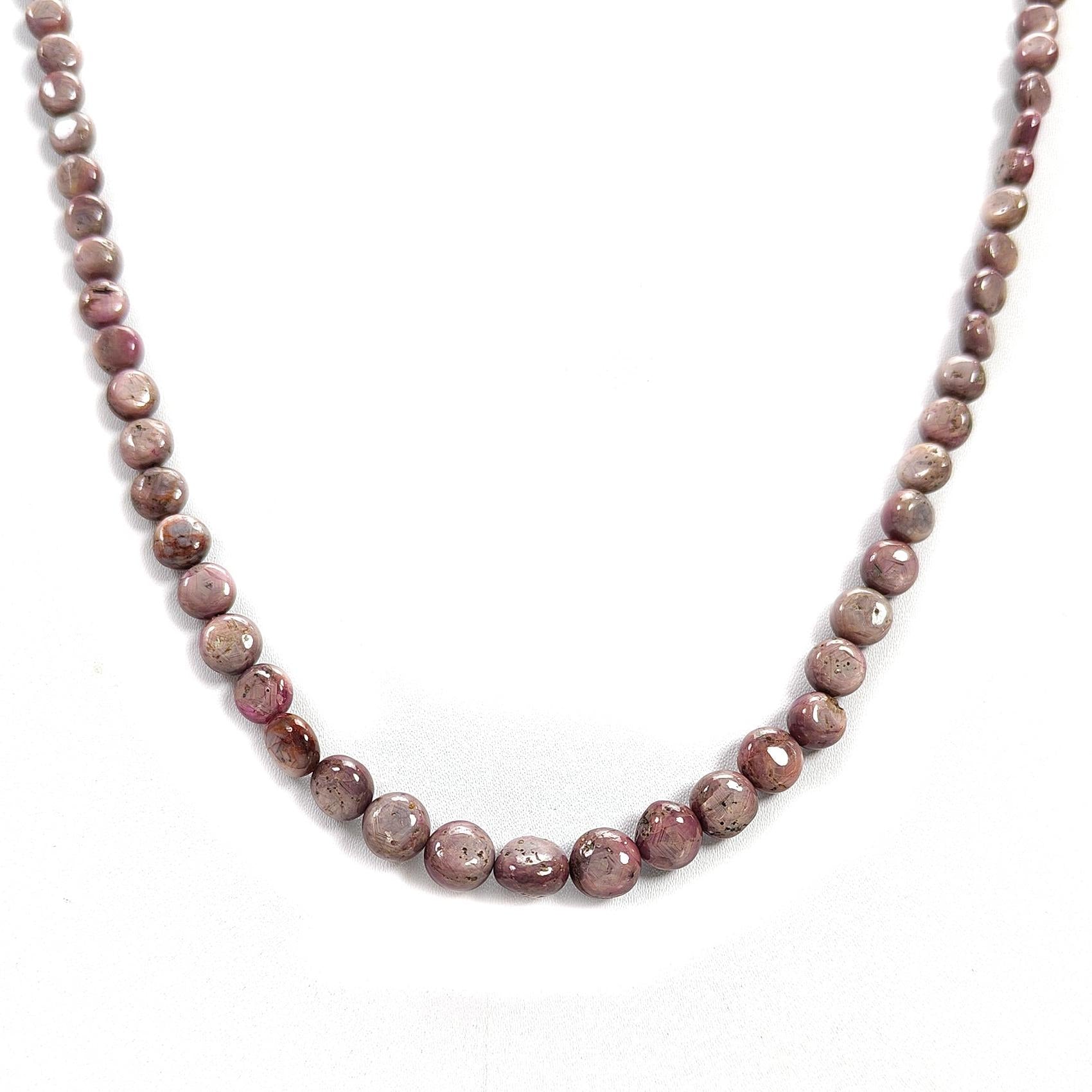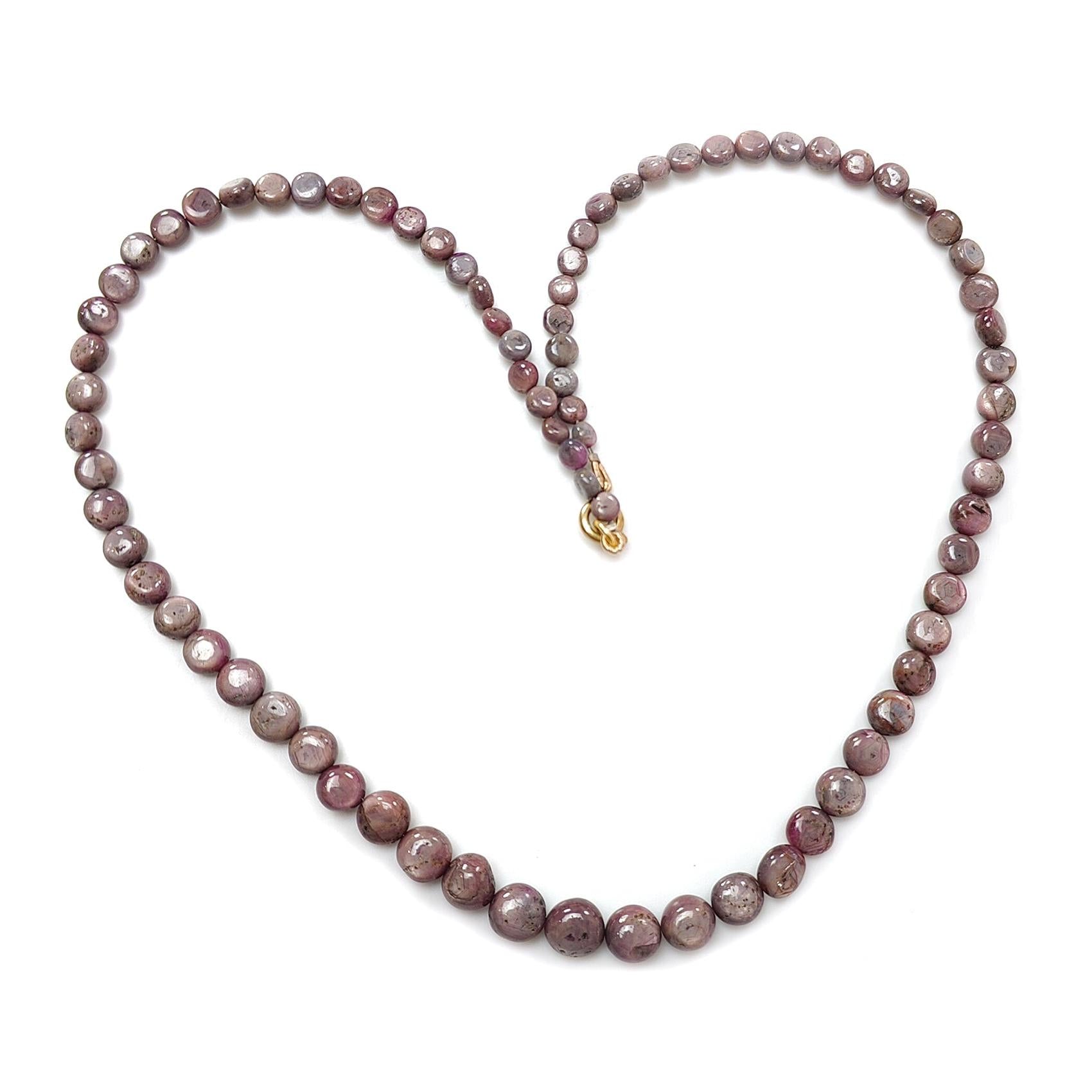 Pink Sapphire Gemstone Beads Necklace: 28.50gms Natural Untreated Unheated Sapphire Plain Round Brass Necklace 4mm - 8mm 19"