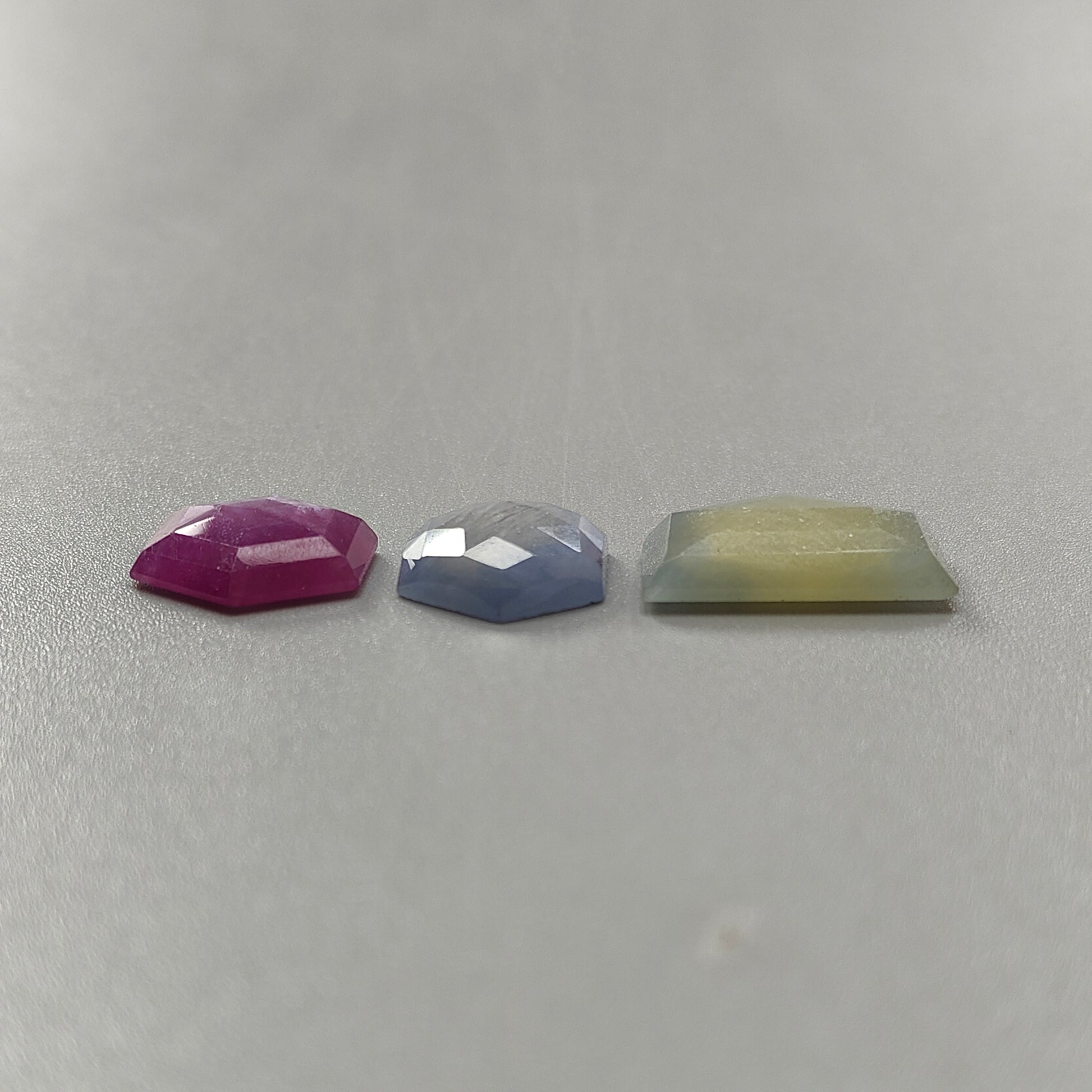 33.40cts Natural Untreated Multi Sapphire Gemstone Hexagon Shape Rose Cut Slices 16.5*13mm - 19.5*14.5mm 3pcs