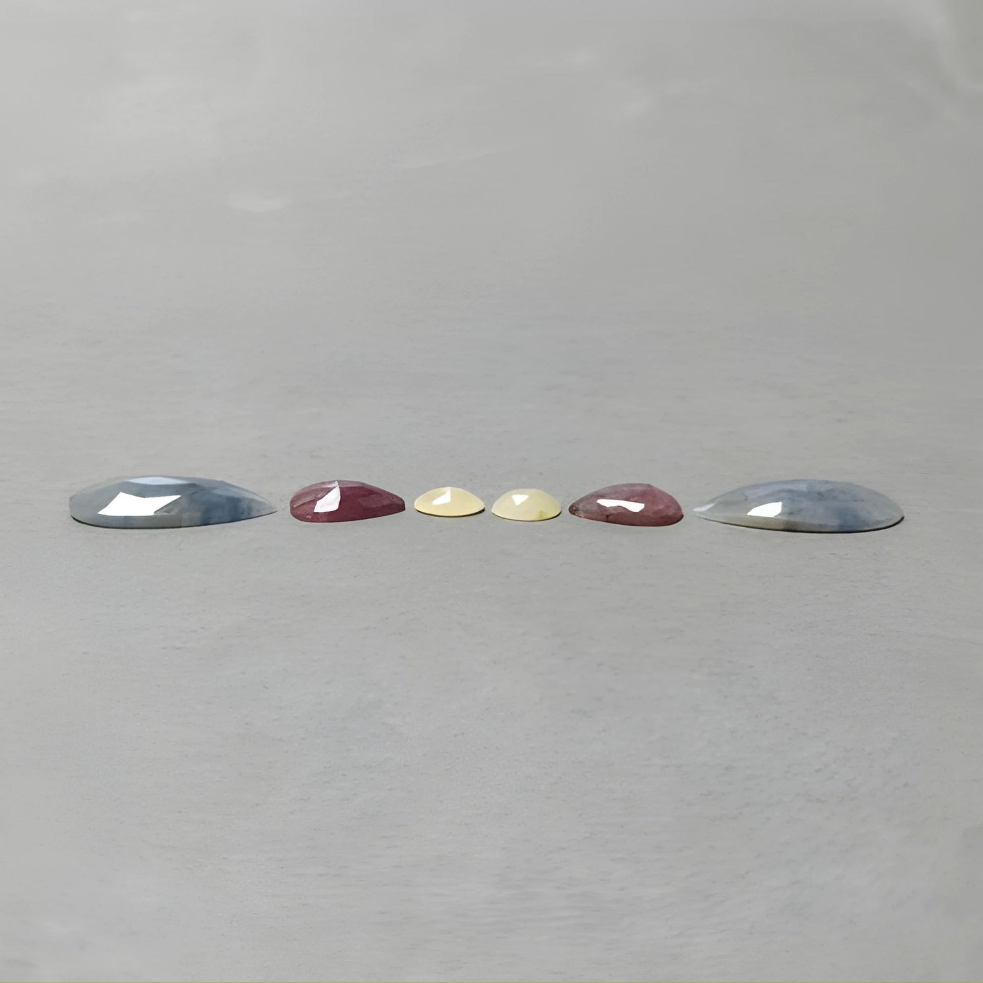 34.00cts Natural Untreated Multi Sapphire Gemstone Pear Shape Rose Cut Slices 13*9mm - 23*13mm 6pcs