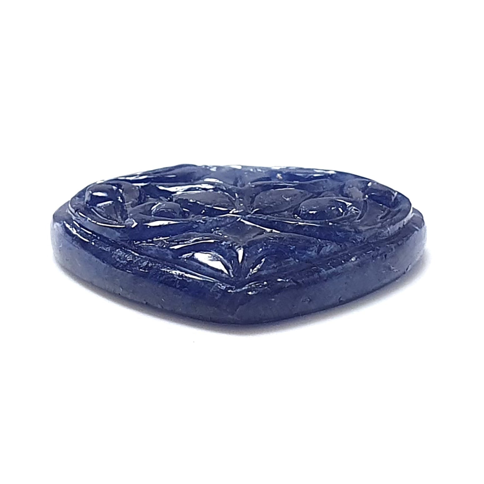 34.50cts Blue Sapphire Gemstone Natural Untreated Sapphire Carving Heart Shape 15mm 1pc
