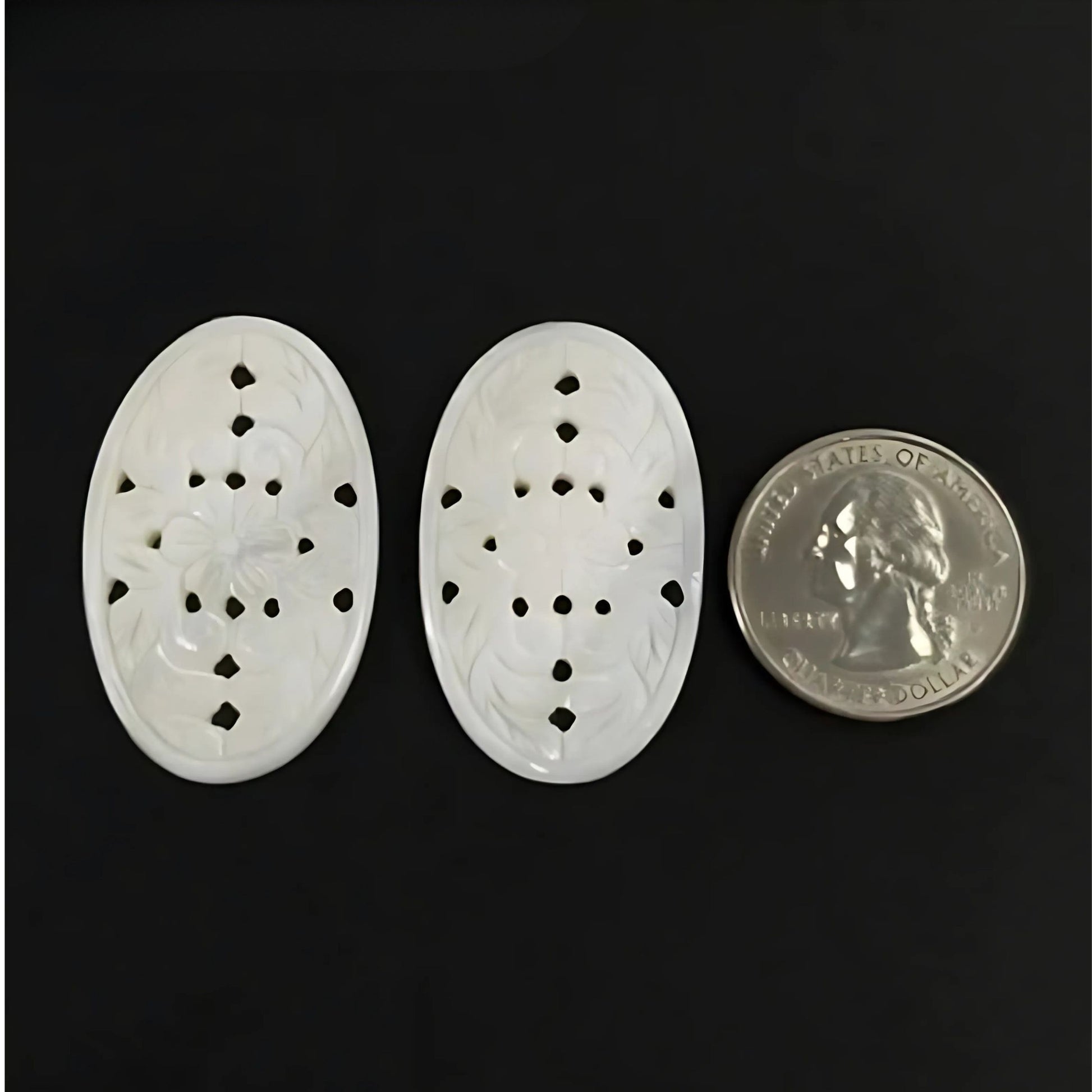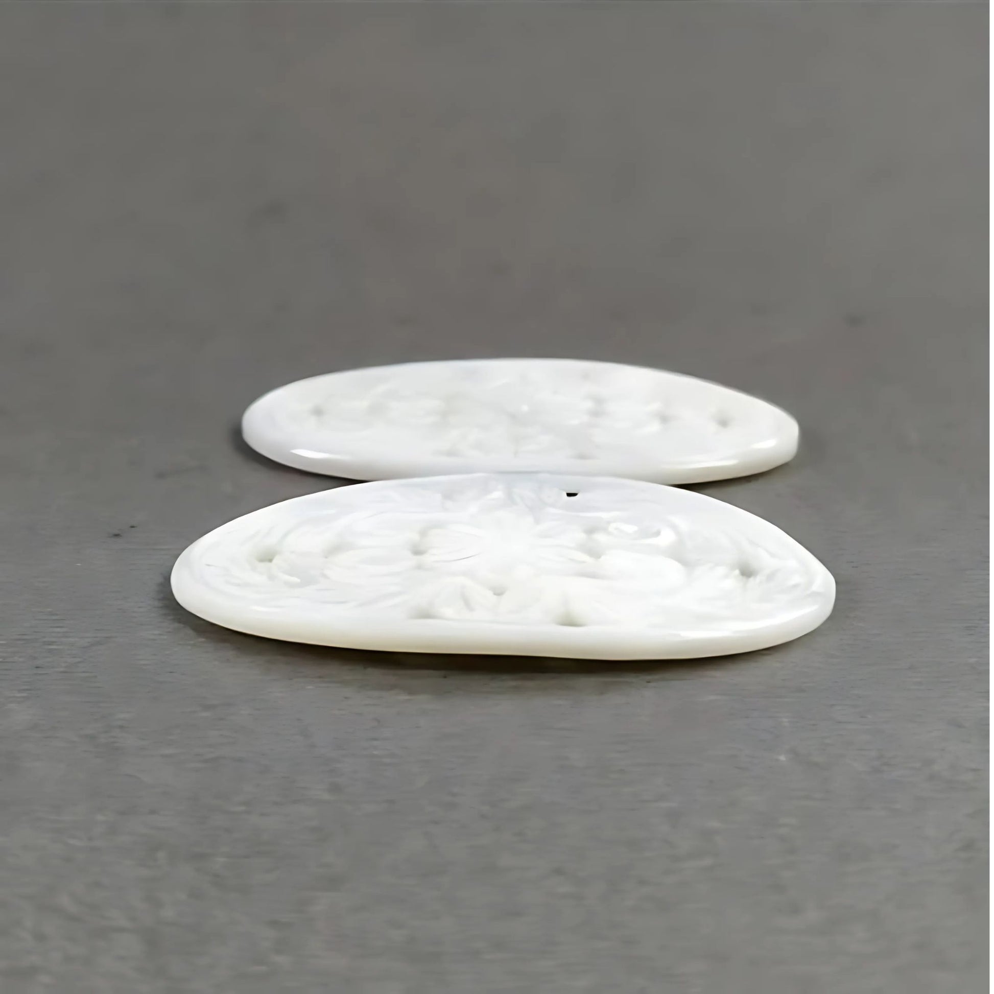35.65cts Mother Of Pearl Gemstone Carving Natural Untreated White Oval 38*24mm Pair