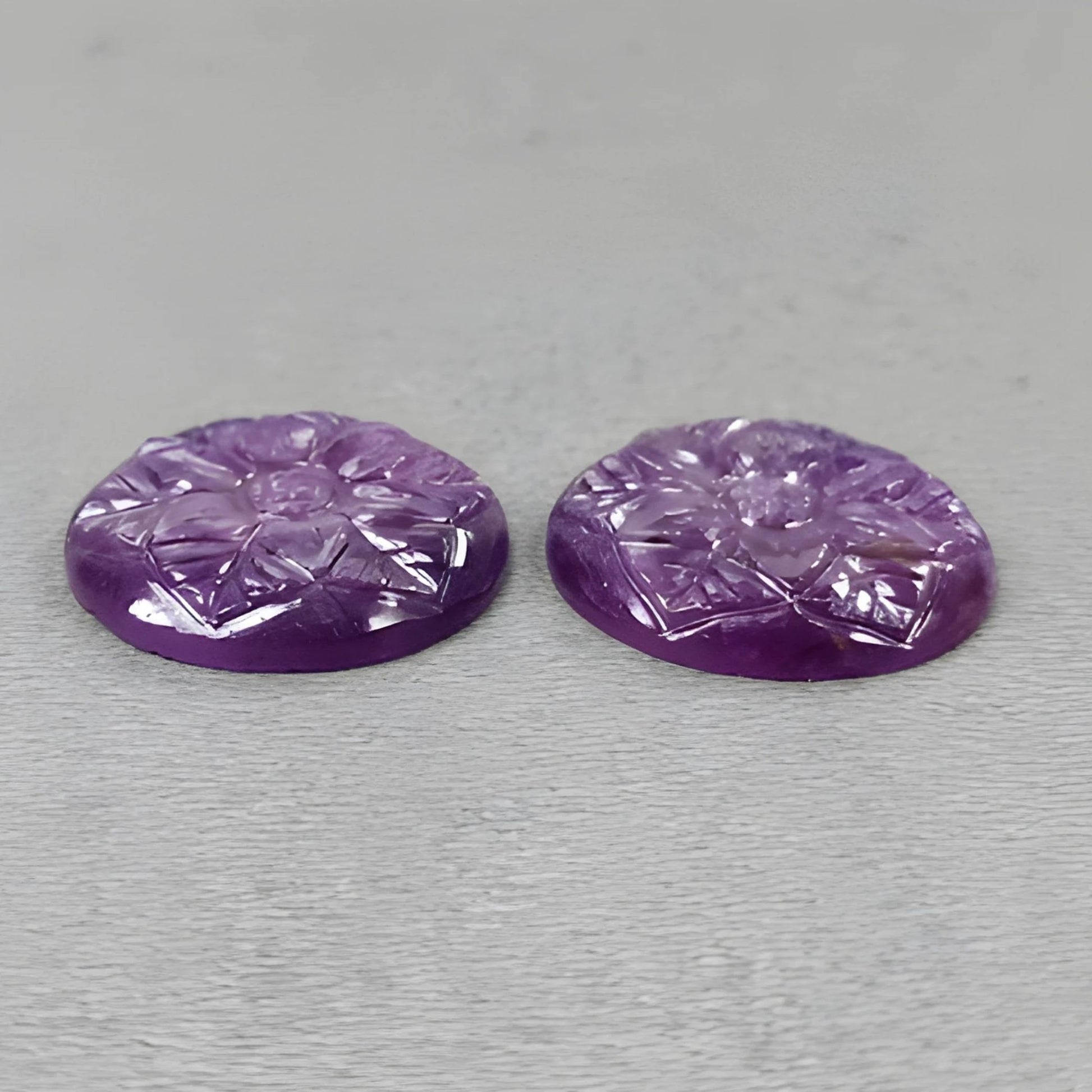 37.20cts Purple Sheen Sapphire Gemstone Carving Natural Untreated Round Shape Pair
