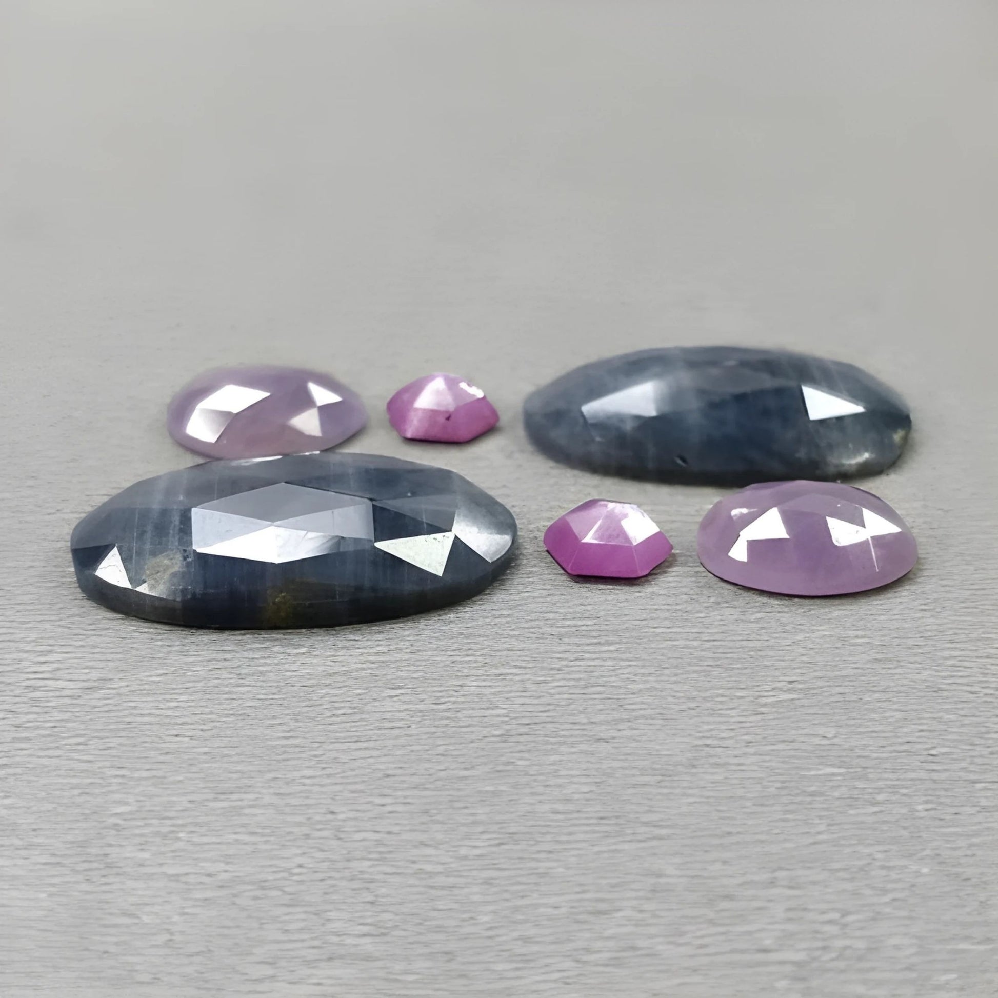 40.85cts Natural Untreated Multi Sapphire Gemstone Oval Shape Rose Cut Slices 6pcs