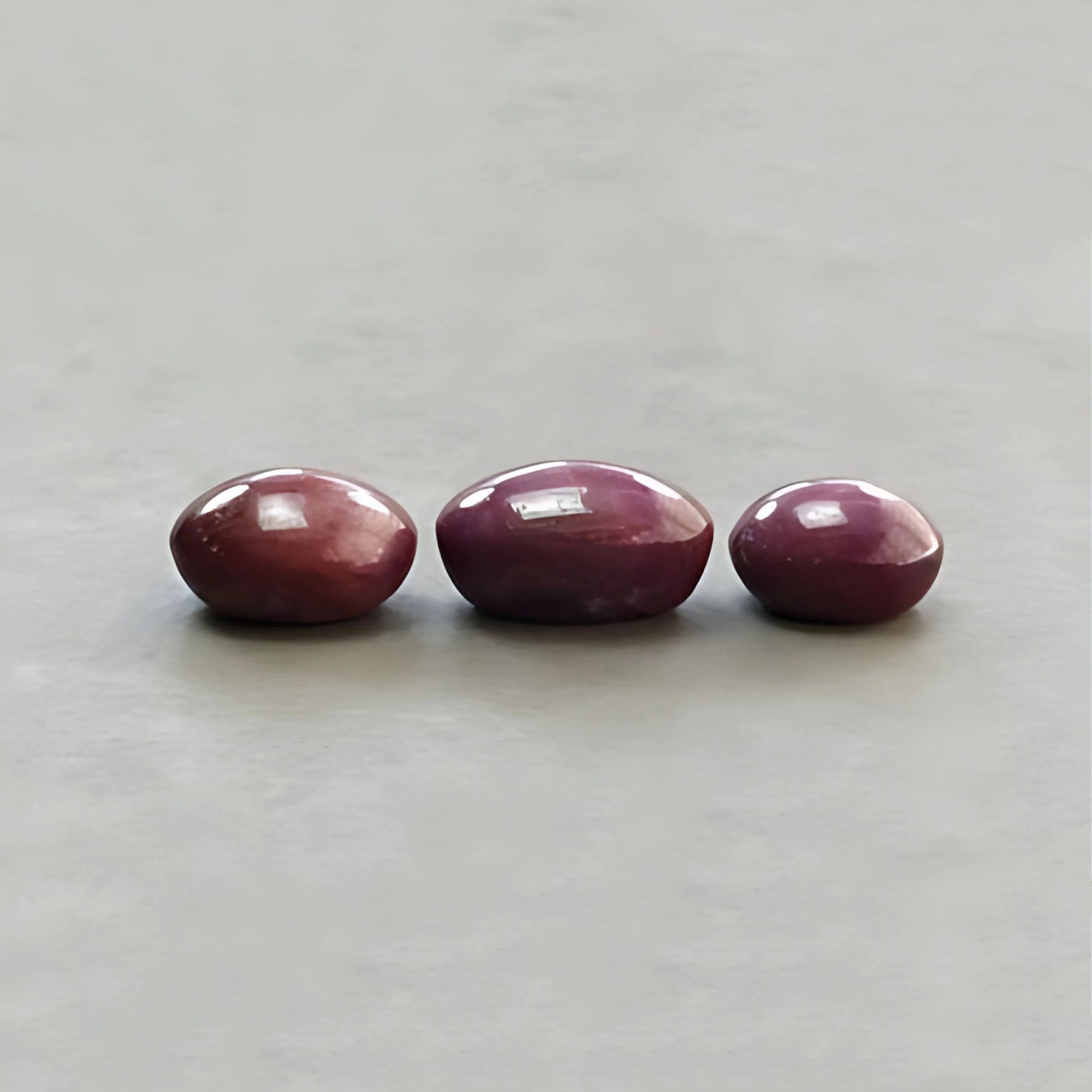 44.40cts Natural Untreated Star Ruby Gemstone Oval Shape Cabochon 12.5*11mm - 16*11.5mm 3pcs