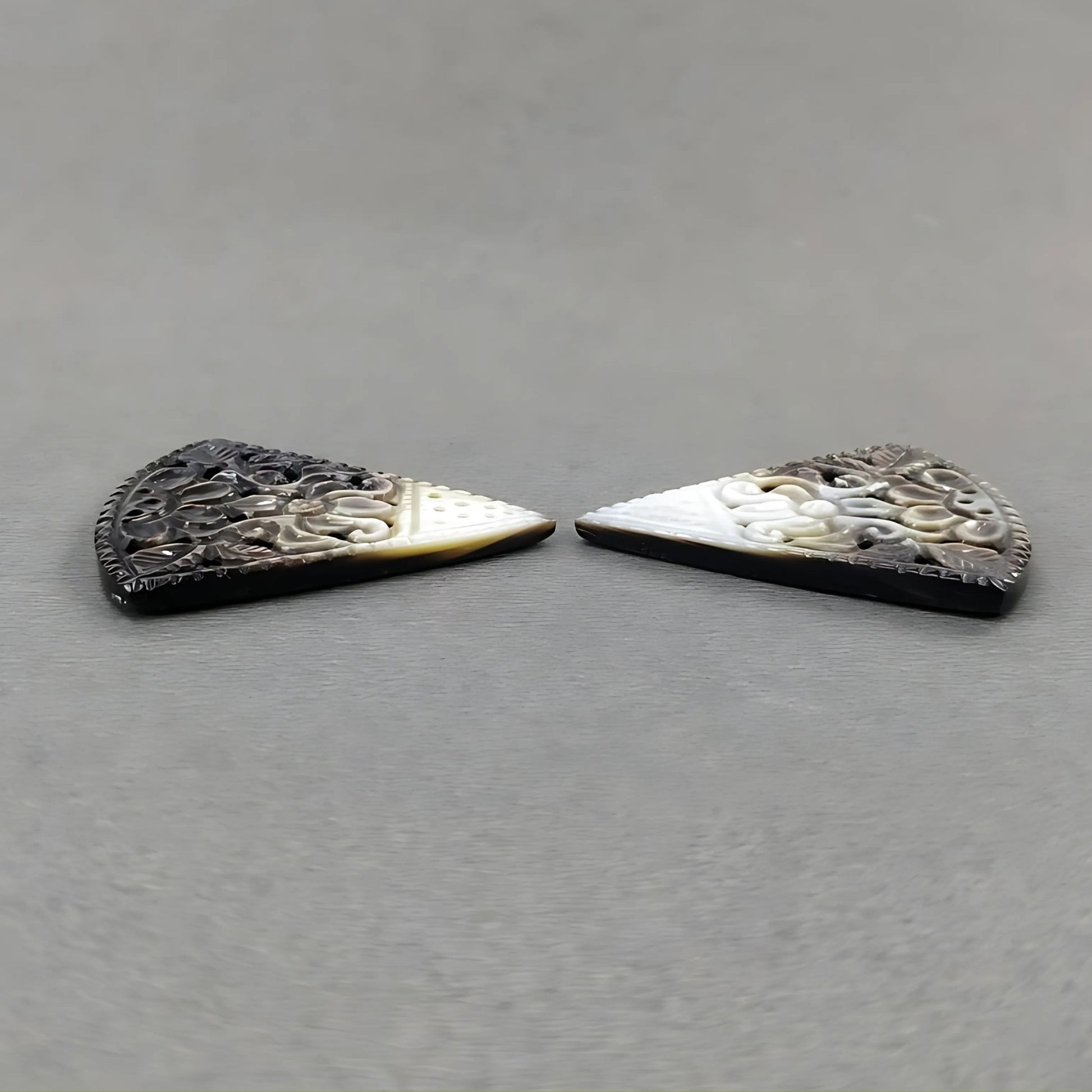 44.75cts Mother Of Pearl Gemstone Carving Natural Untreated Black Triangle Shape 36.5*32.5mm Pair