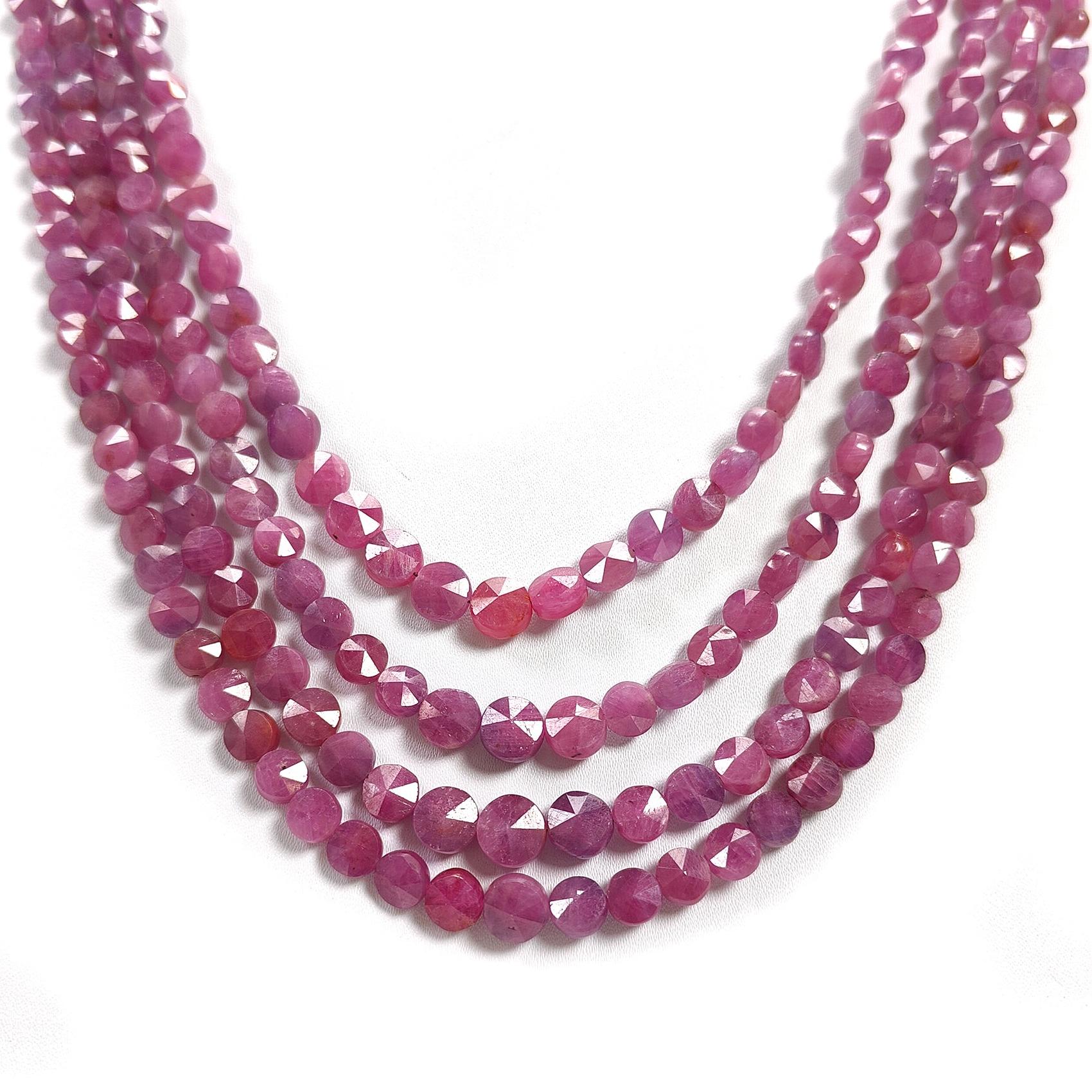 Pink Ruby Faceted Beads Necklace: 472.00cts Natural Untreated Ruby Gemstone Both Side Faceted Round Necklace 5mm - 8mm, 16" - 20"