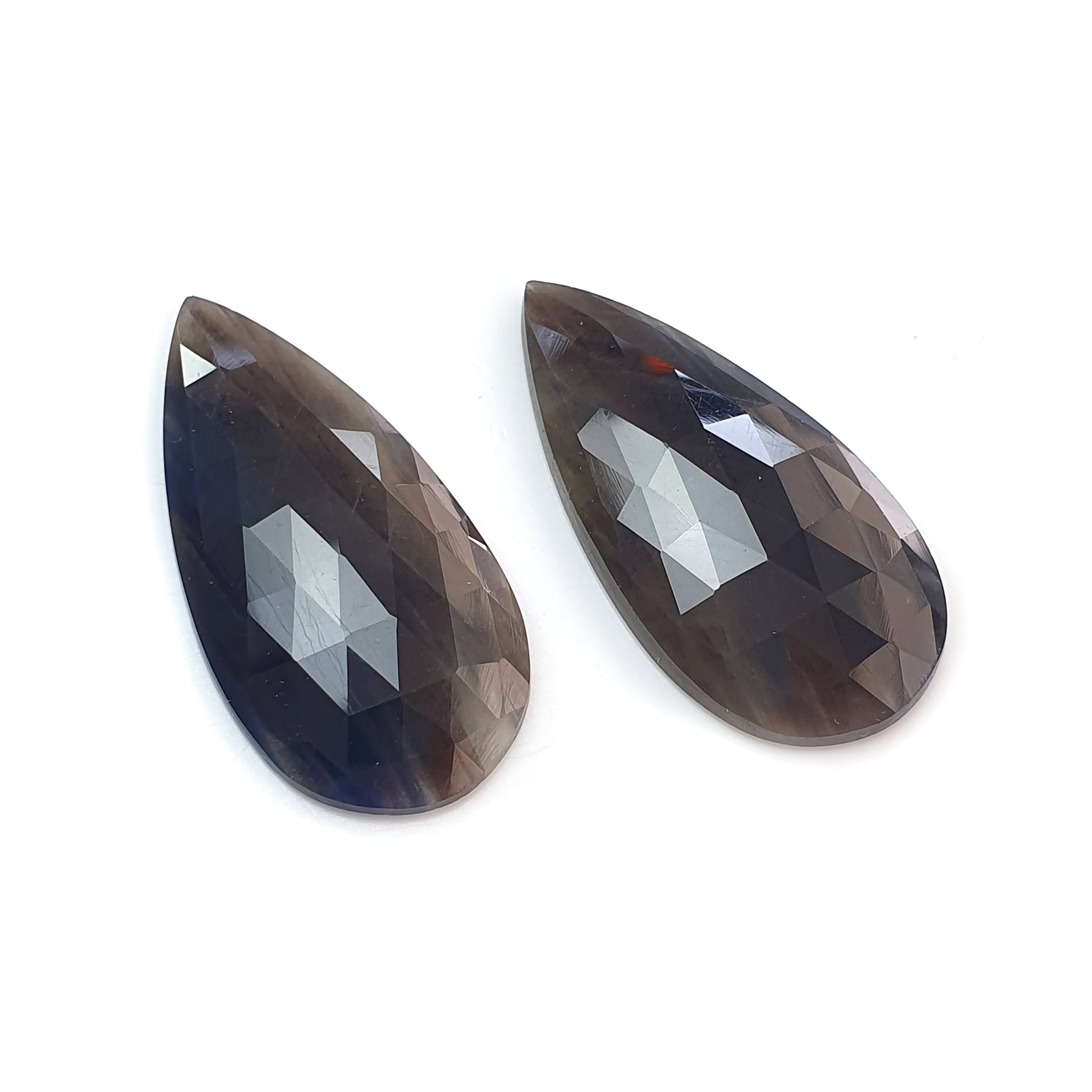 48.40cts Natural Multi Sapphire Gemstone Pear Rose Cut Slices 32*16mm - 33*16mm 2pcs