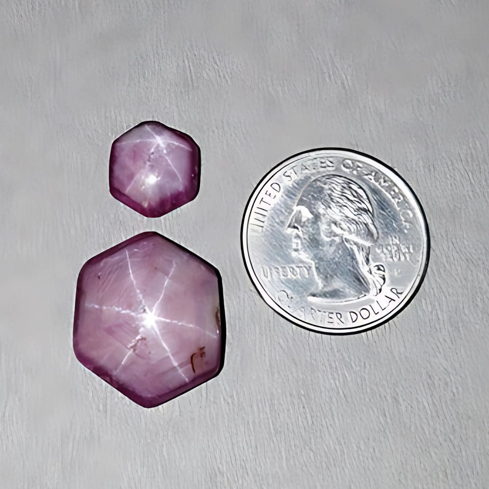49.40cts Natural Untreated Star Ruby Gemstone Hexagon Shape Cabochon 13*11.5mm - 21.5*19mm 2pcs