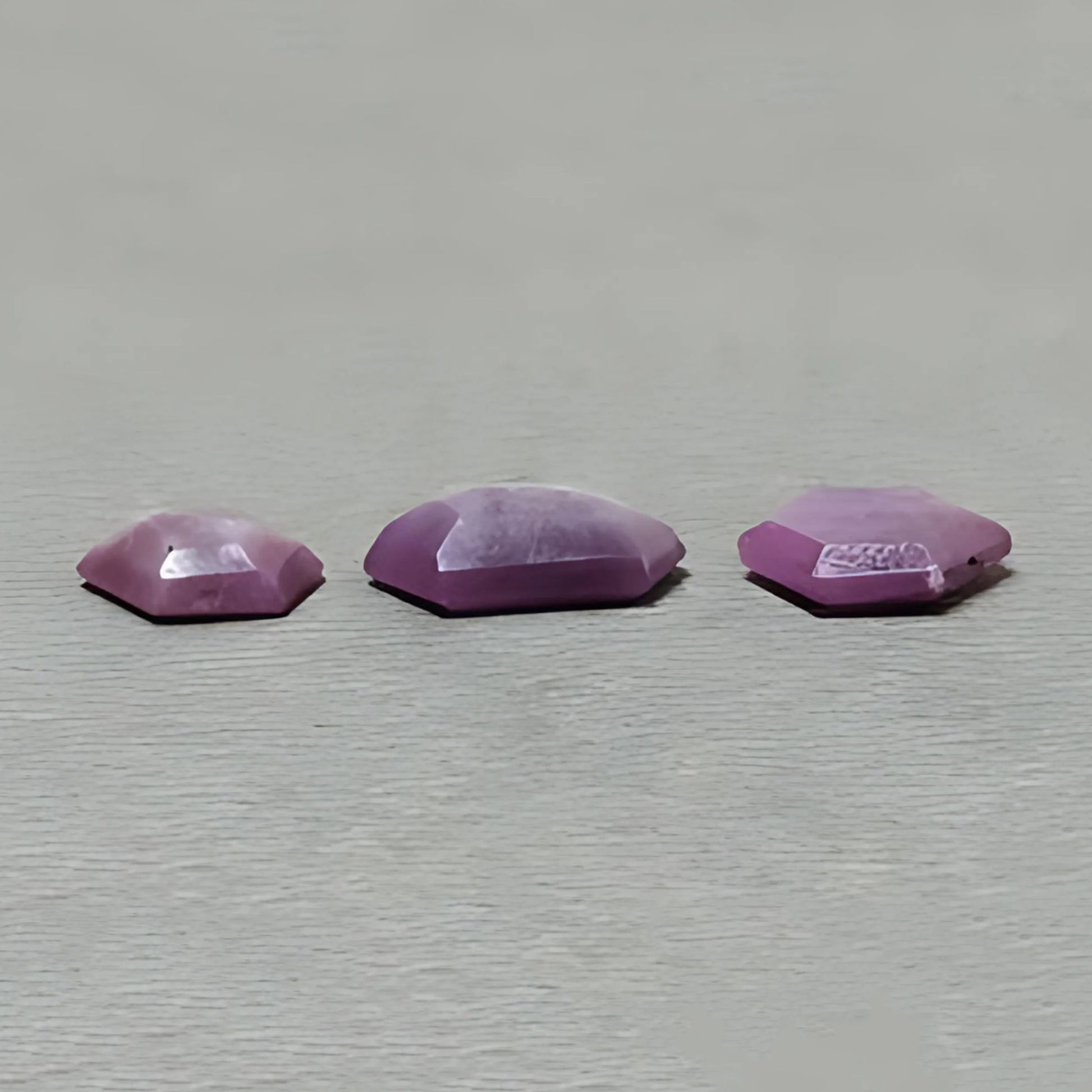 5.70cts Raspberry Sapphire Trapiche Gemstone Natural Untreated Faceted Cut Hexagon Shape 3pcs
