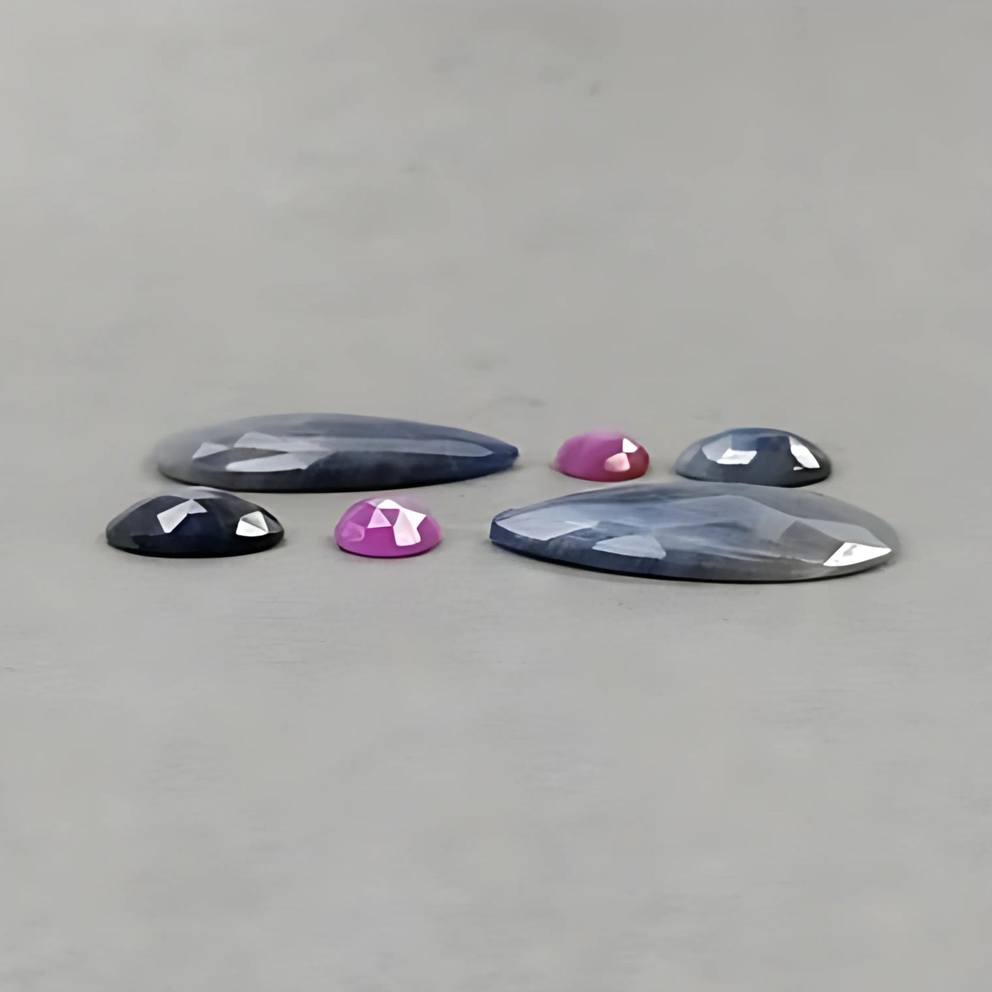 53.40cts Natural Untreated Multi Sapphire Gemstone Pear Shape Rose Cut Slices 13*10mm - 30*18mm 6pcs