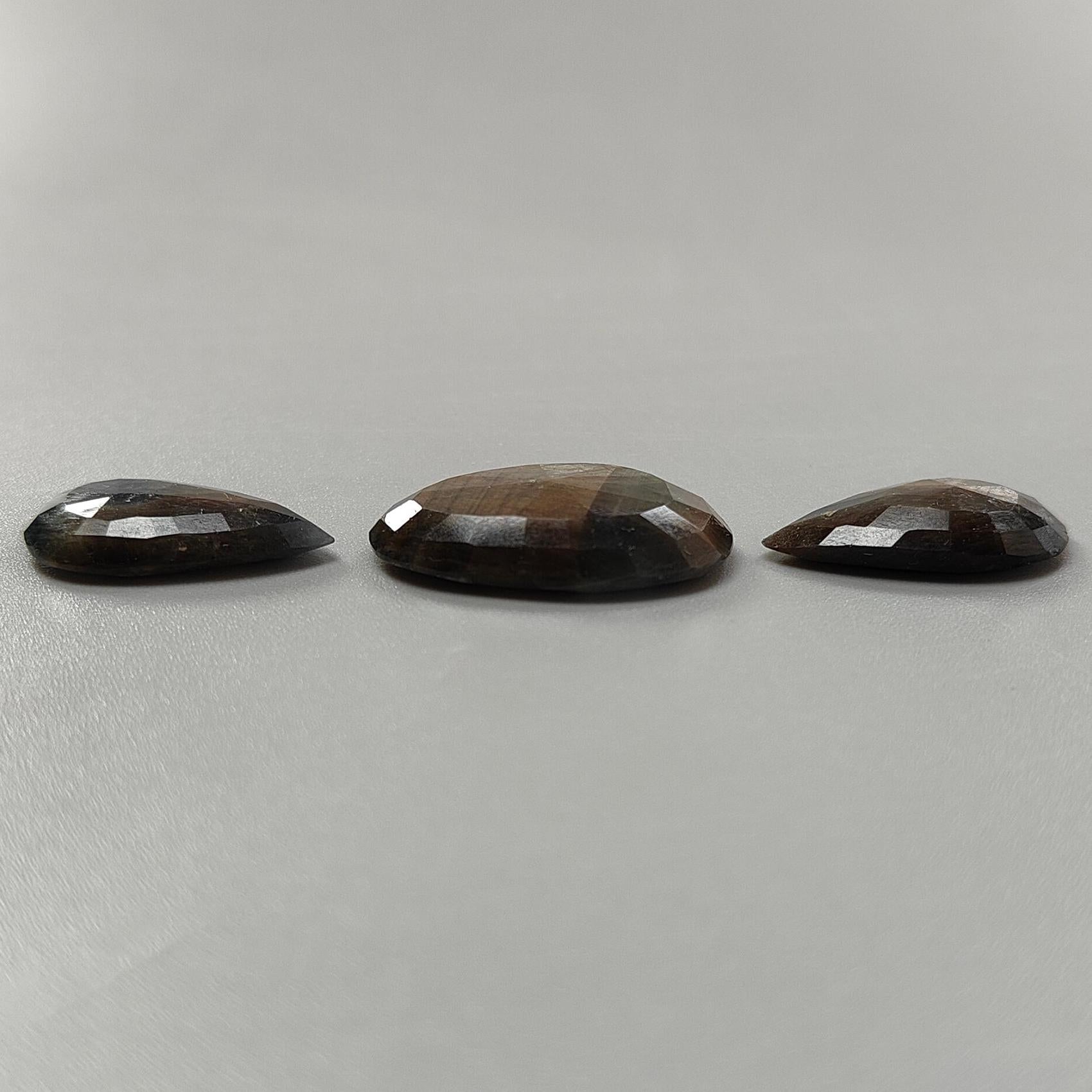 Golden Brown Chocolate Sapphire Gemstone Faceted Cut: 54.00cts Natural Untreated Sapphire Pear, Fancy Shape 22.5*14mm - 26.5*18mm 3pcs Set