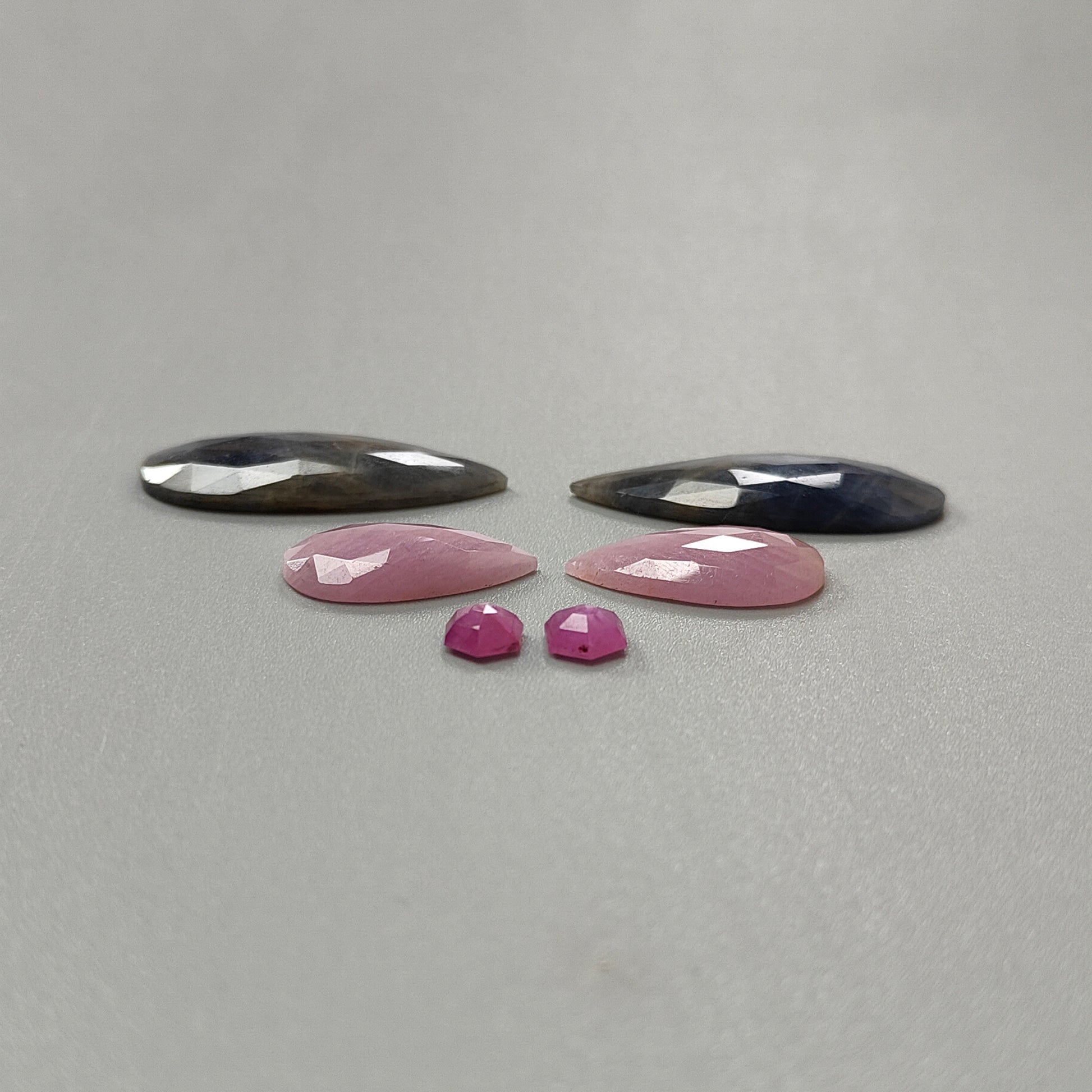 54.80cts Natural Untreated Multi Sapphire Gemstone Pear Shape Rose Cut Slices 21*11mm - 33*13mm 6pcs