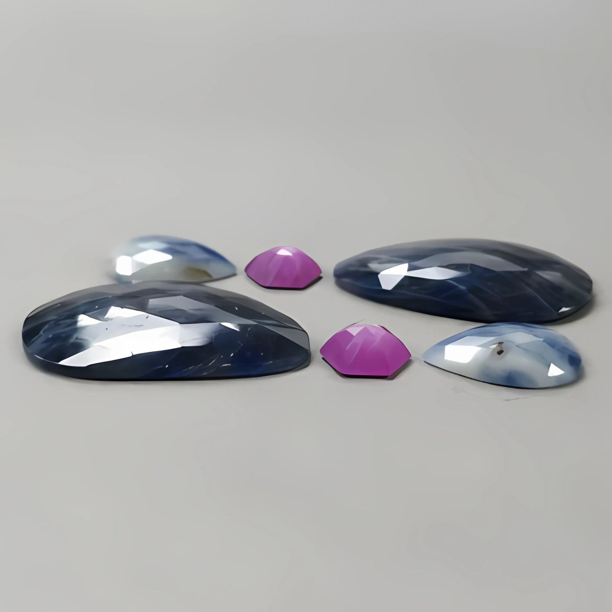 64.90cts Natural Untreated Multi Sapphire Gemstone Fancy Shape Rose Cut Slices 6pcs