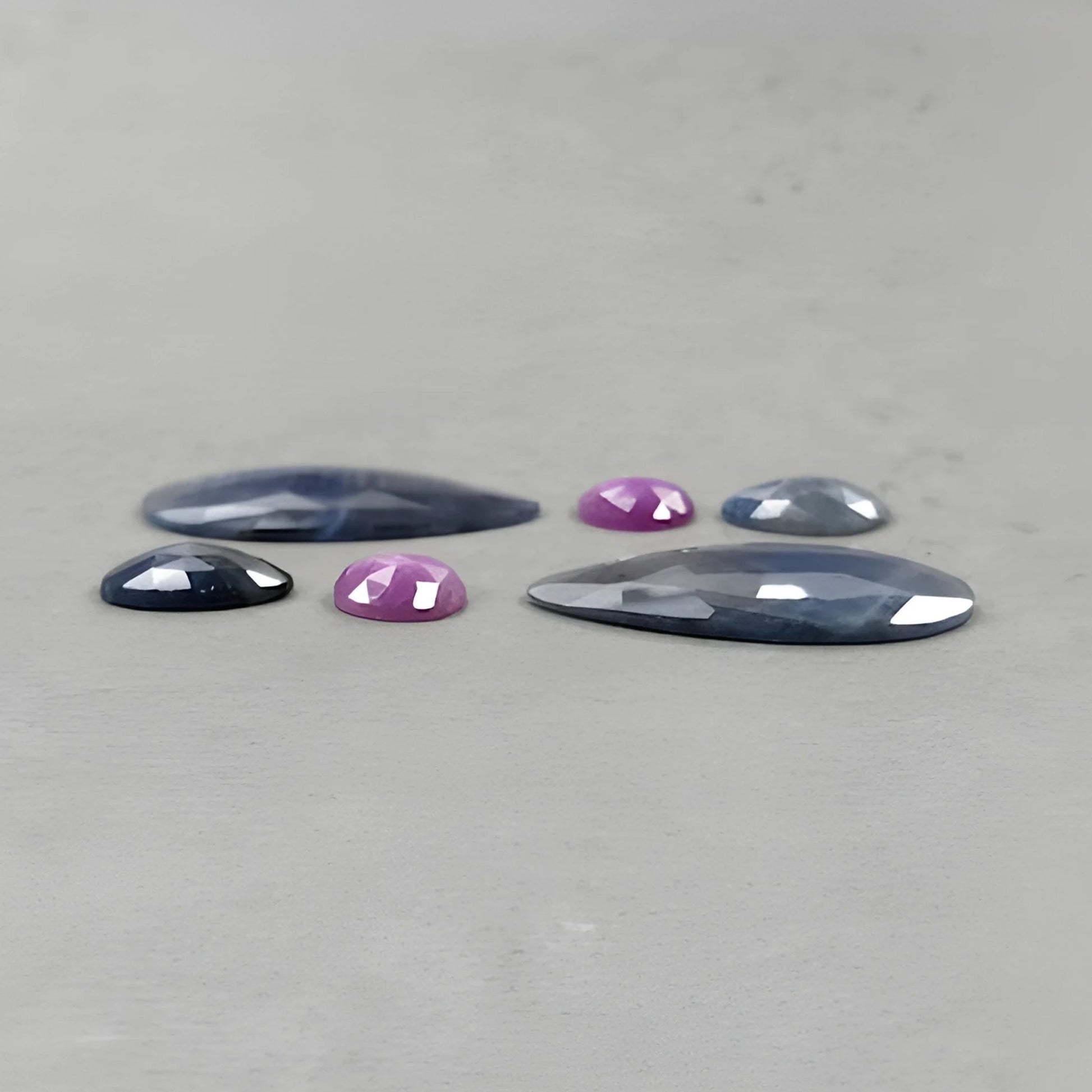66.30cts Natural Untreated Multi Sapphire Gemstone Pear Shape Rose Cut Slices 15*11mm - 34*19.5mm 6pcs