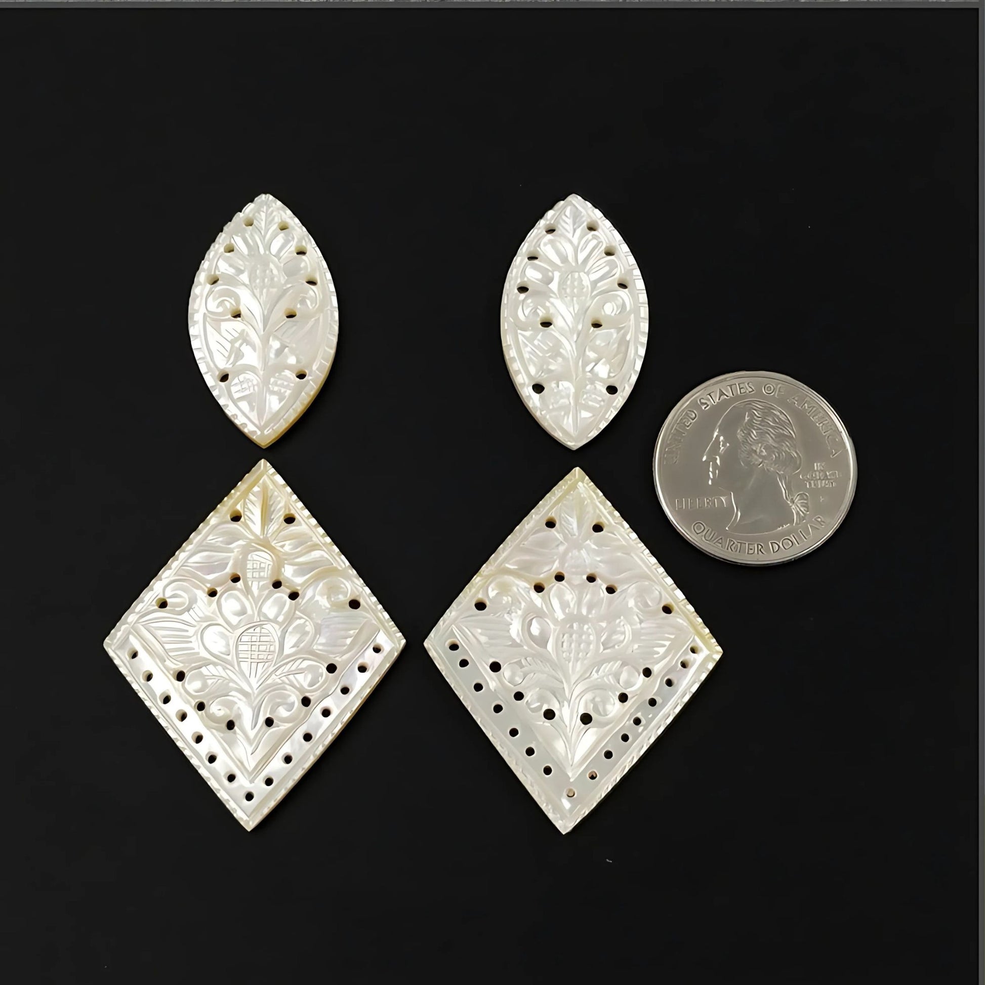 87.70cts Mother Of Pearl Gemstone Carving Natural Untreated White Marquise Shape 4pcs Set