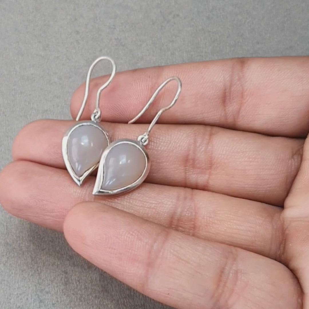 Gray Onyx Gemstone Earring : 4.71gms Natural Onyx With 925 Sterling Silver Drop Dangle Bezel Set Hook Earrings 1.5"