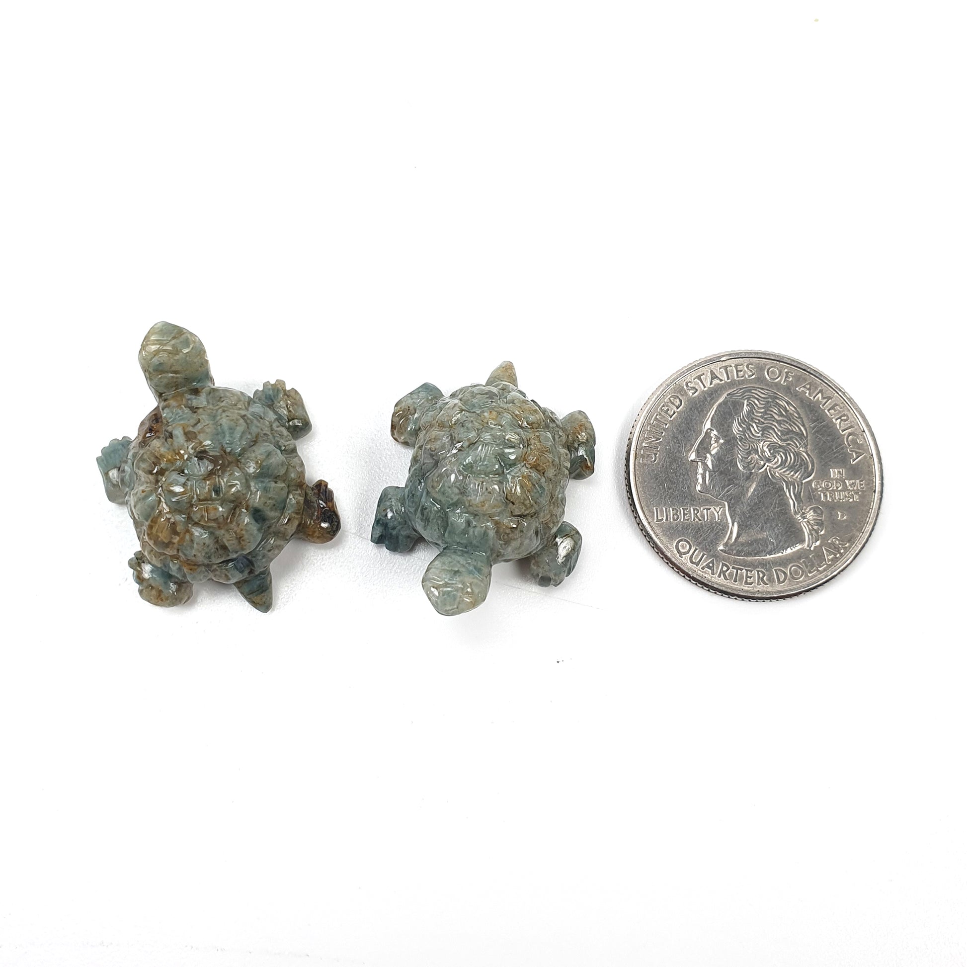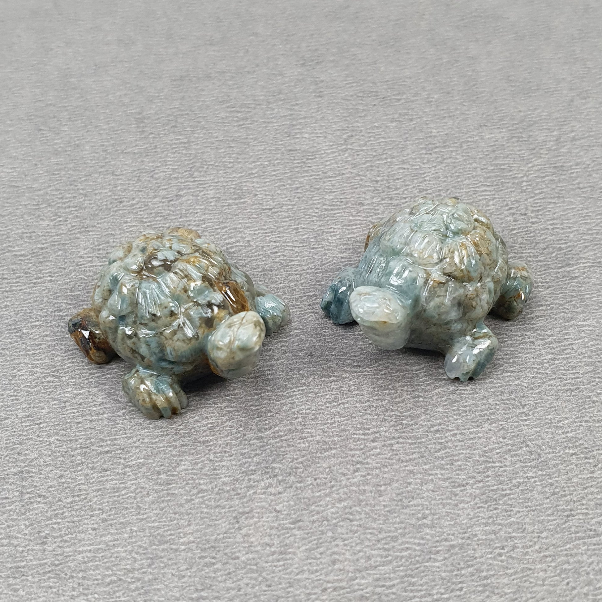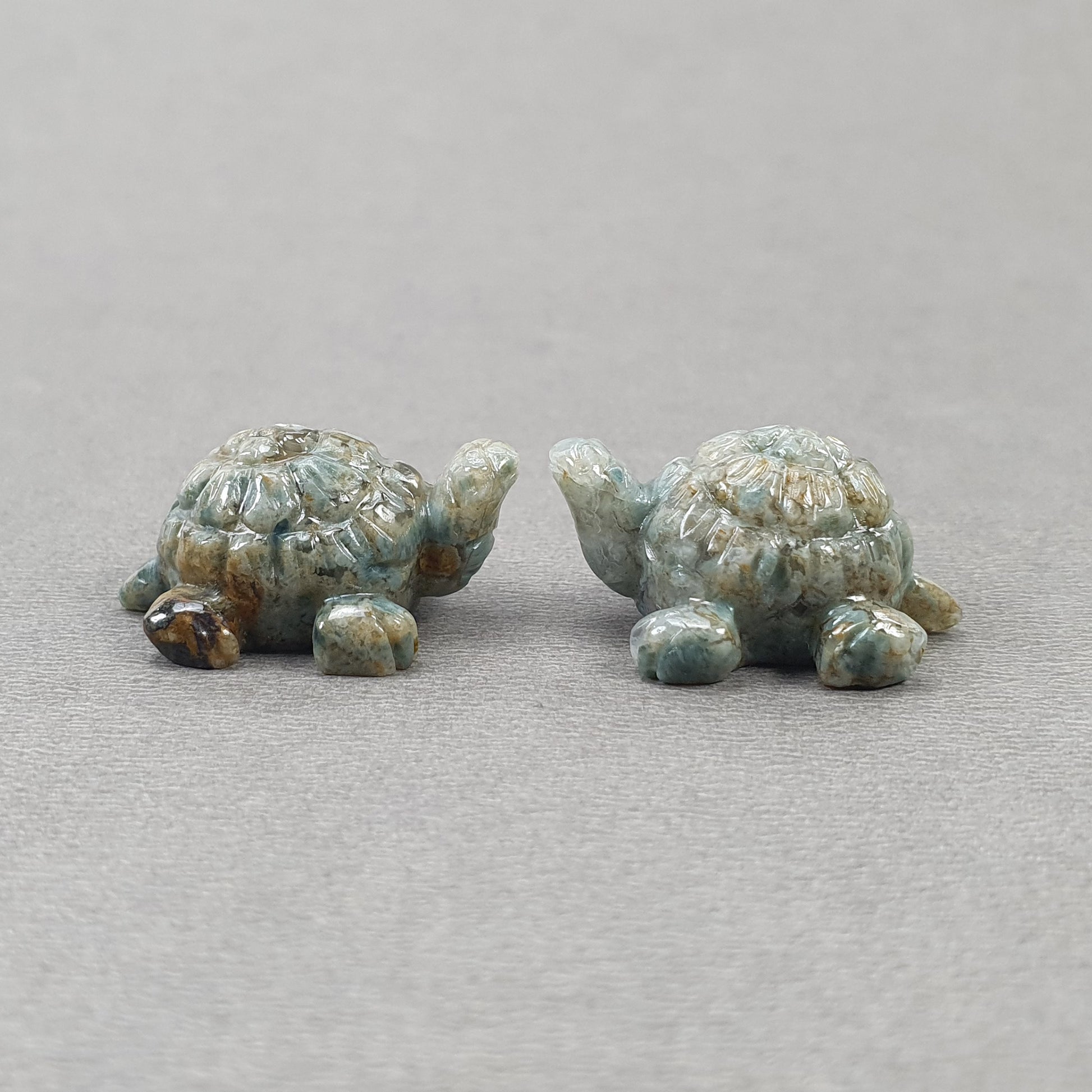 Moss Agate Gemstone Carving : 58.00cts Natural Untreated Green Agate Hand Carved Tortoise Sculpture 26*20mm Pair
