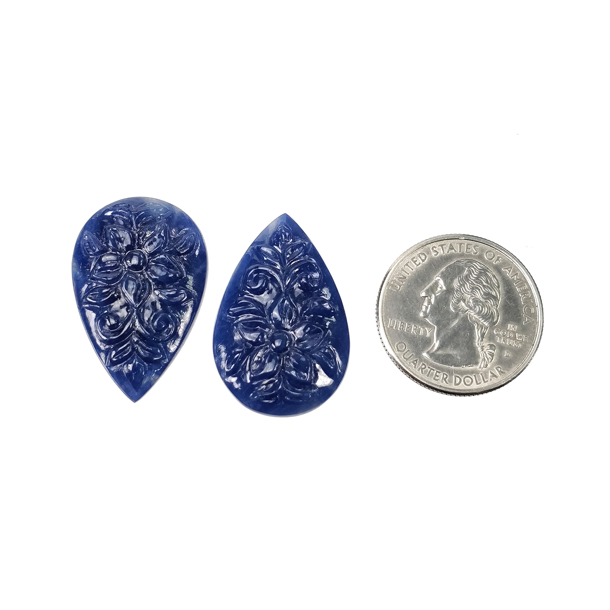 Sapphire Gemstone Carving : 65.20cts Natural Untreated Unheated Blue Sapphire Hand Carved Pear Shape 31*20mm