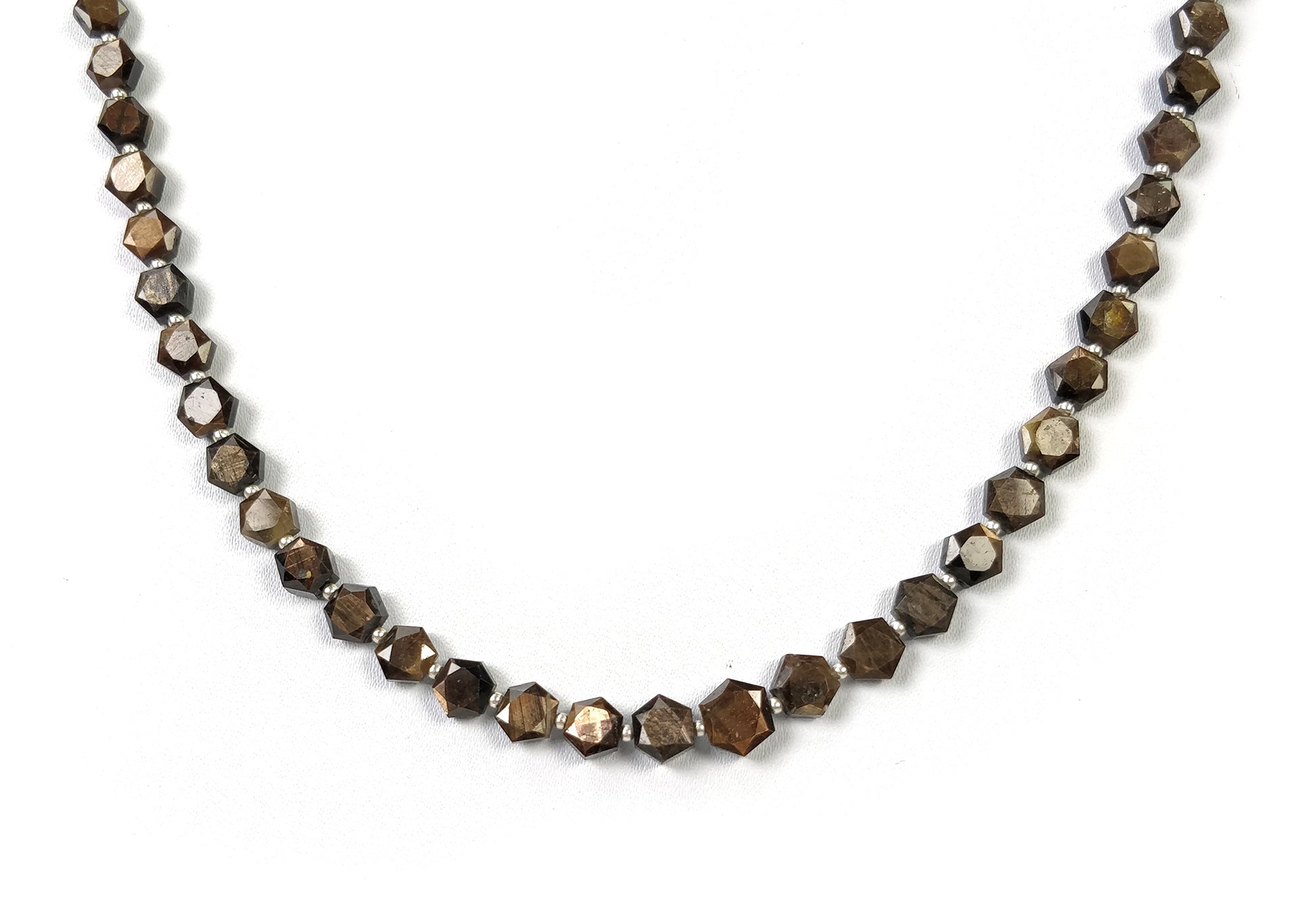 Golden Brown CHOCOLATE Sapphire Gemstone NECKLACE : 20.50gms Natural Sapphire Hexagon Shape Faceted Necklace 5mm - 8mm 19" (With Video)