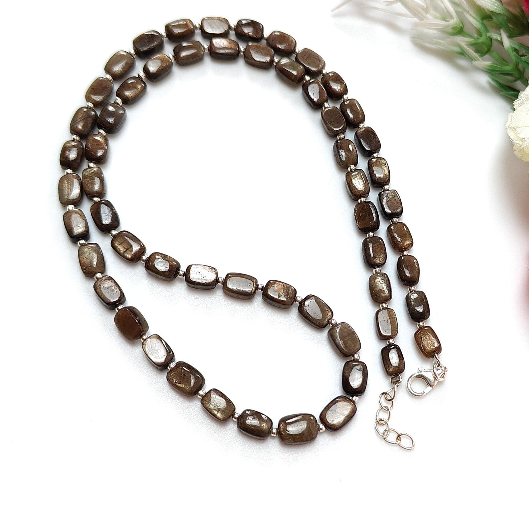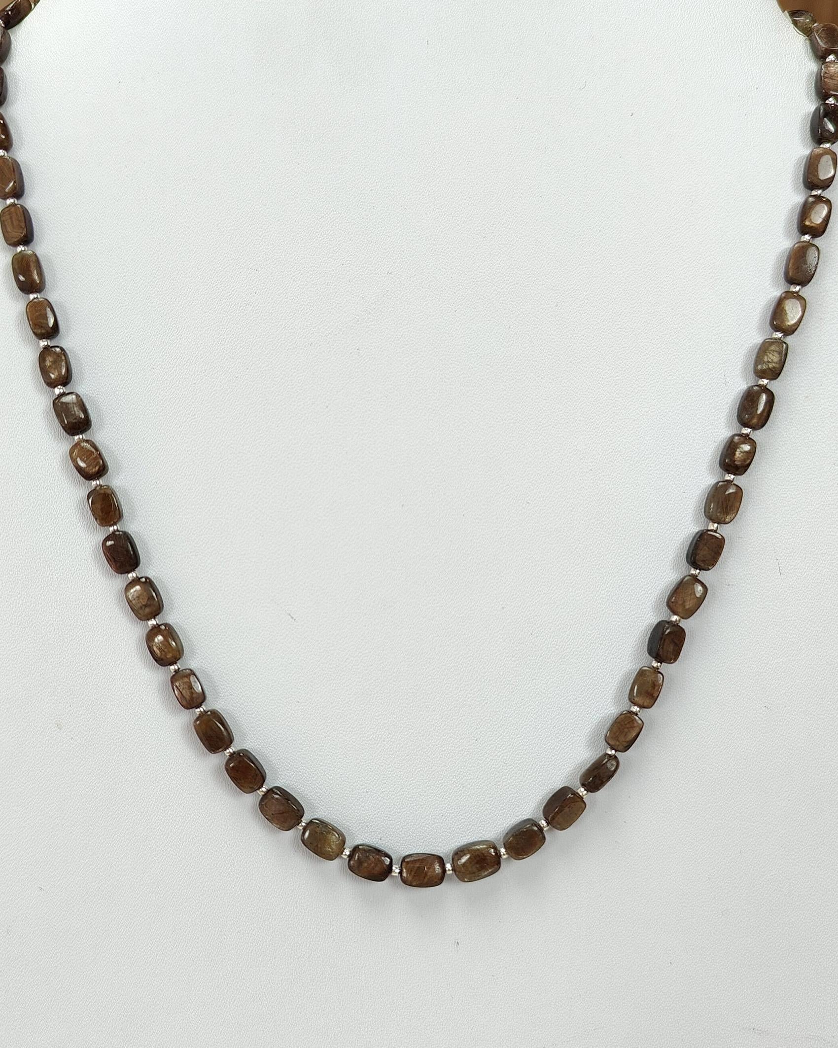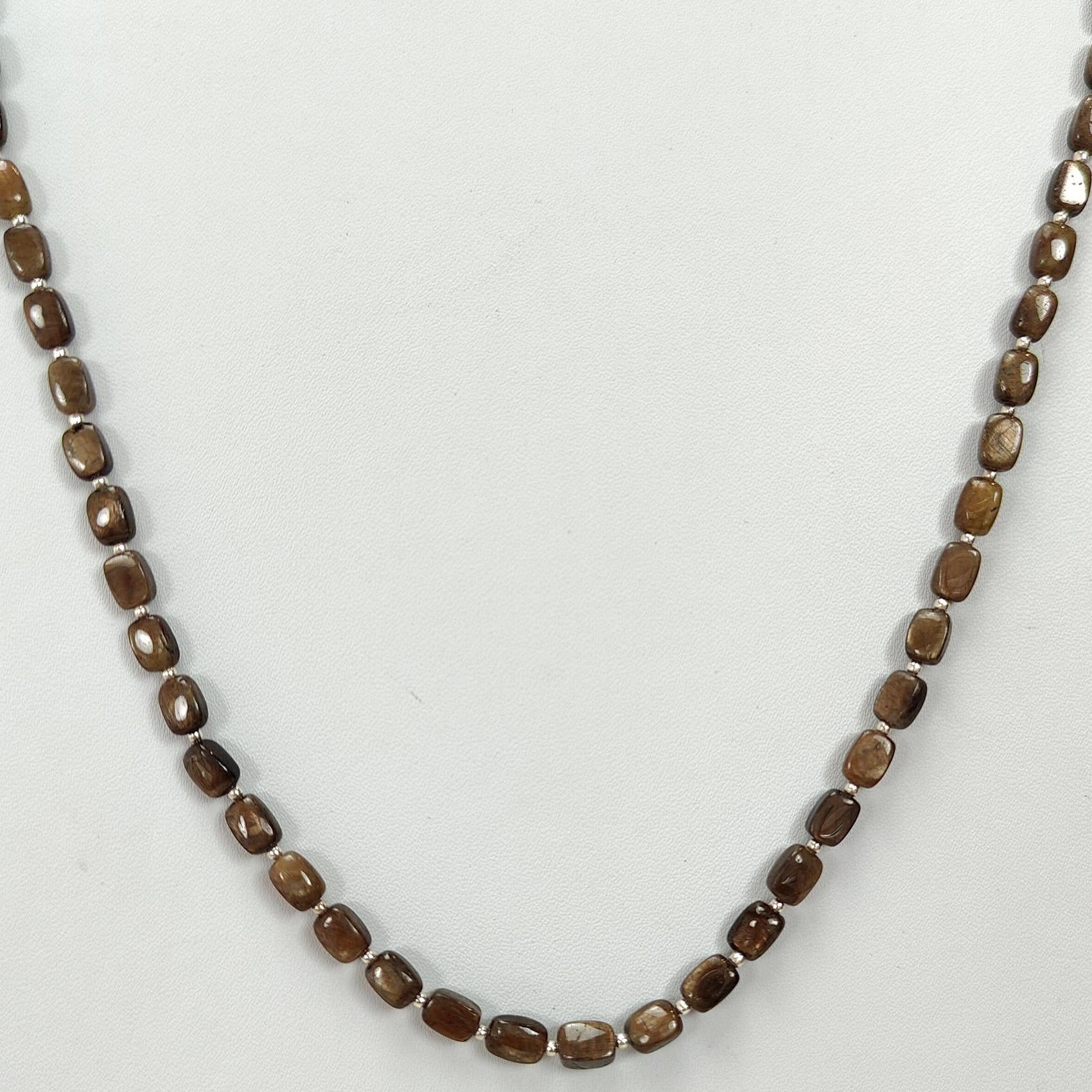 Golden Brown Sapphire Gemstone Beads Necklace : 21.71gms 925 Sterling Silver Natural Plain Cushion Sapphire 5.5*4mm - 7*6mm 19"