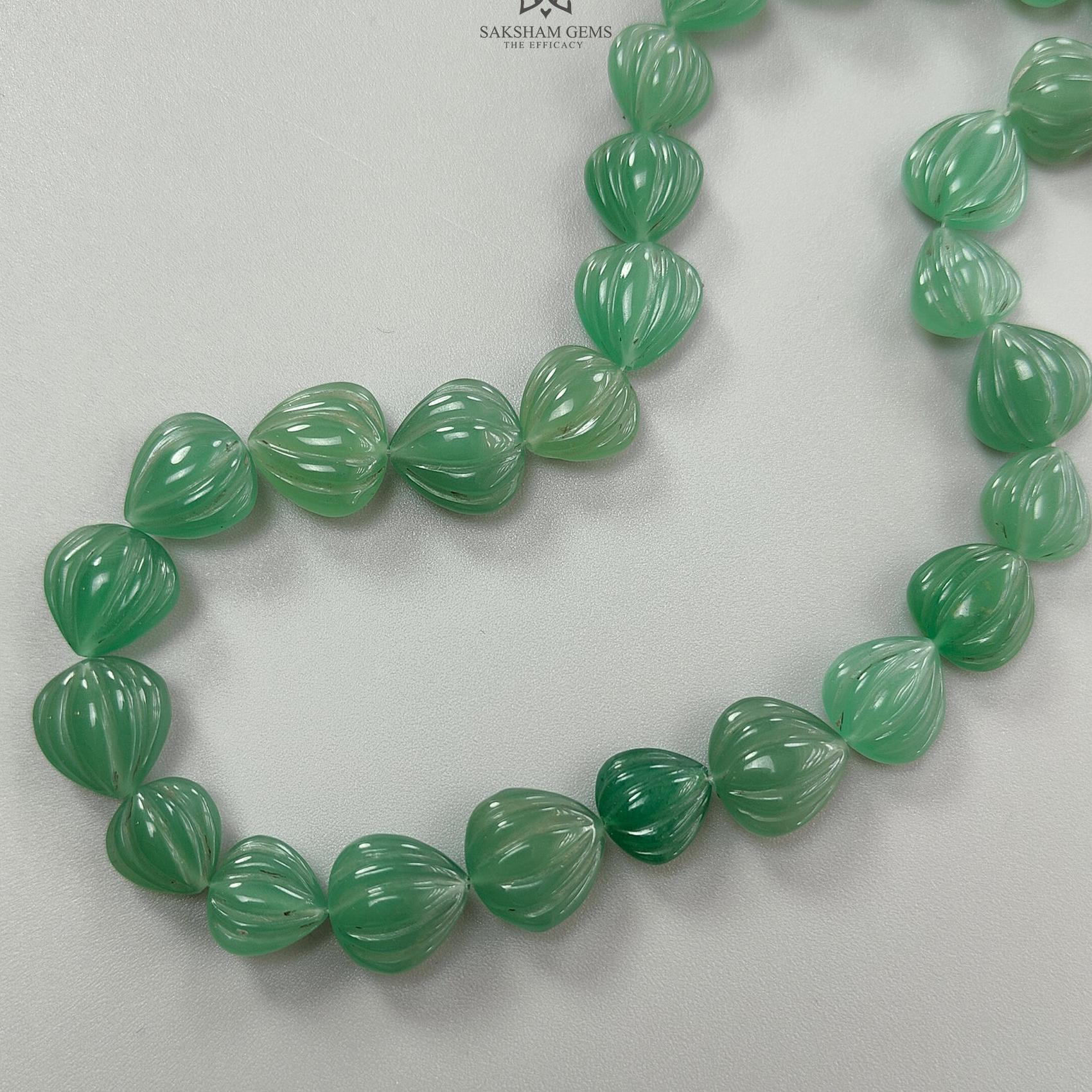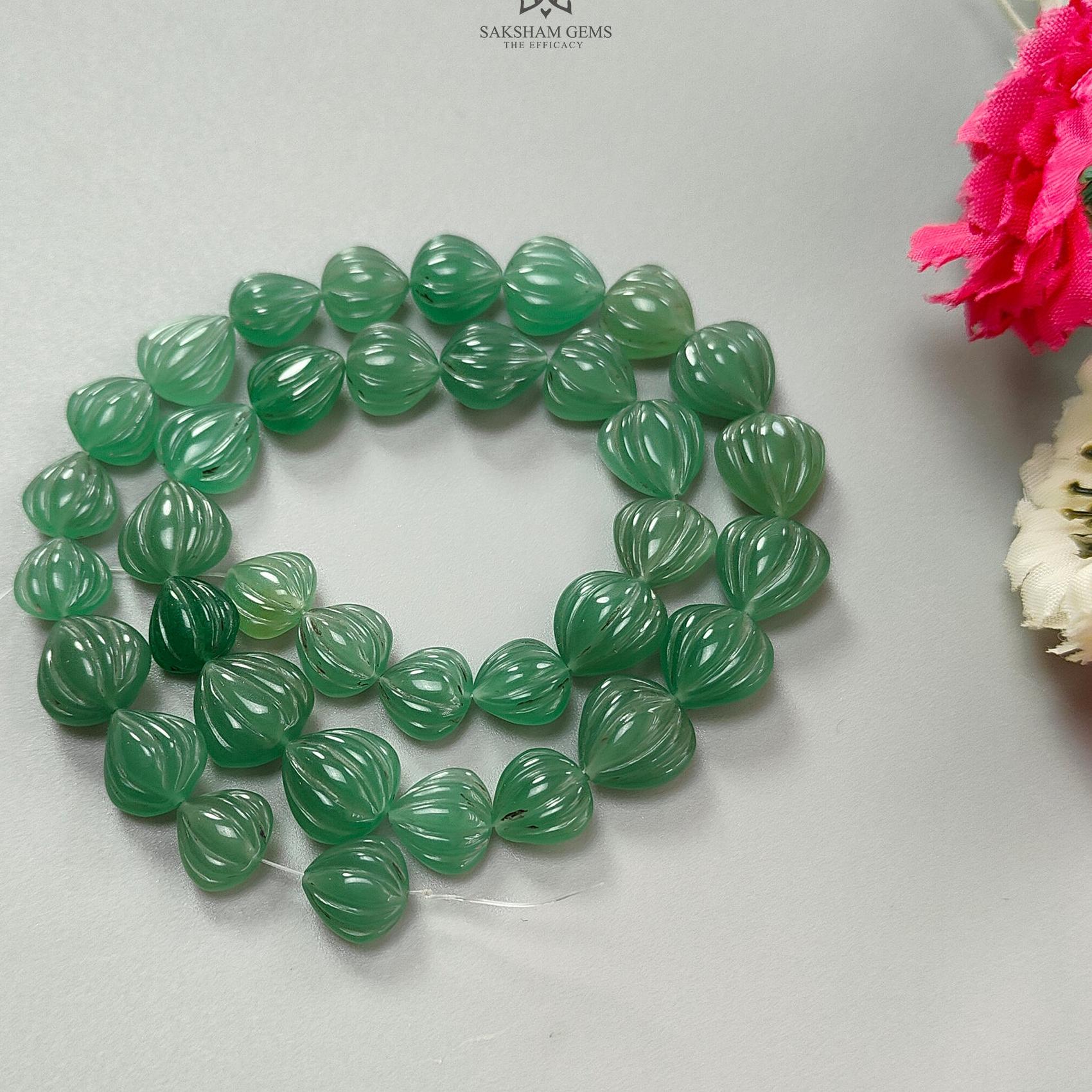 Green Quartz Carving Loose Beads: 164.60cts Natural Untreated Quartz Gemstone Heart Shape Both Side Hand Carved For Jewelry 10mm - 12mm 15"
