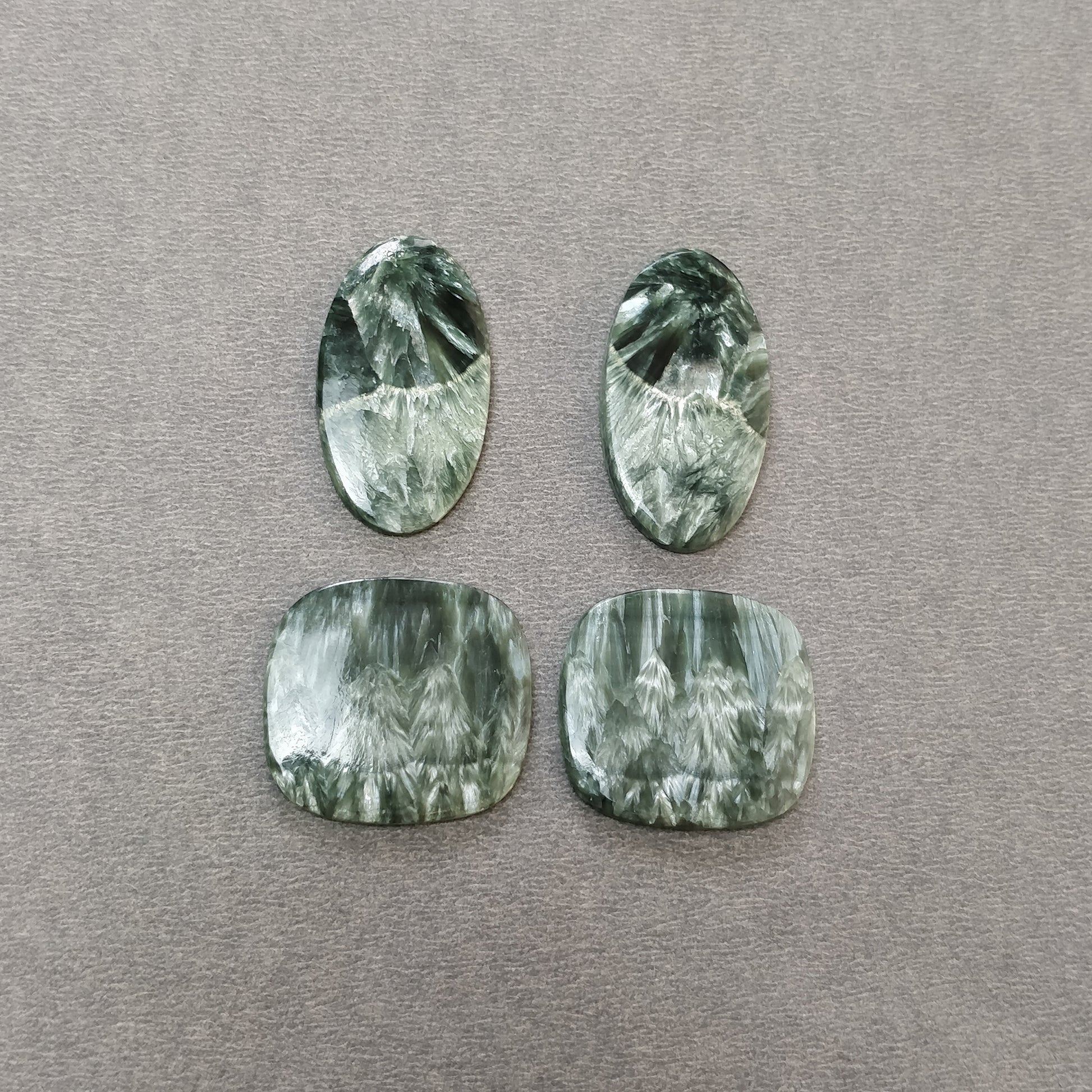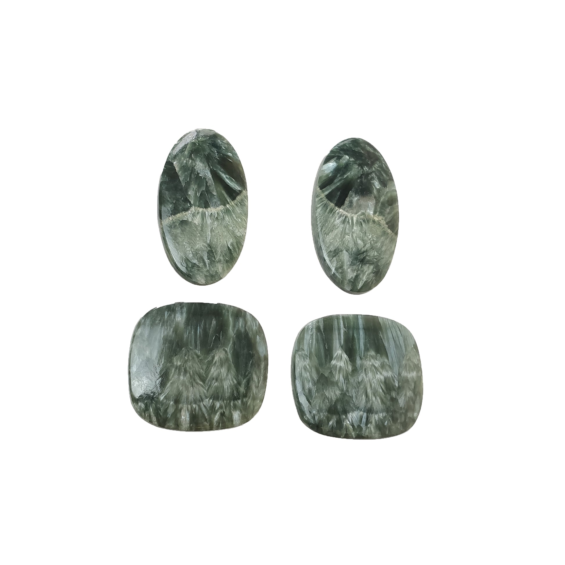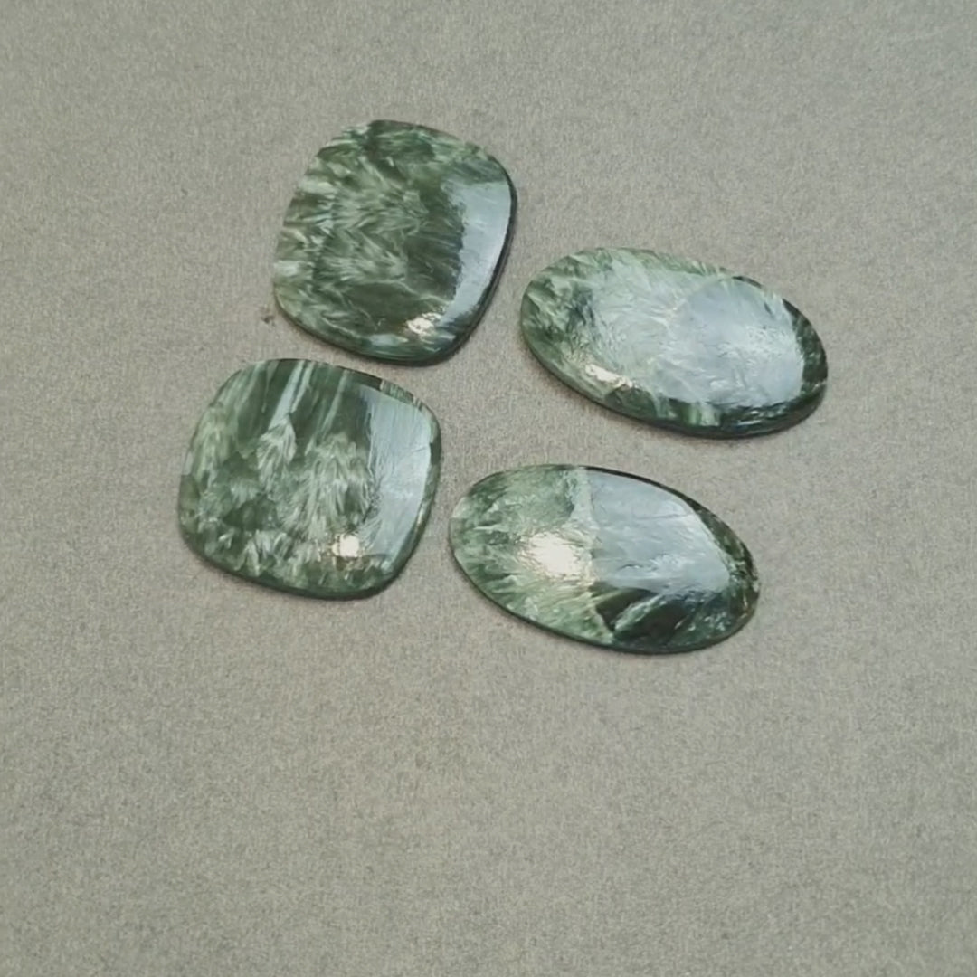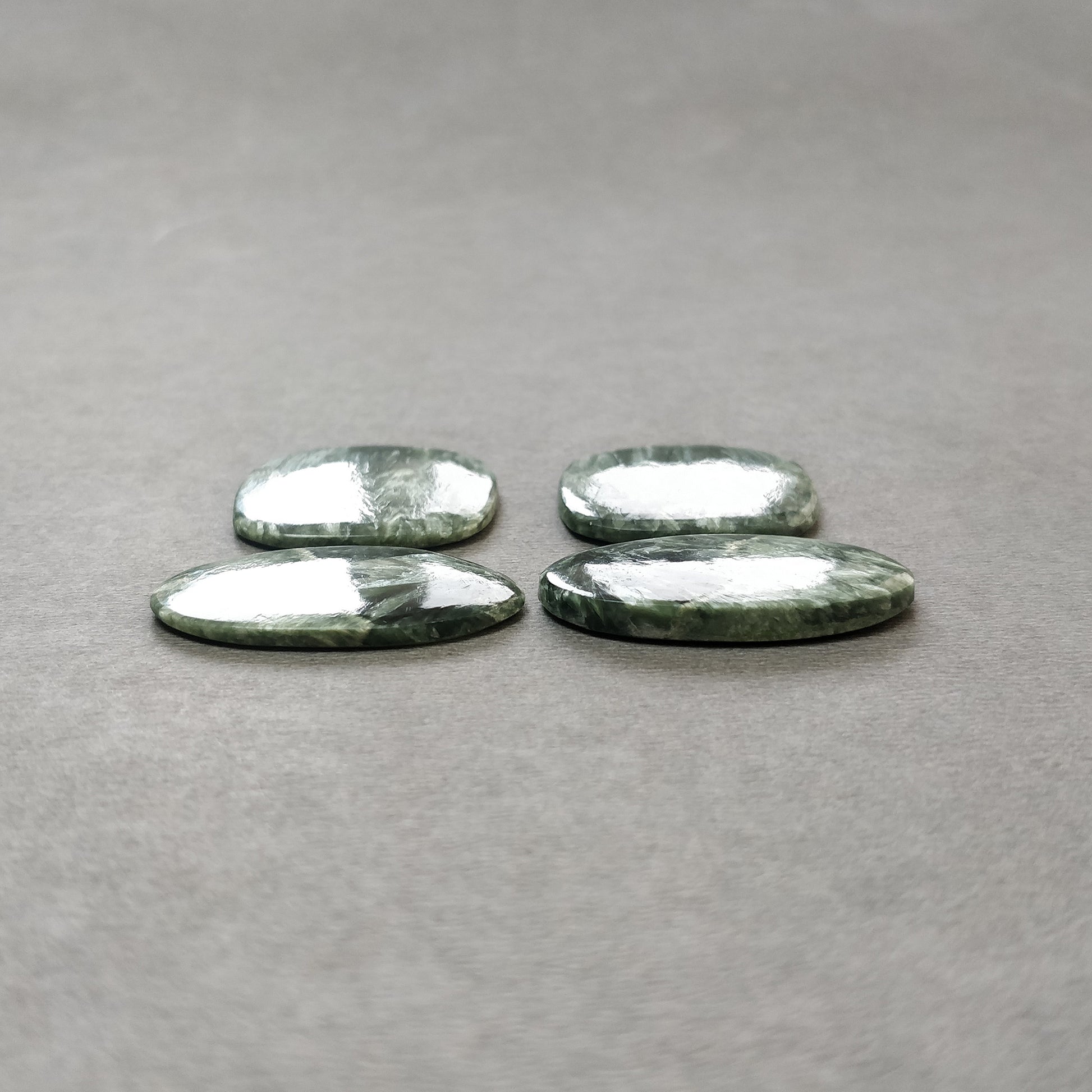 GREEN SERAPHINITE Gemstone Flats: 65.50cts Natural Untreated Gemstone Oval & Cushion Shape Cabochon Flat Bottom Slice 25*23mm - 31*17mm 4pcs