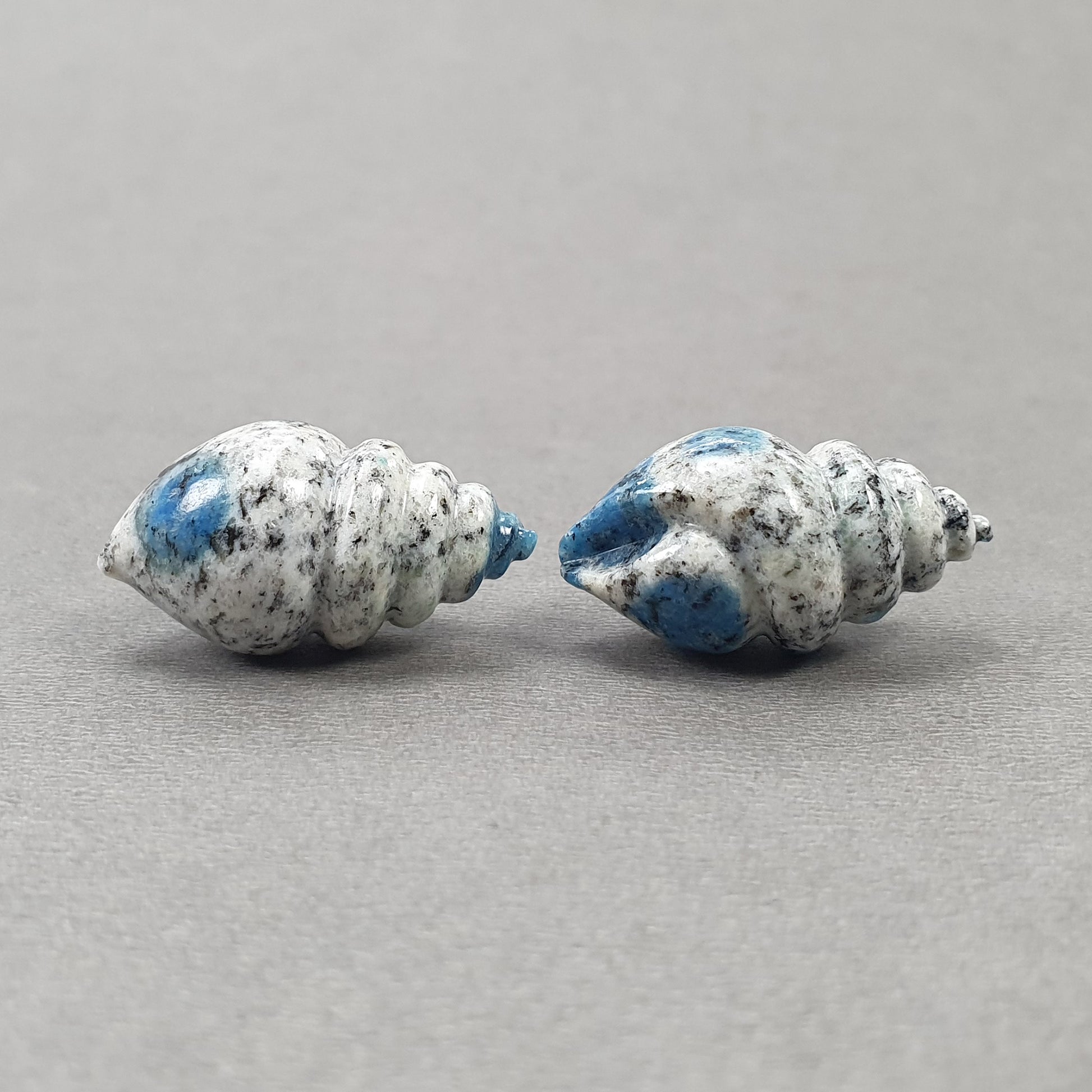 K2 Gemstone Carving : 77.90cts Natural Untreated Unheated Bi-Color Hand Carved Seashell Shape 30mm Pair