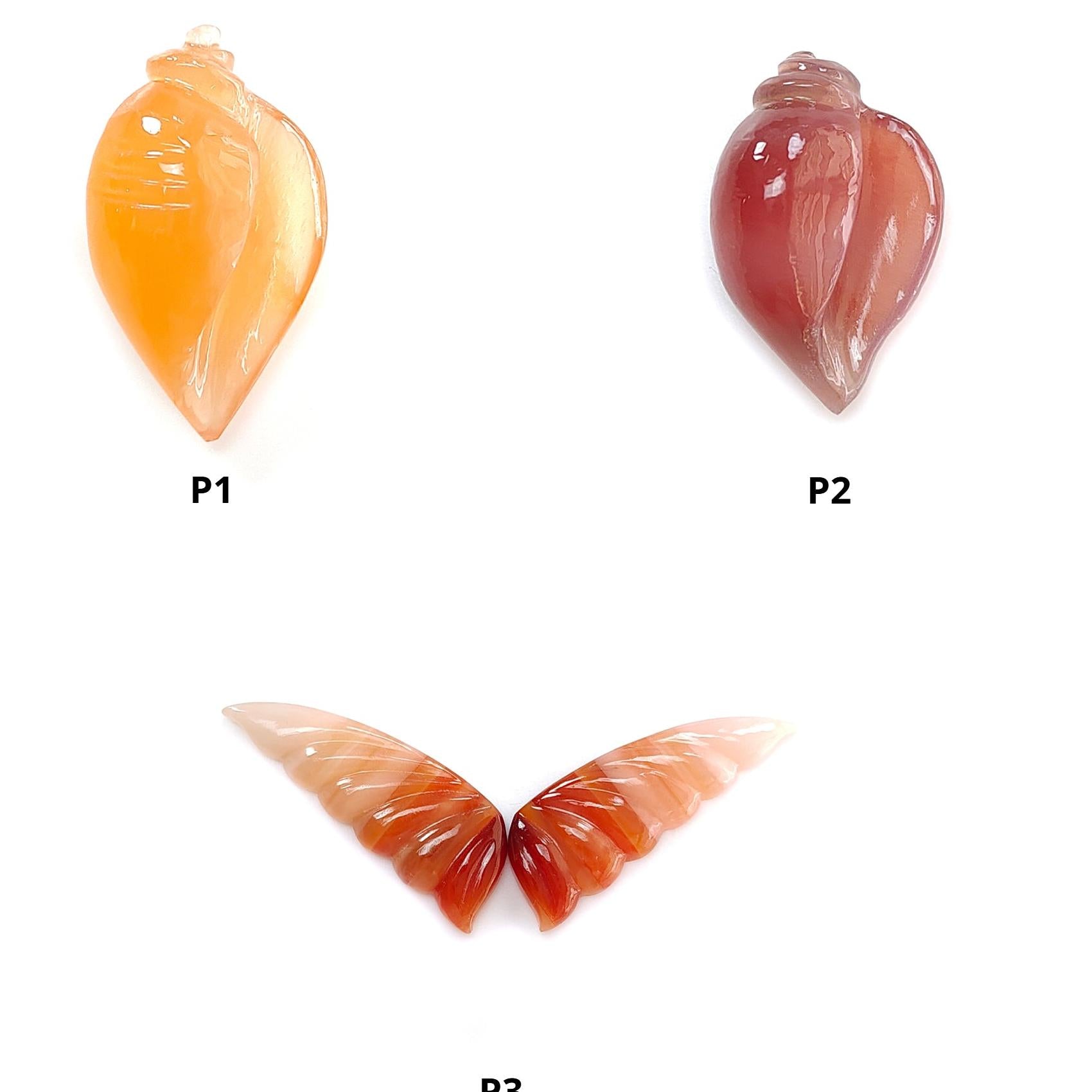 Multi Color Botswana Agate Gemstone Carving: Natural Untreated Bi-Color Agate Hand Carved Sea Shell & Butterfly 1pc, Pair for Jewelry