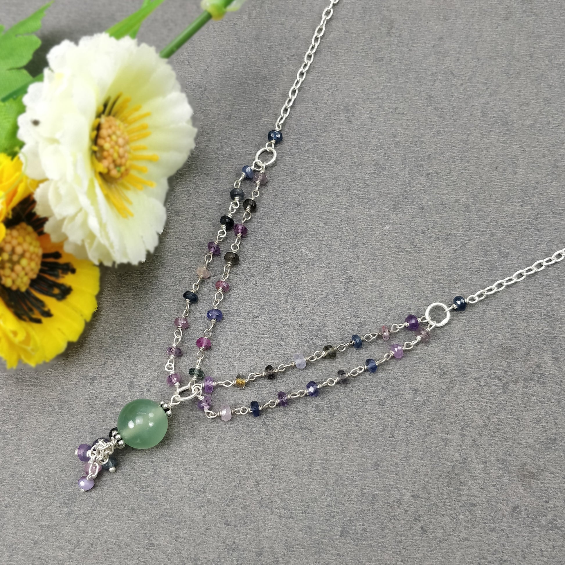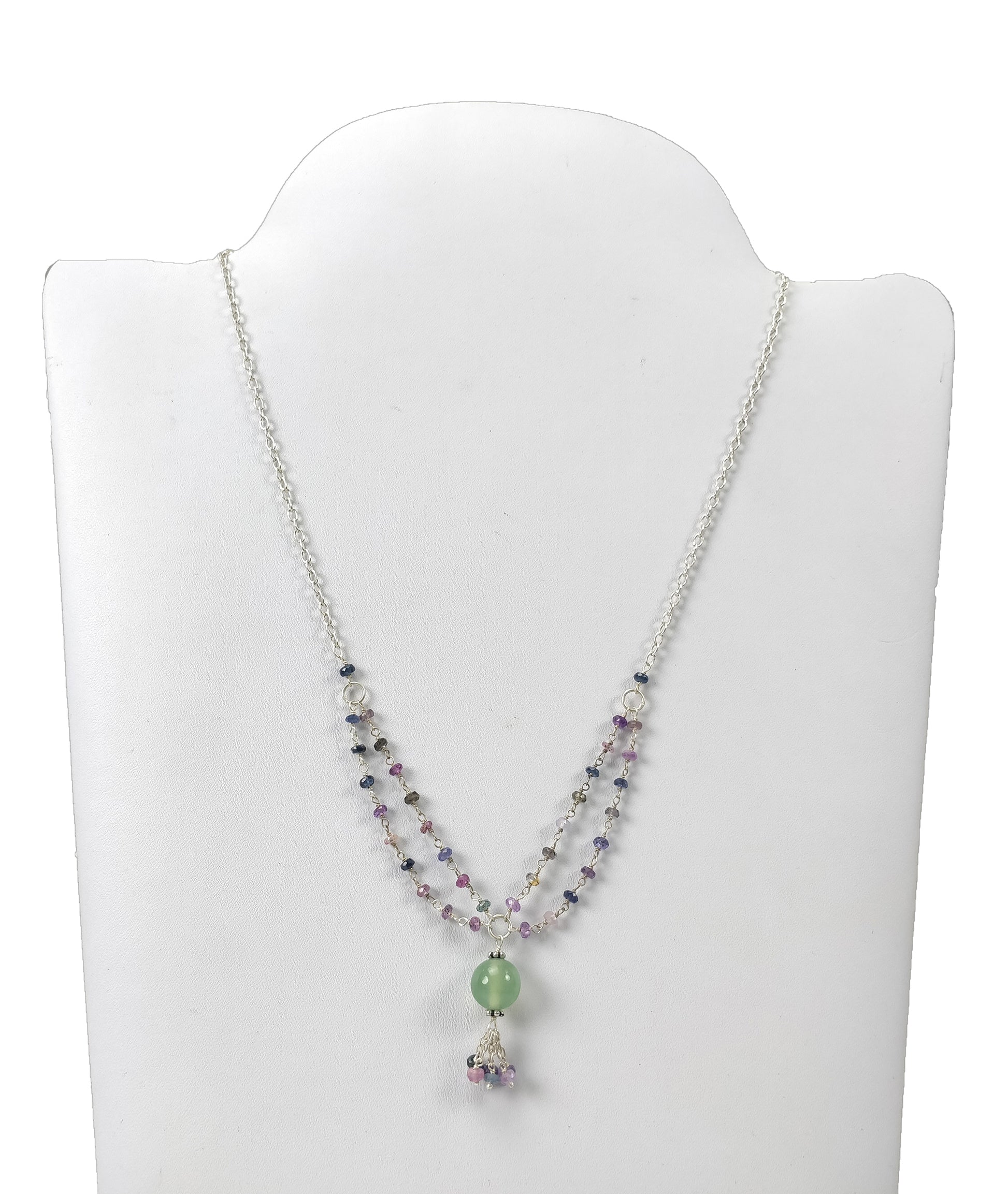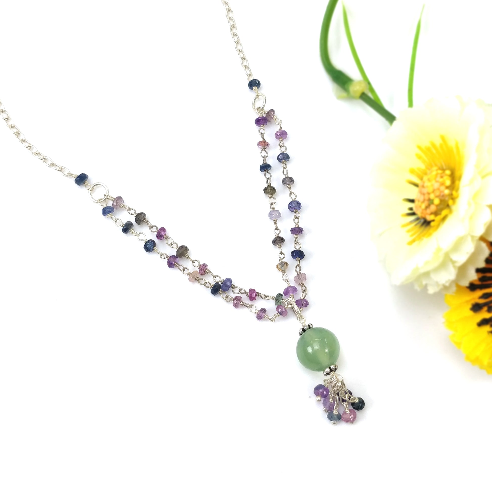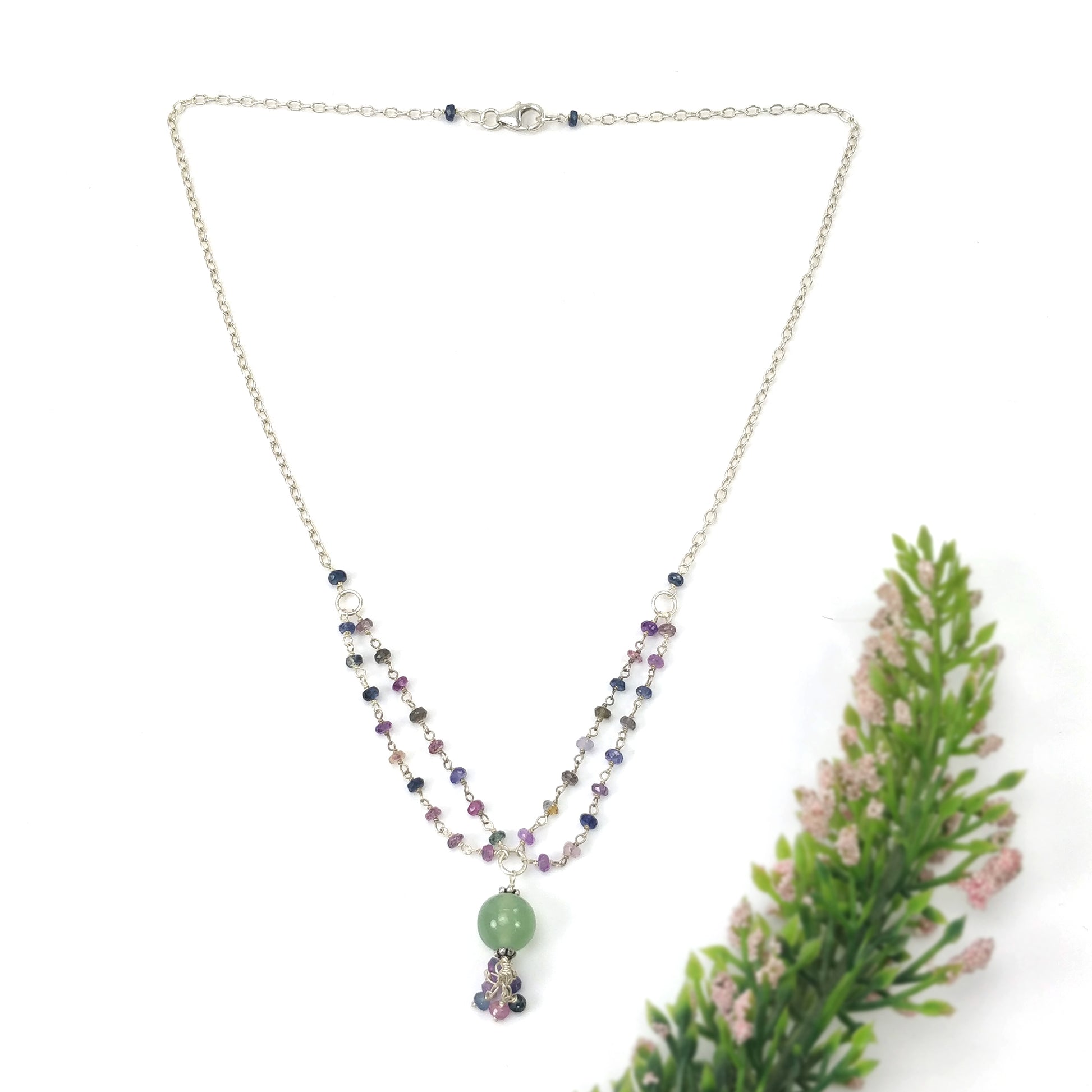 Multi Sapphire & Serpentine Gemstone Beads Chain NECKLACE : 36.80cts Natural Untreated With 925 Sterling Silver Necklace 3mm - 10mm 21"