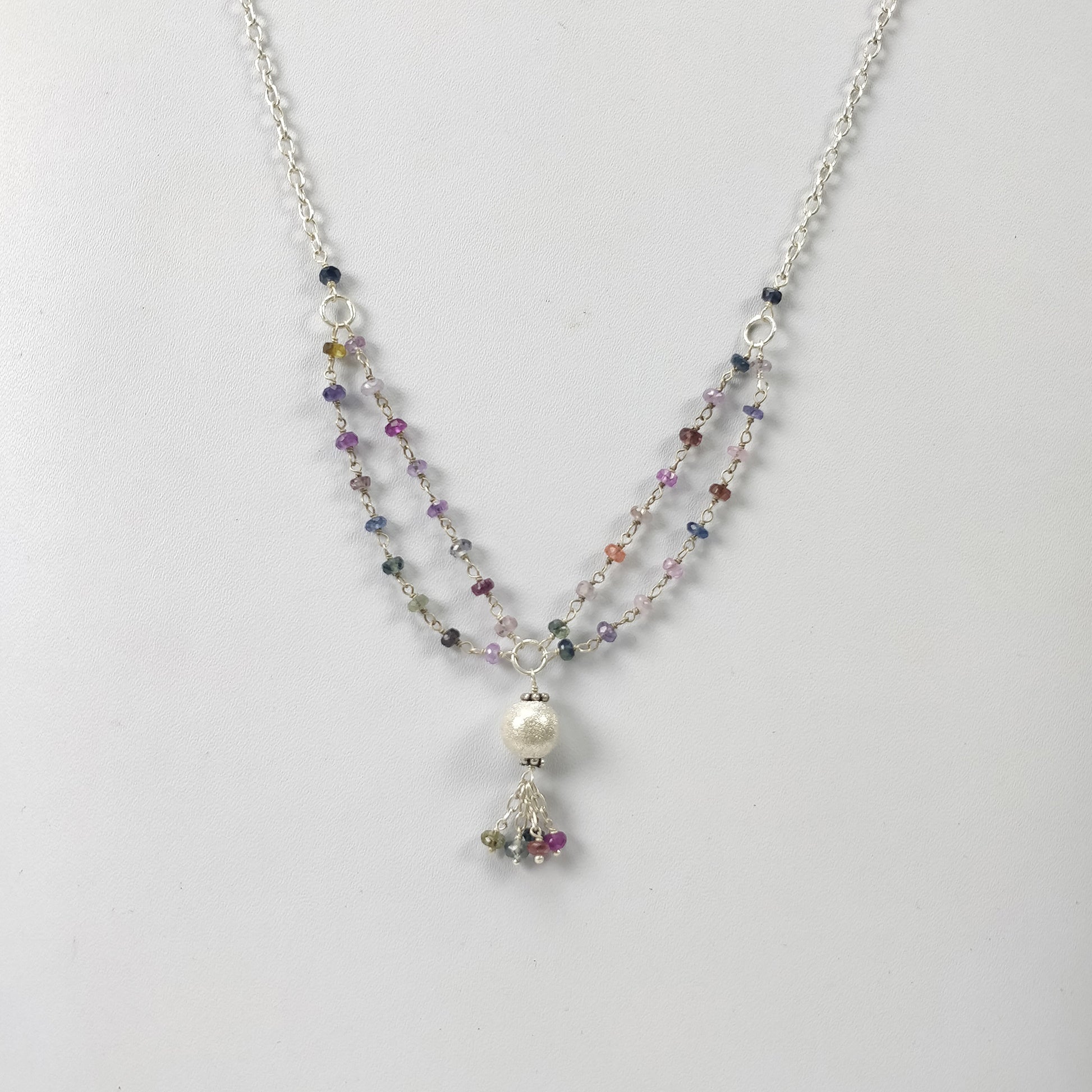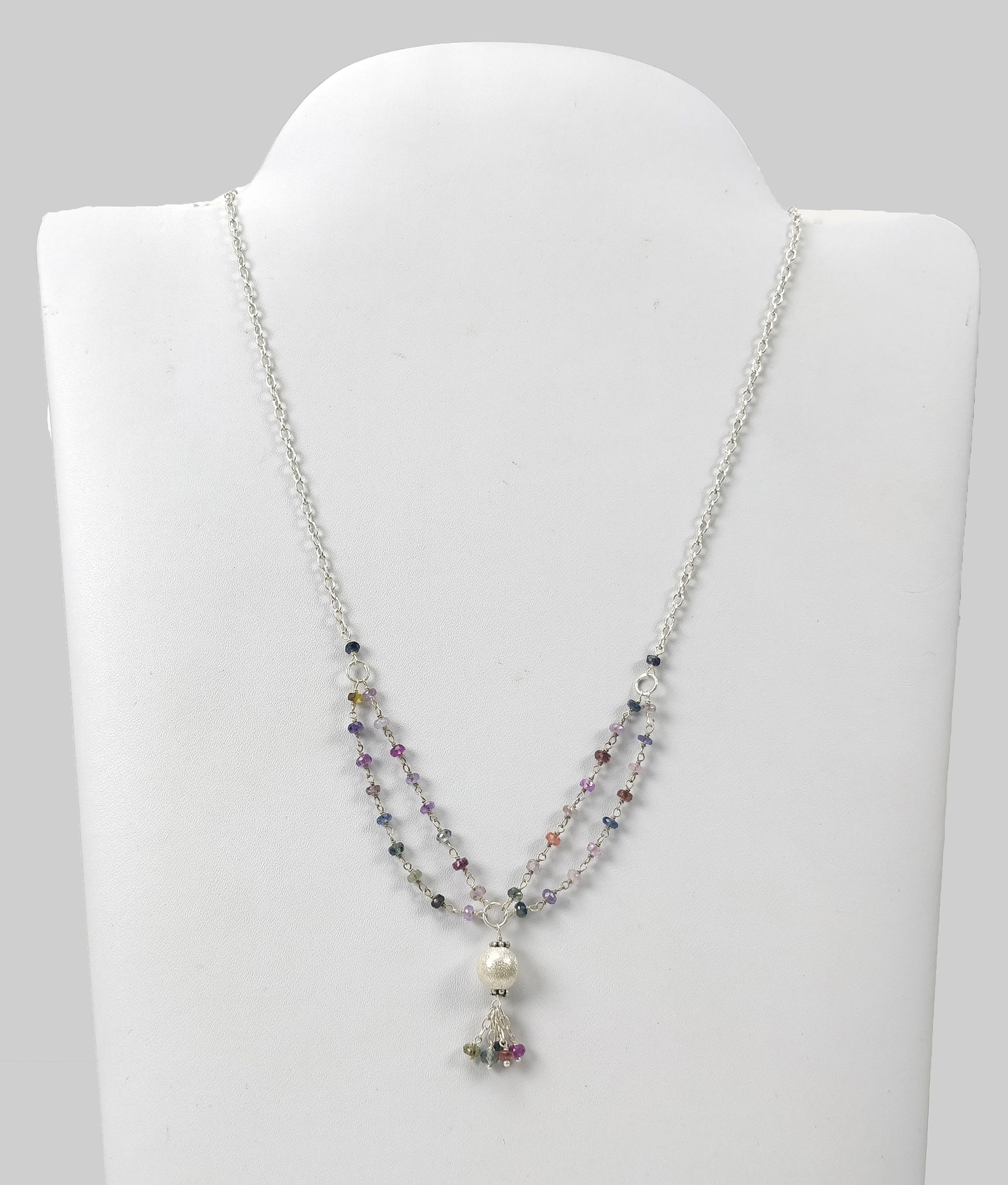 Multi Sapphire Gemstone Beads Chain NECKLACE : 37.75cts Natural Untreated With 925 Sterling Silver Necklace 3mm - 8mm 21"