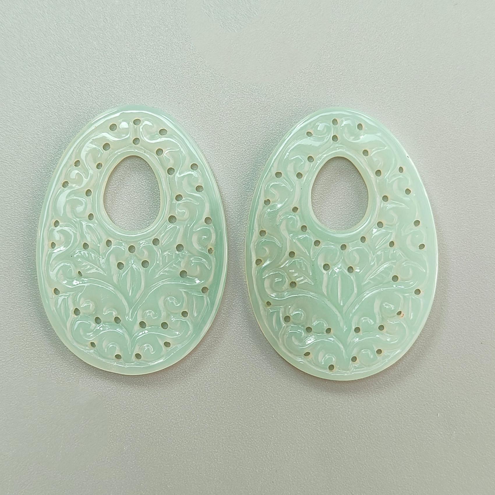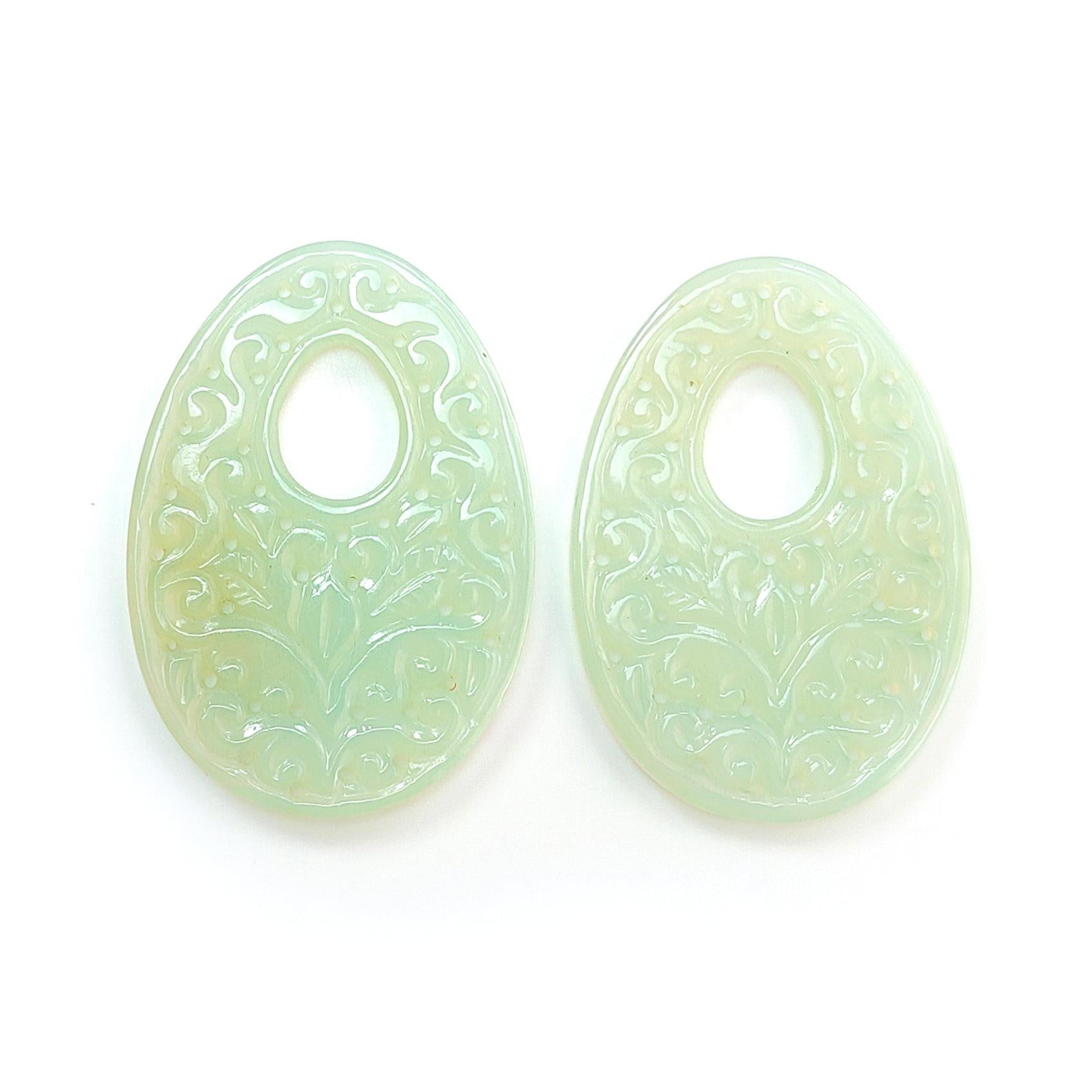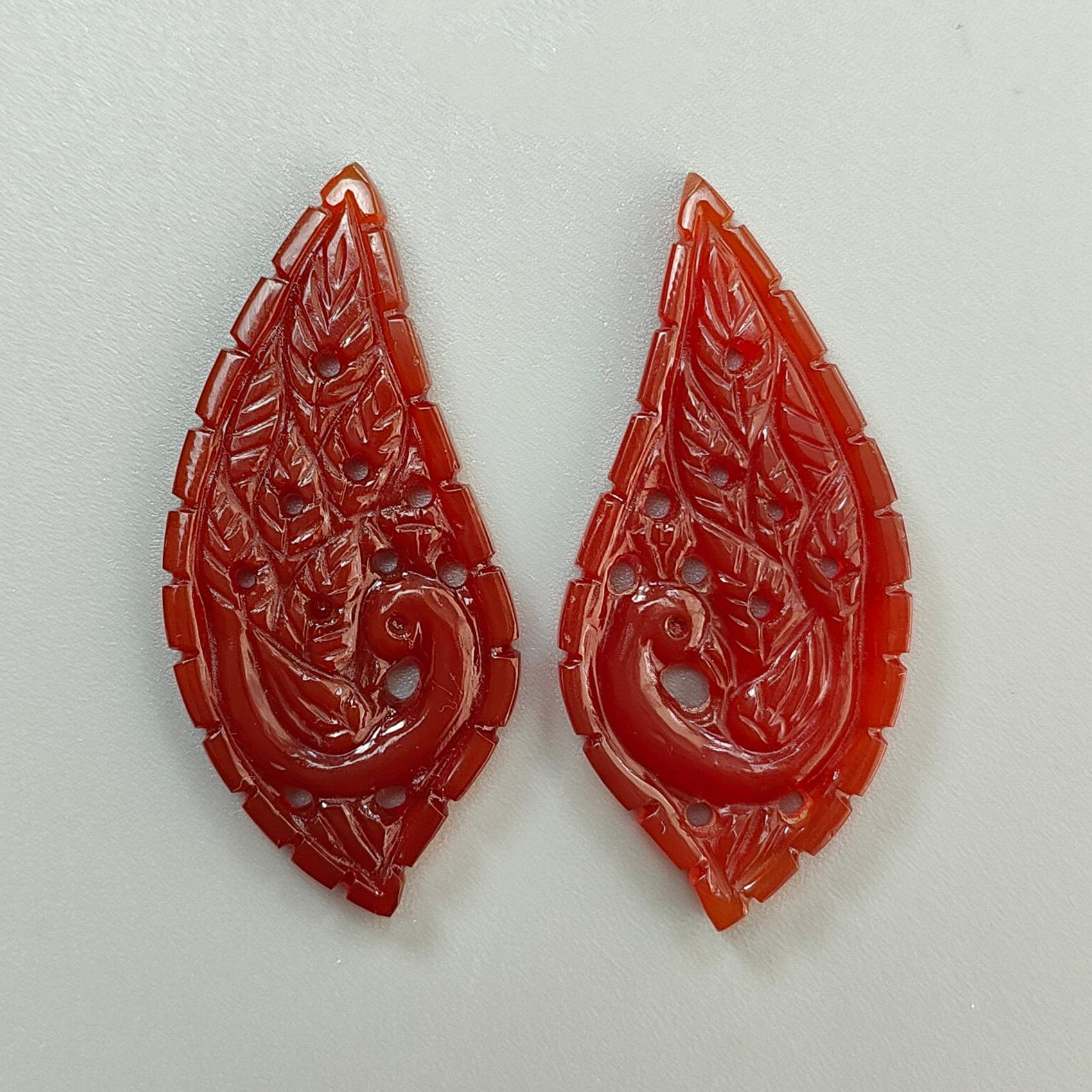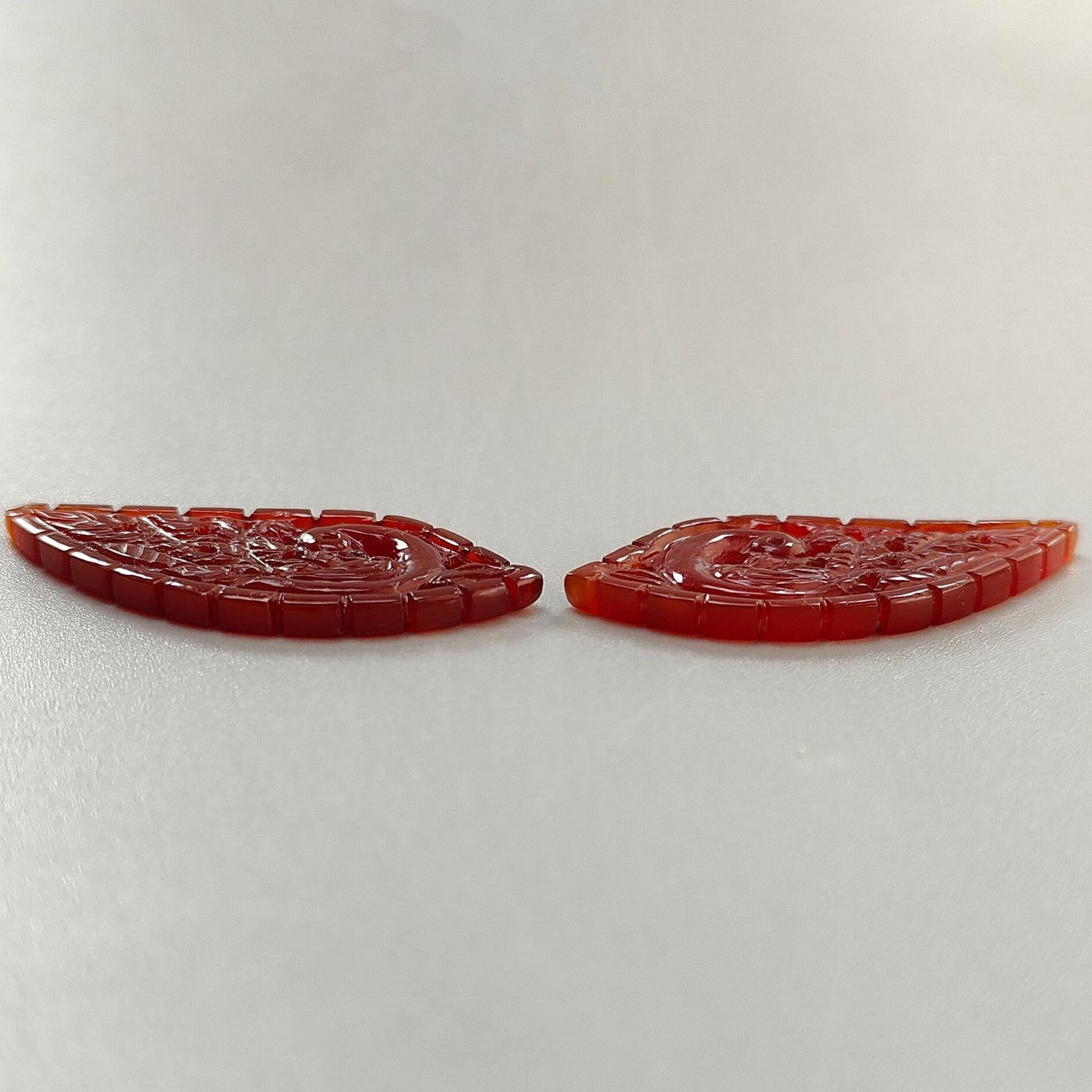 Orange, Green Onyx Gemstone Carving: Natural Color Enhanced Onyx Hand Carved Fancy, Egg Shapes Pair for Jewelry July Birthstone