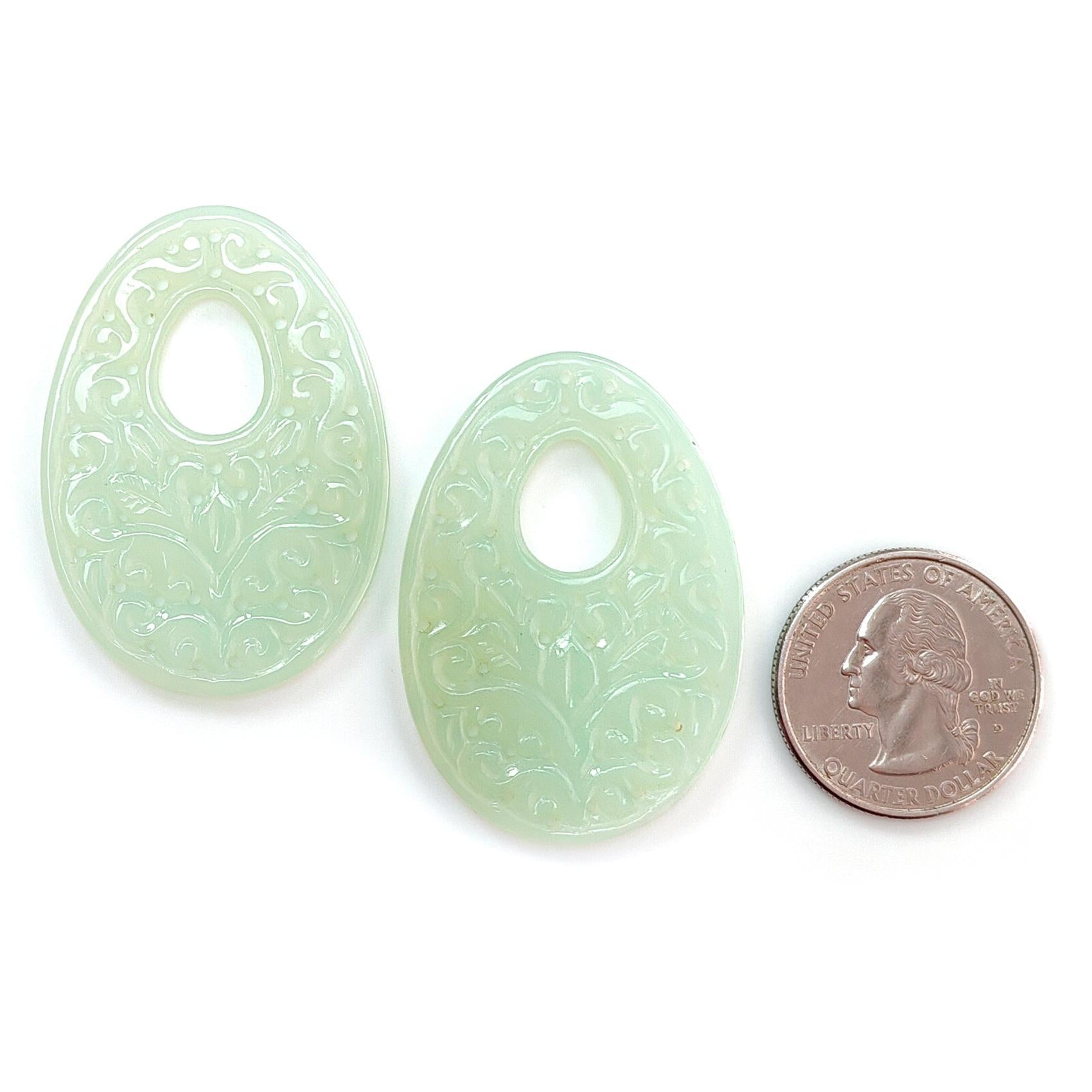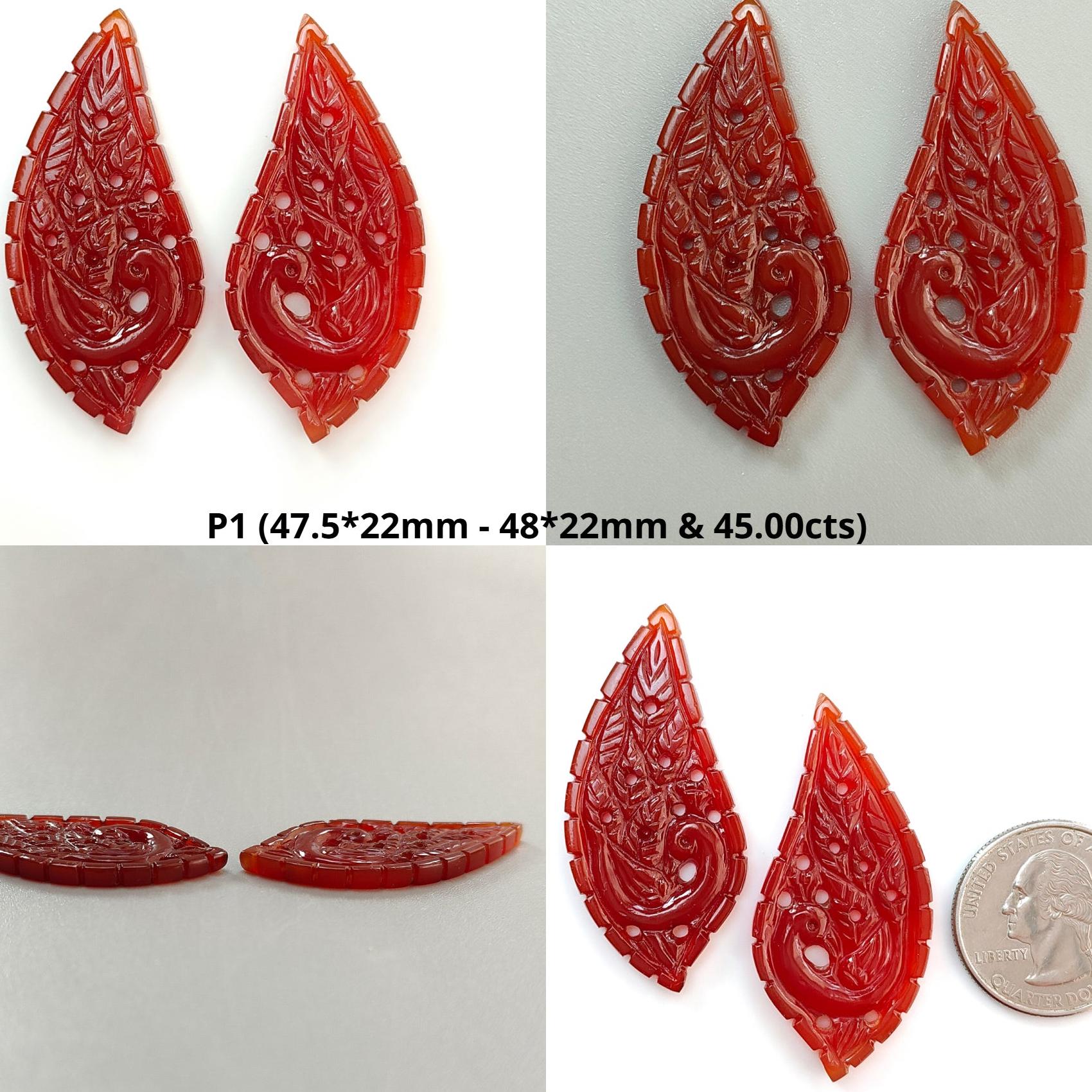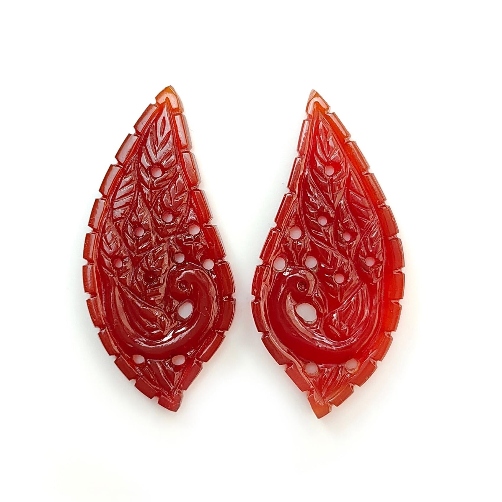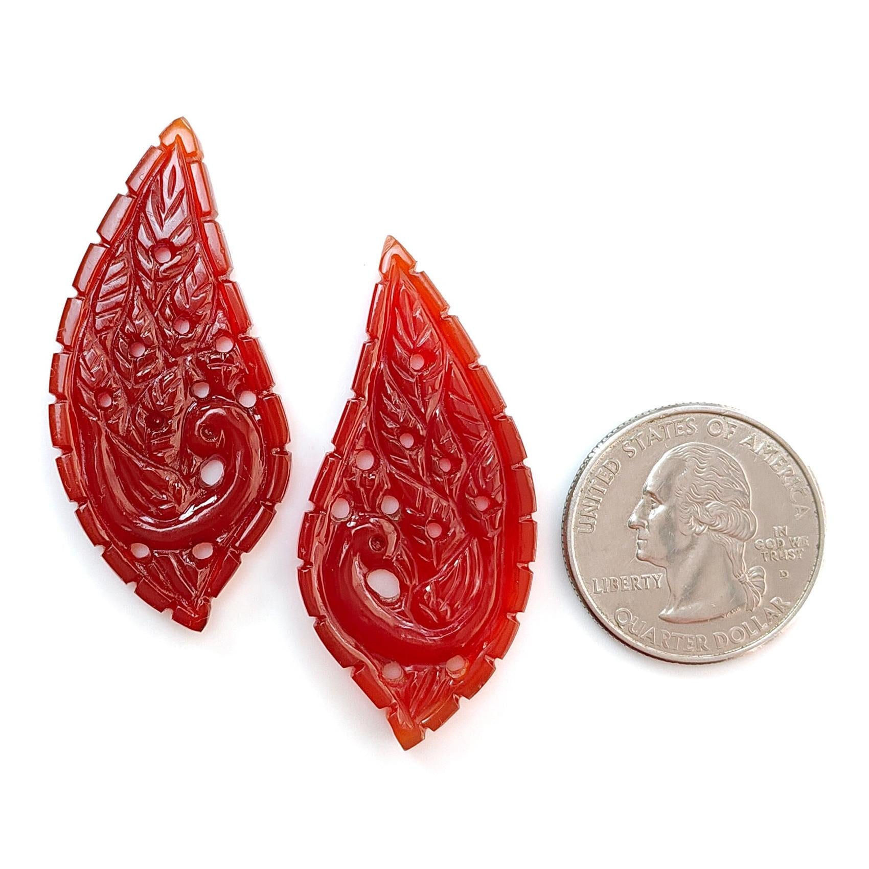 Orange, Green Onyx Gemstone Carving: Natural Color Enhanced Onyx Hand Carved Fancy, Egg Shapes Pair for Jewelry July Birthstone