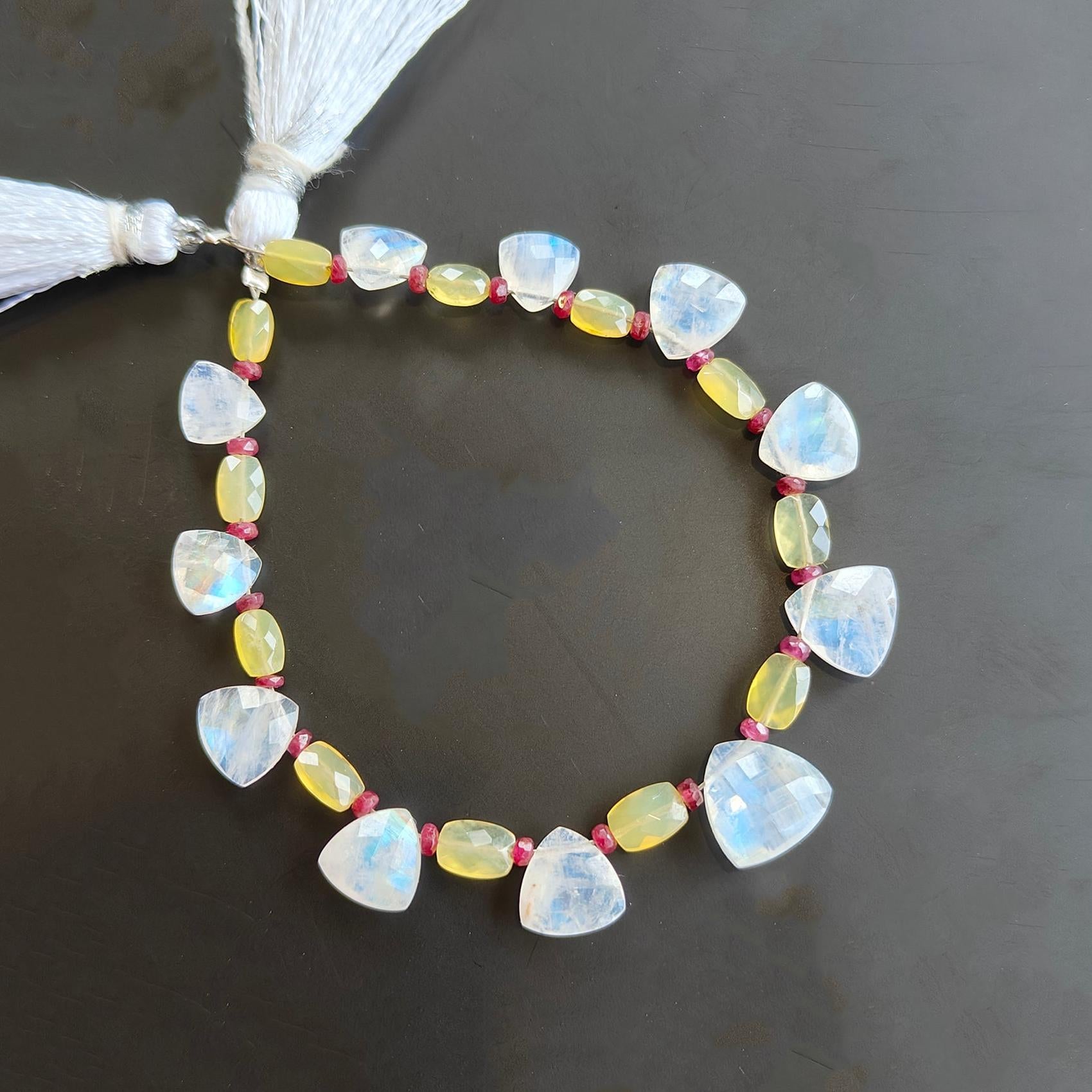 Moonstone Ruby & Opal Gemstone Checker Cut : 26.00cts Natural Tringle Cushion Faceted Briolette Loose Beads 5*3.5mm - 10mm For Bracelet