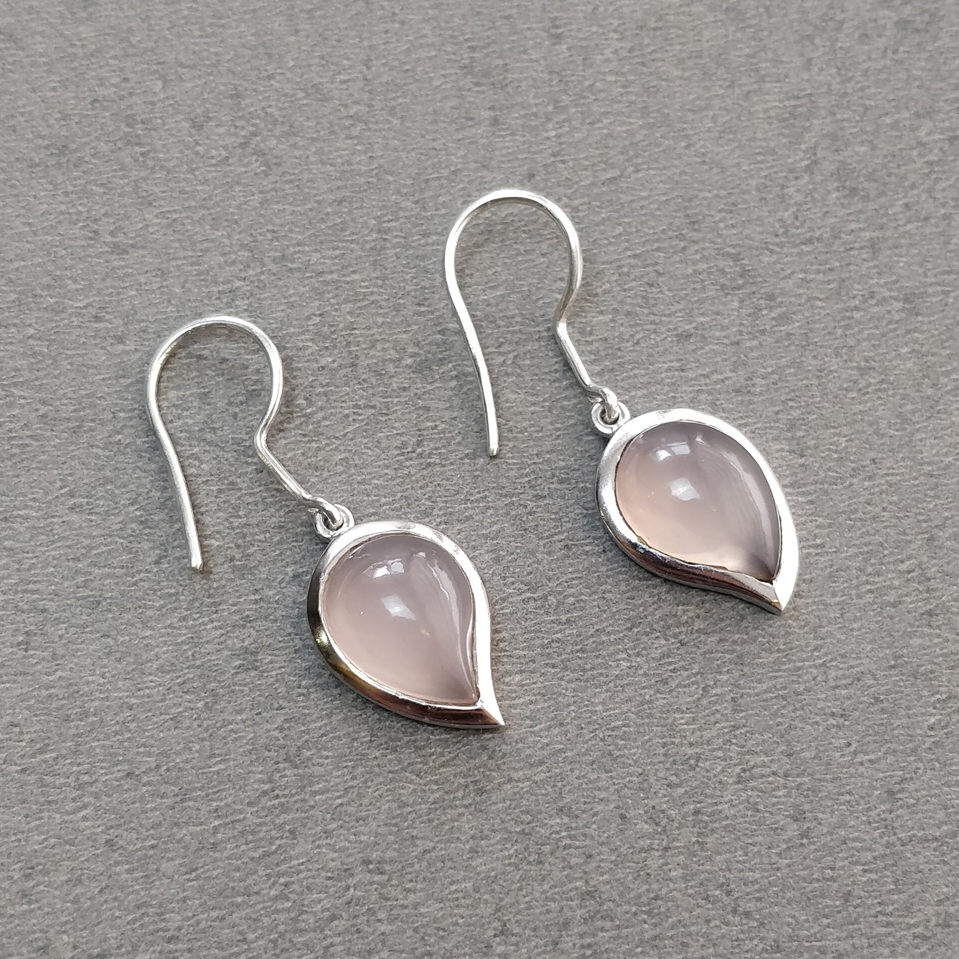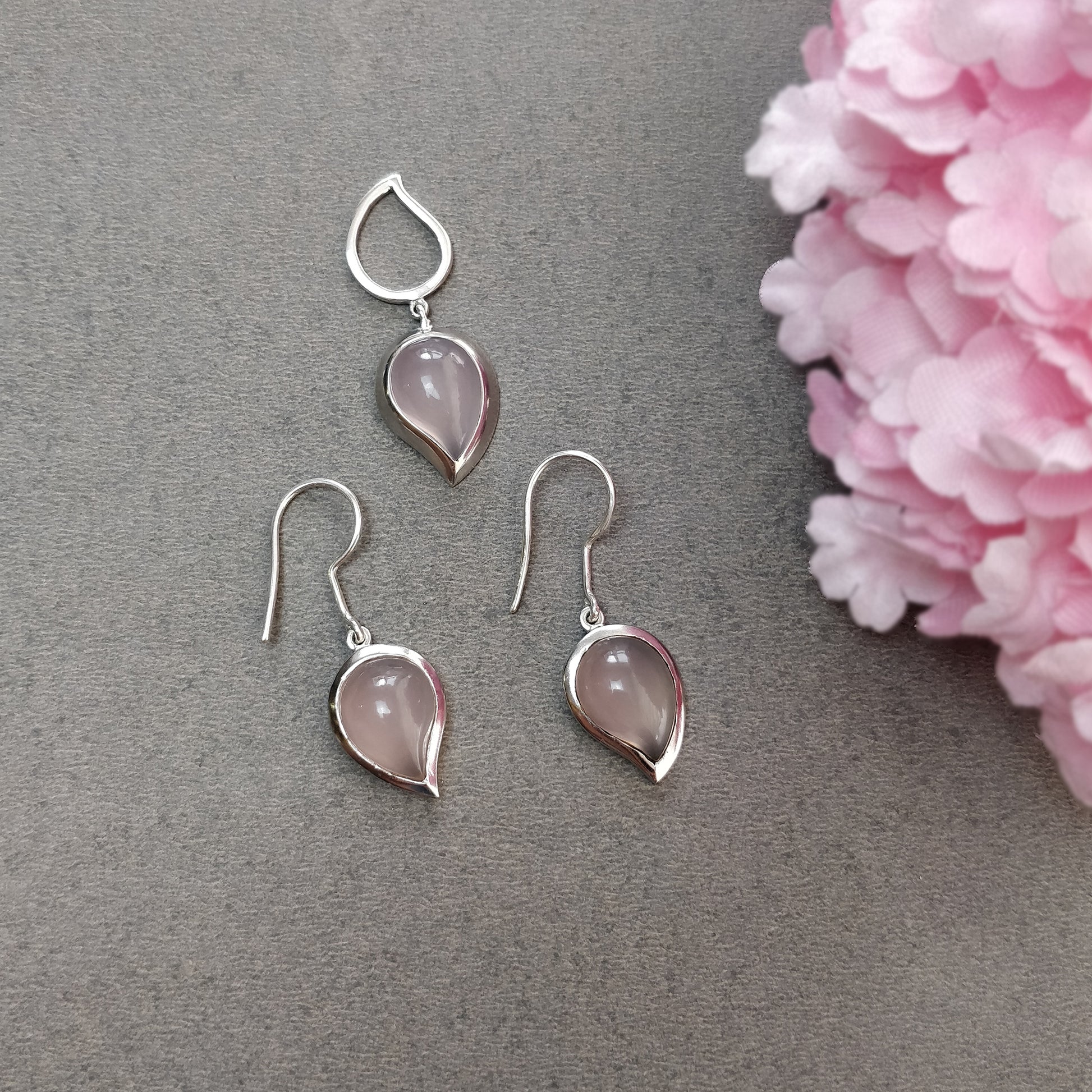 Pink Onyx Gemstone Jewelry Set : 925 Sterling Silver Natural Onyx Leaf Shape Cabochon Bezel Set Earrings Pendant Jewelry Set