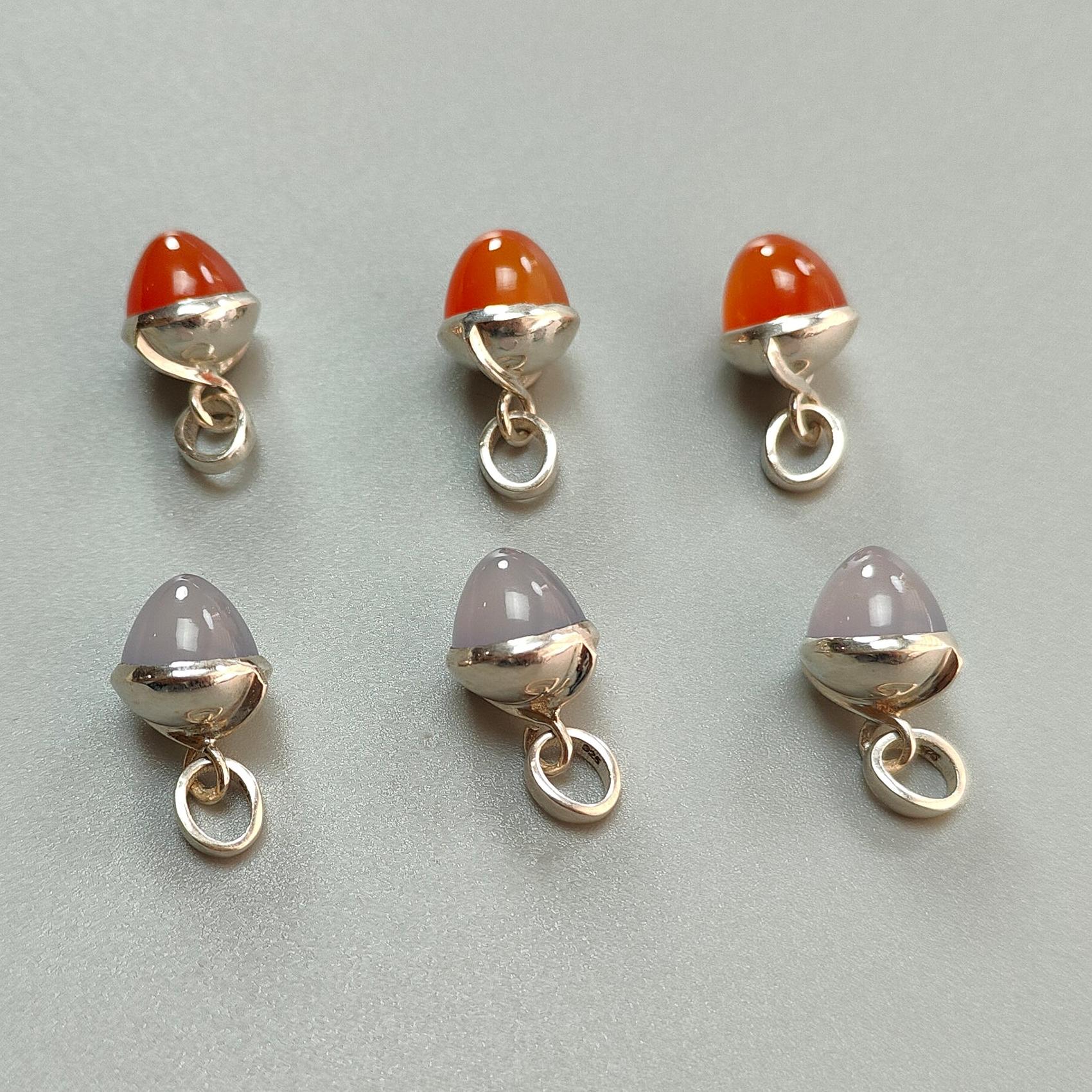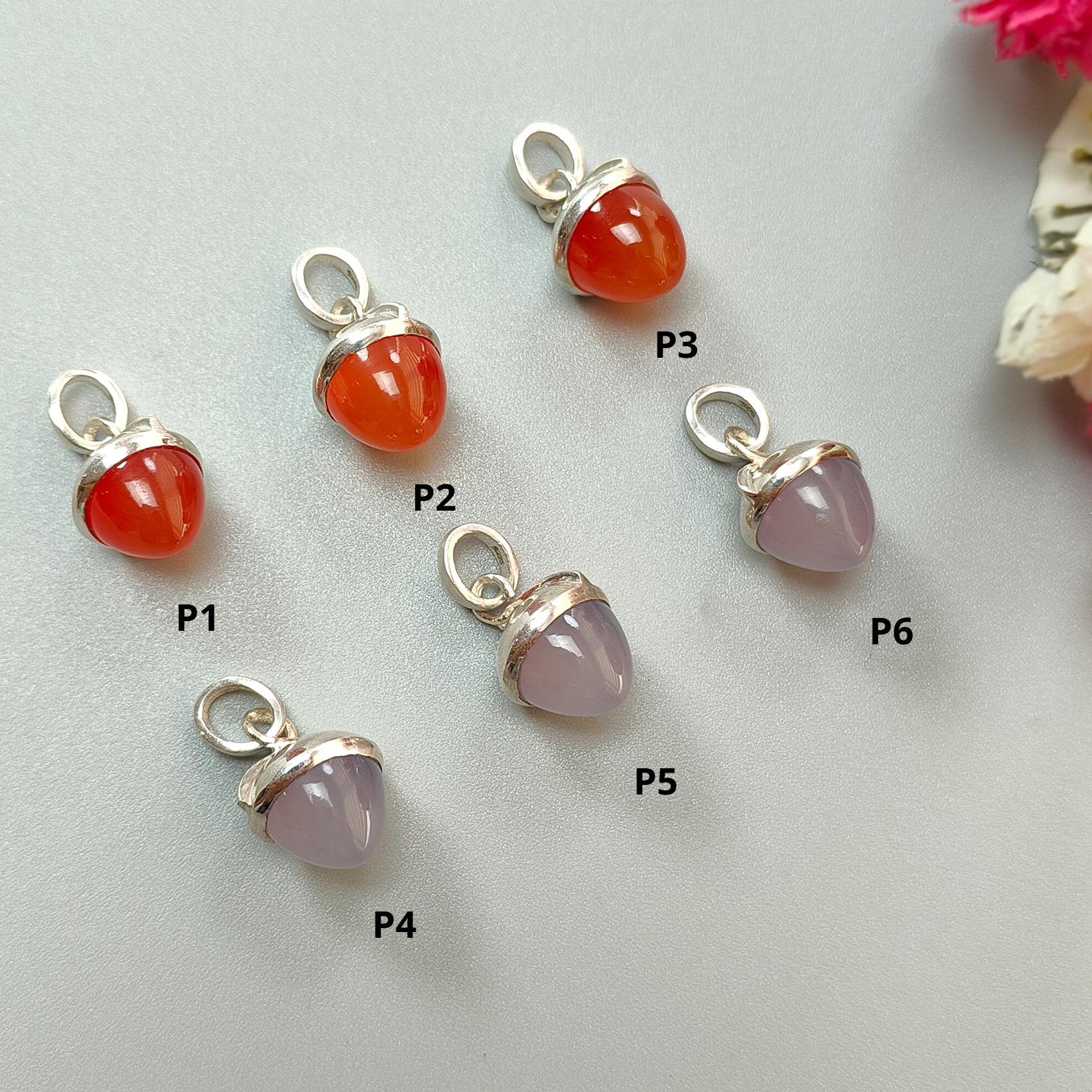 Onyx Gemstone 925 Sterling Silver Pendant: Natural Orange, Pink Onyx Bezel Set Regular Size Bullet Pendant with Normal Loop 1" Gift for her