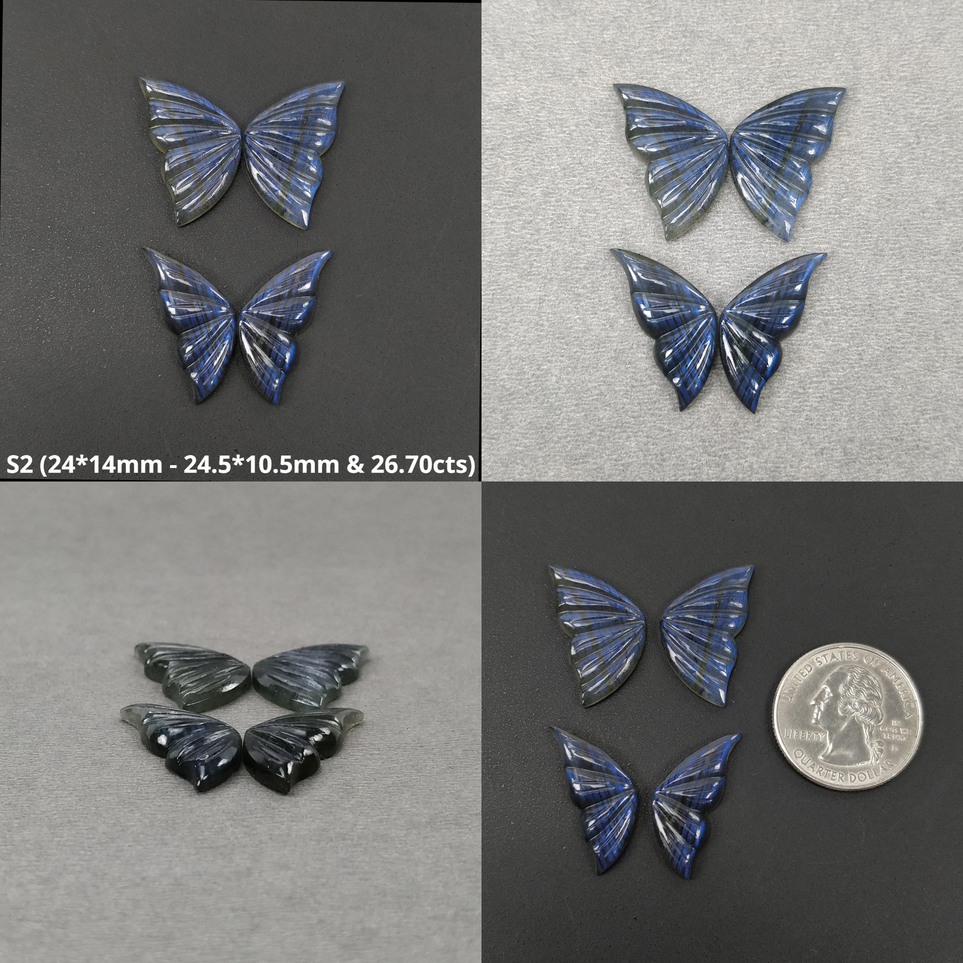 LABRADORITE Gemstone Carving : Natural Untreated Unheated Labradorite Hand Carved Butterfly And Angel Wings Sets