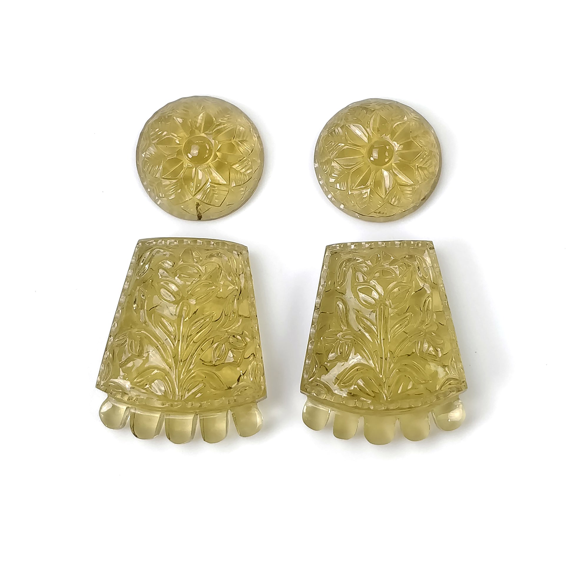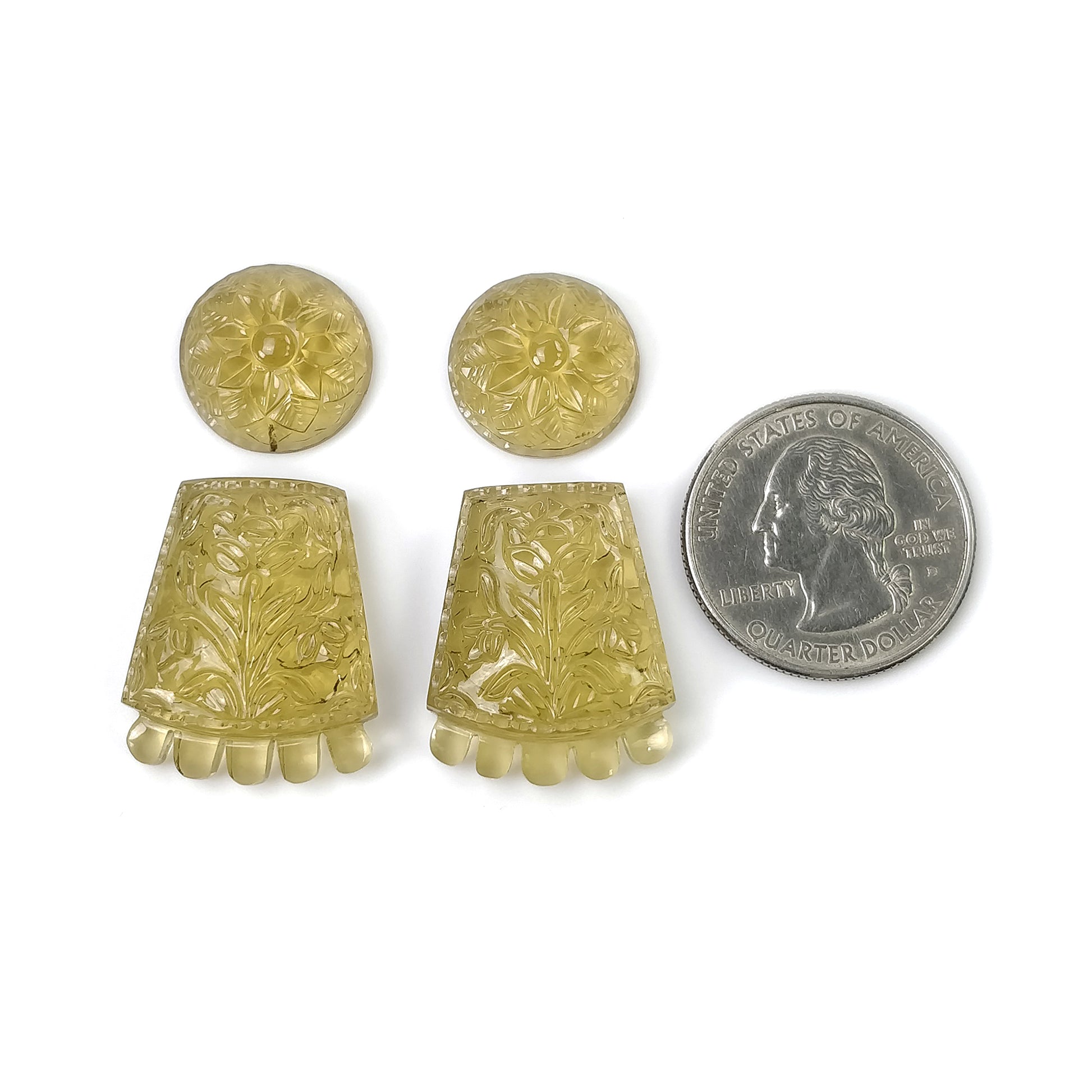 LEMON QUARTZ Gemstone Carving : 82.80cts Natural Untreated Quartz Hand Carved Round Uneven Shape 16.5mm - 25*20.5mm 4pcs