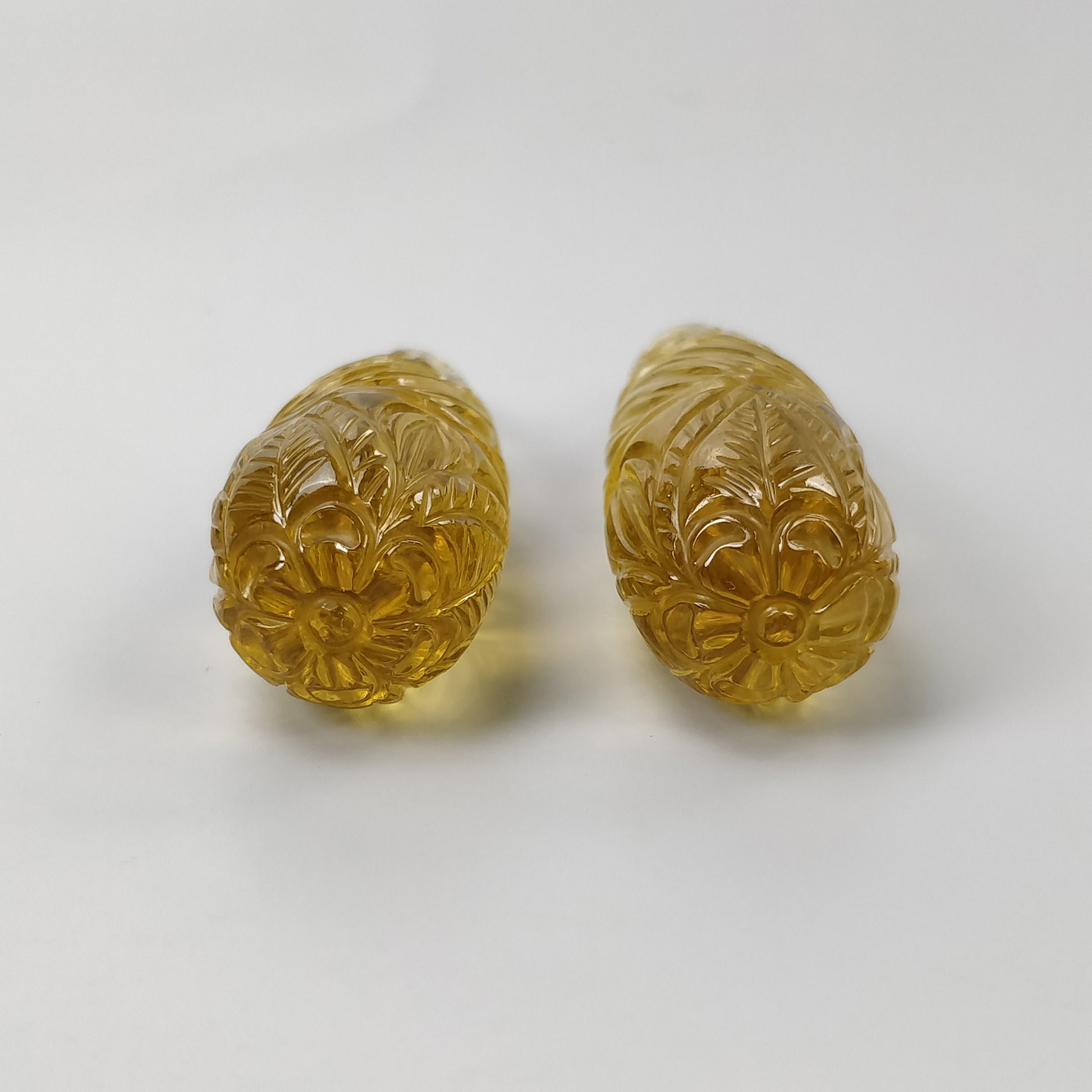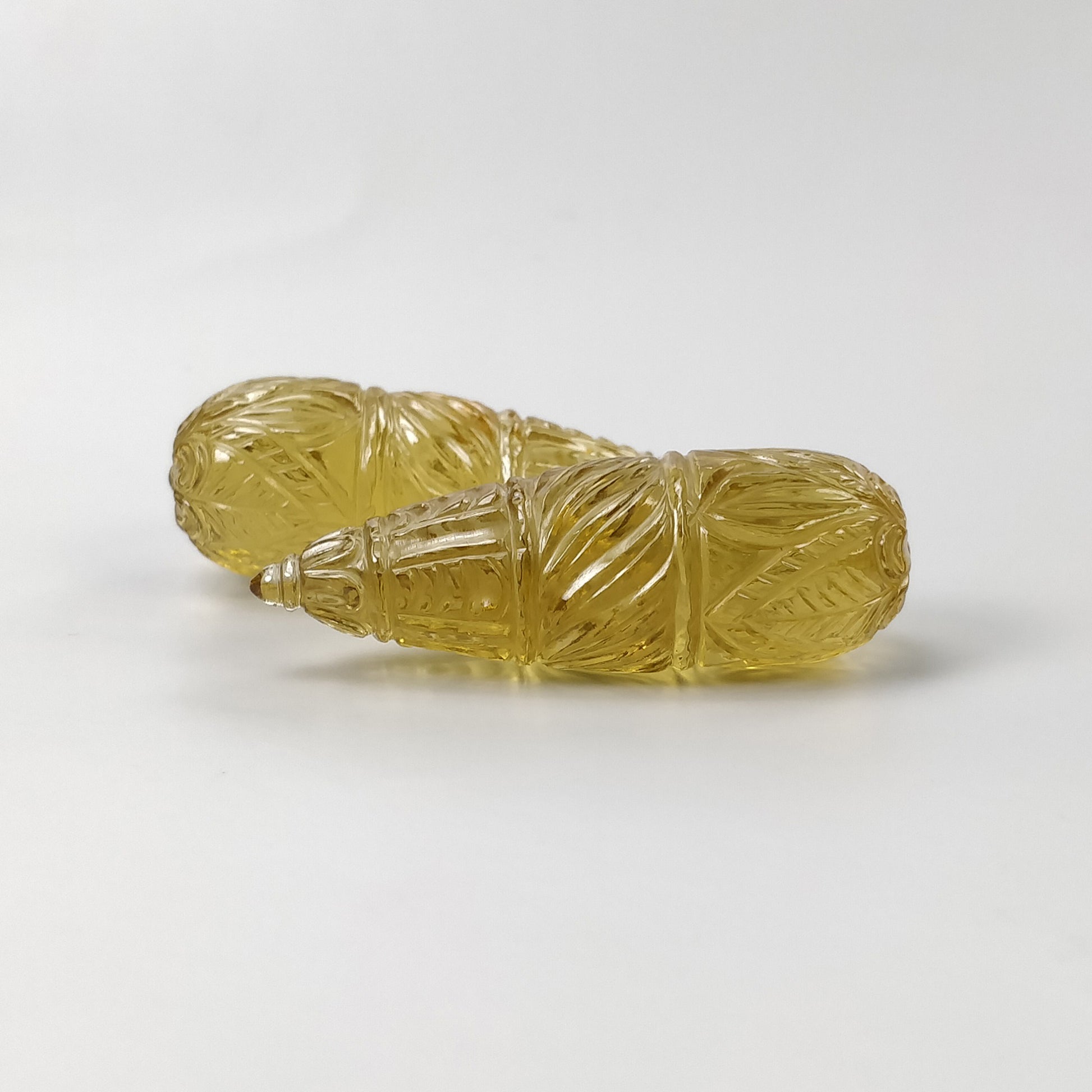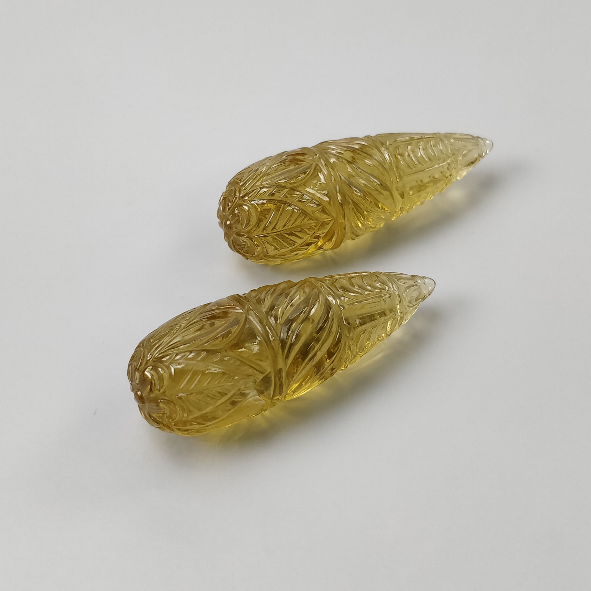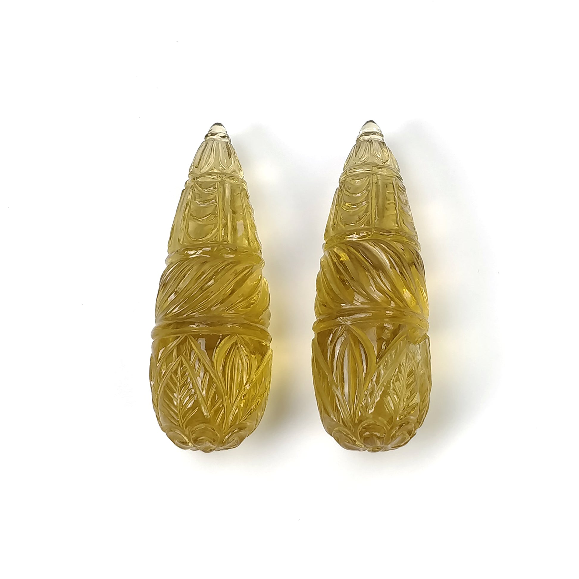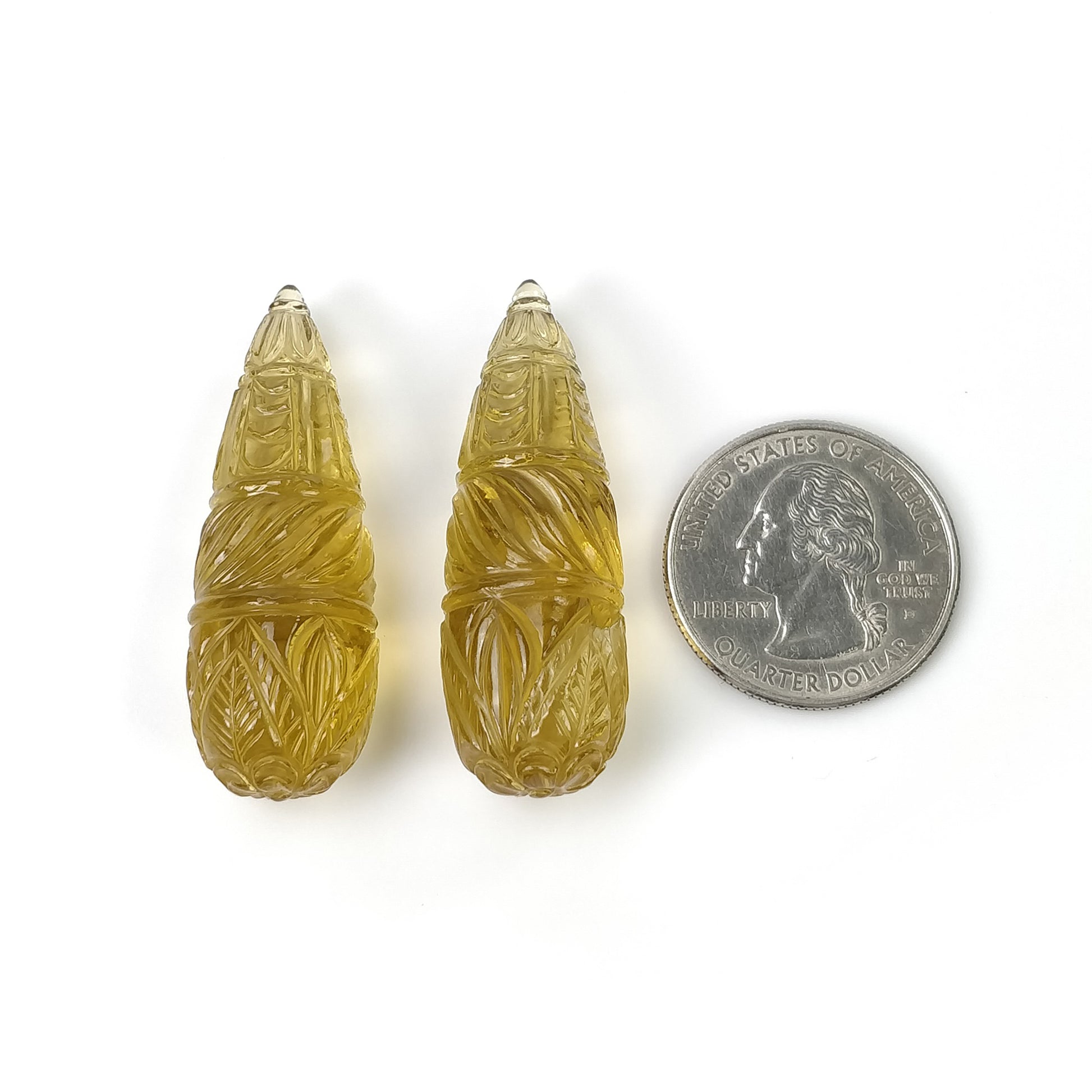 LEMON QUARTZ Gemstone Carving : 115.70cts Natural Untreated Quartz Hand Carved Teardrops Shape 43.5mm Pair