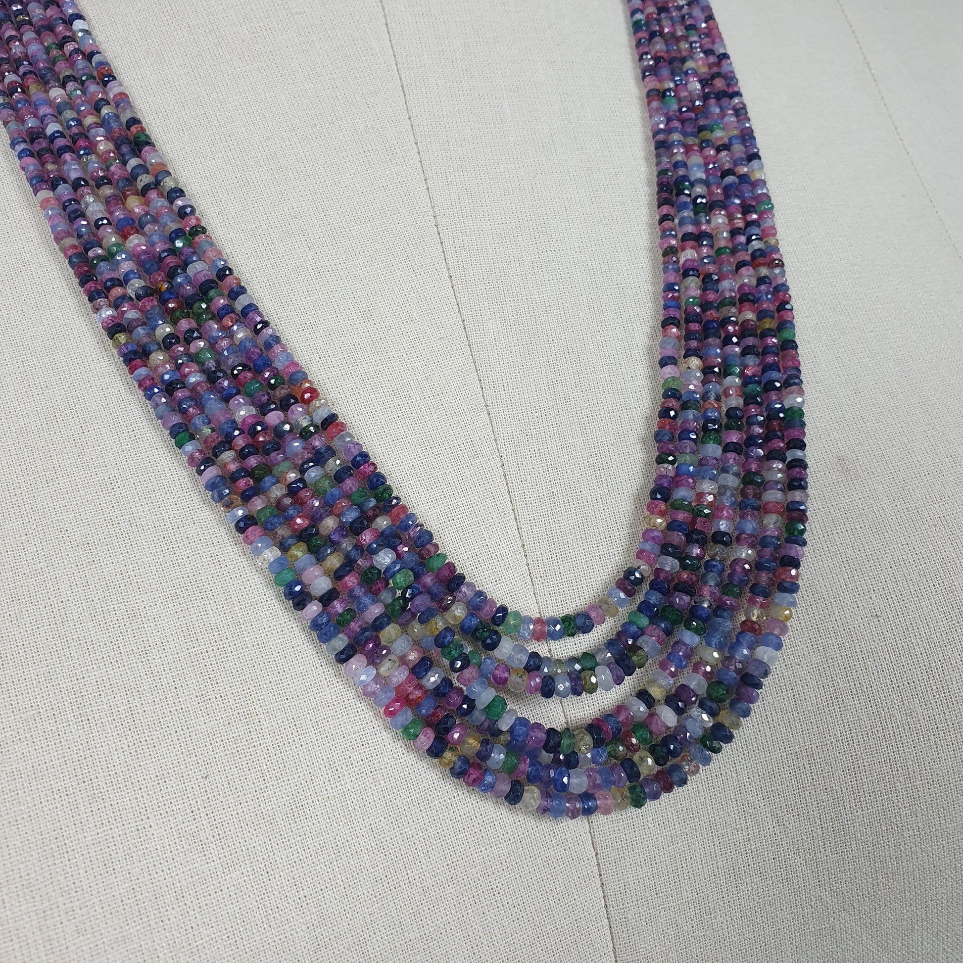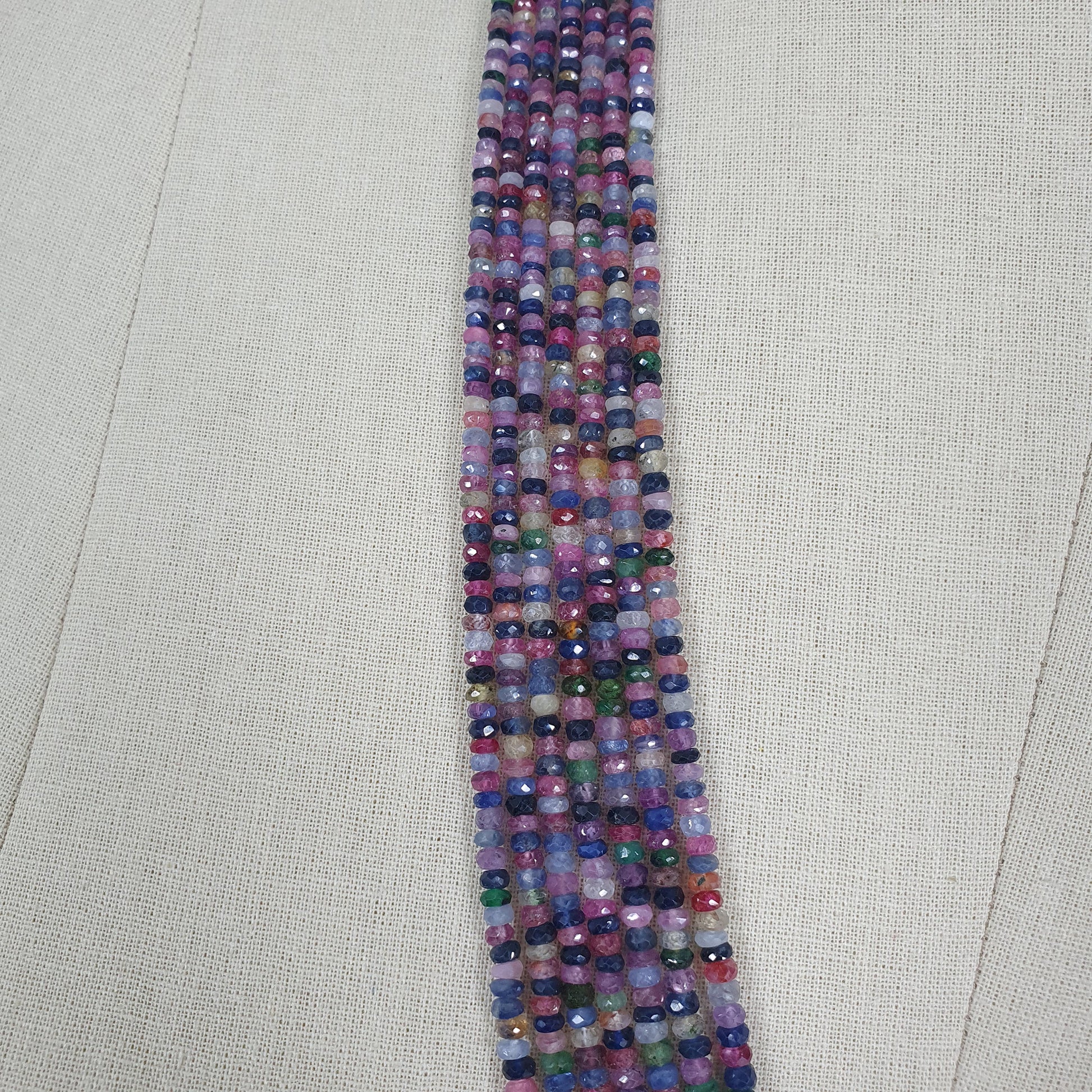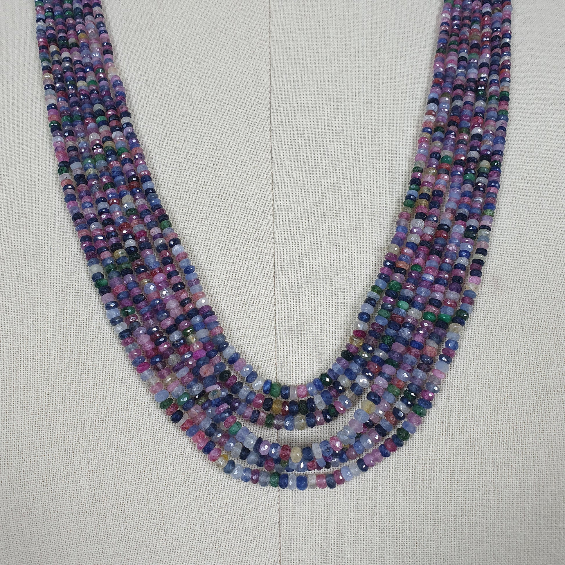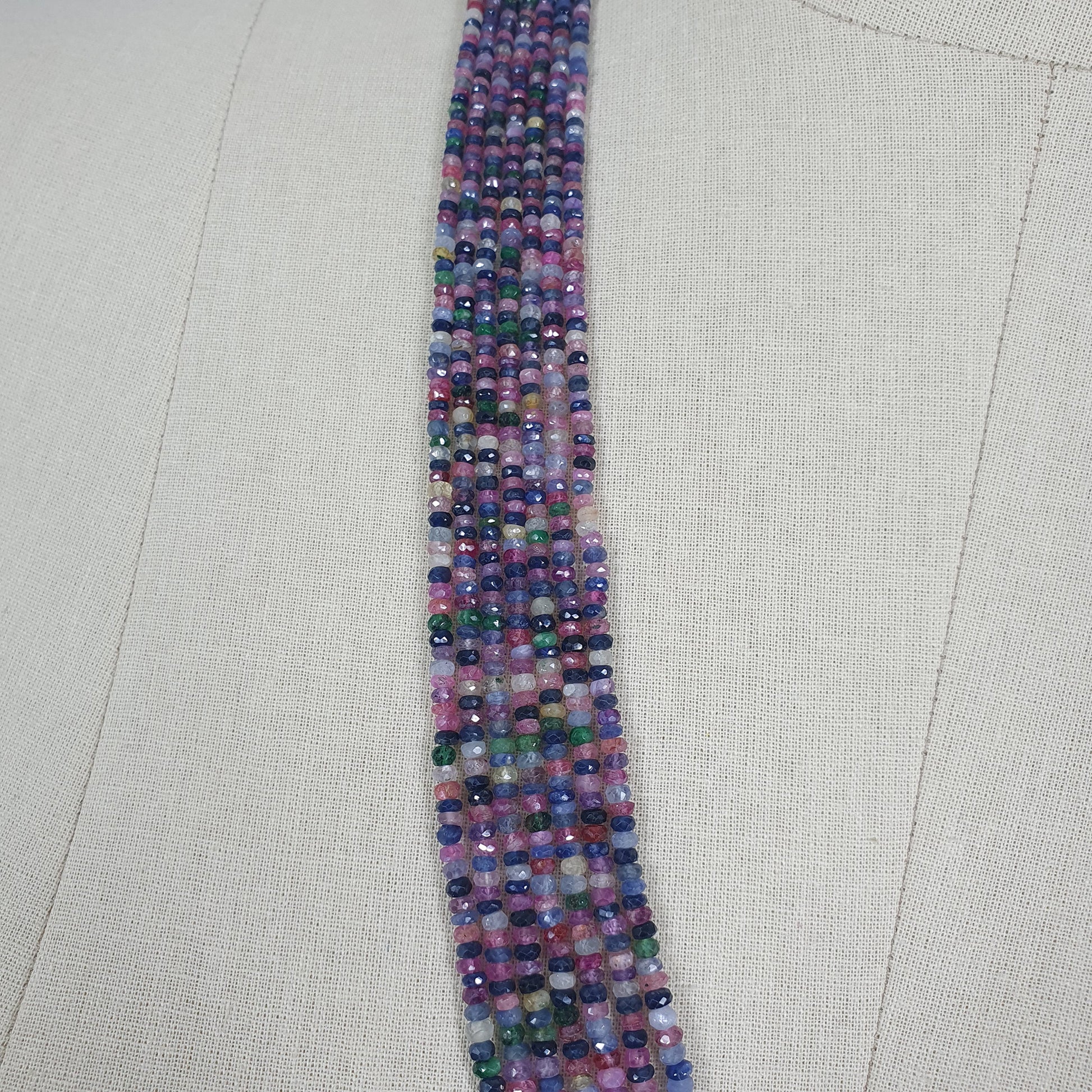 Natural Untreated MULTI SAPPHIRE Gemstone Faceted Shaded Rondelle Checker Cut Beads Necklace 18.2" - 20.2"