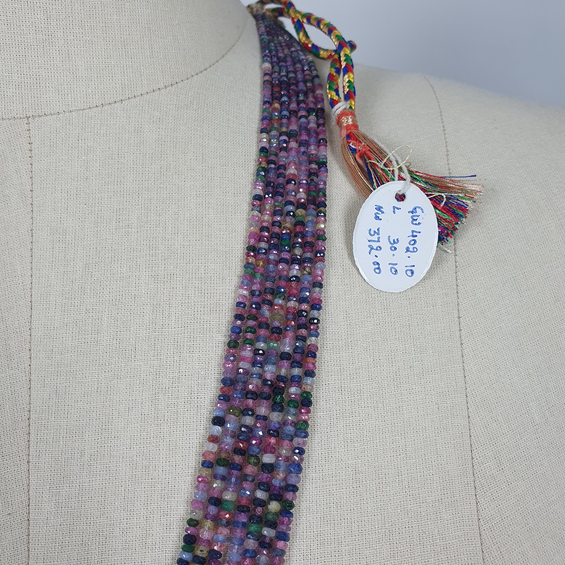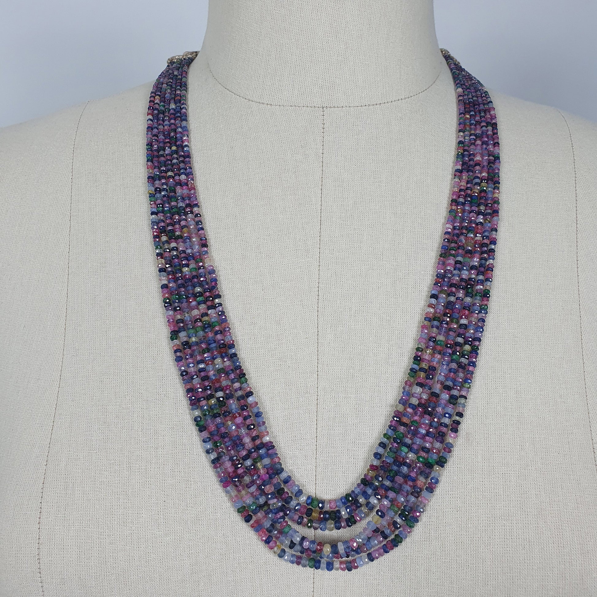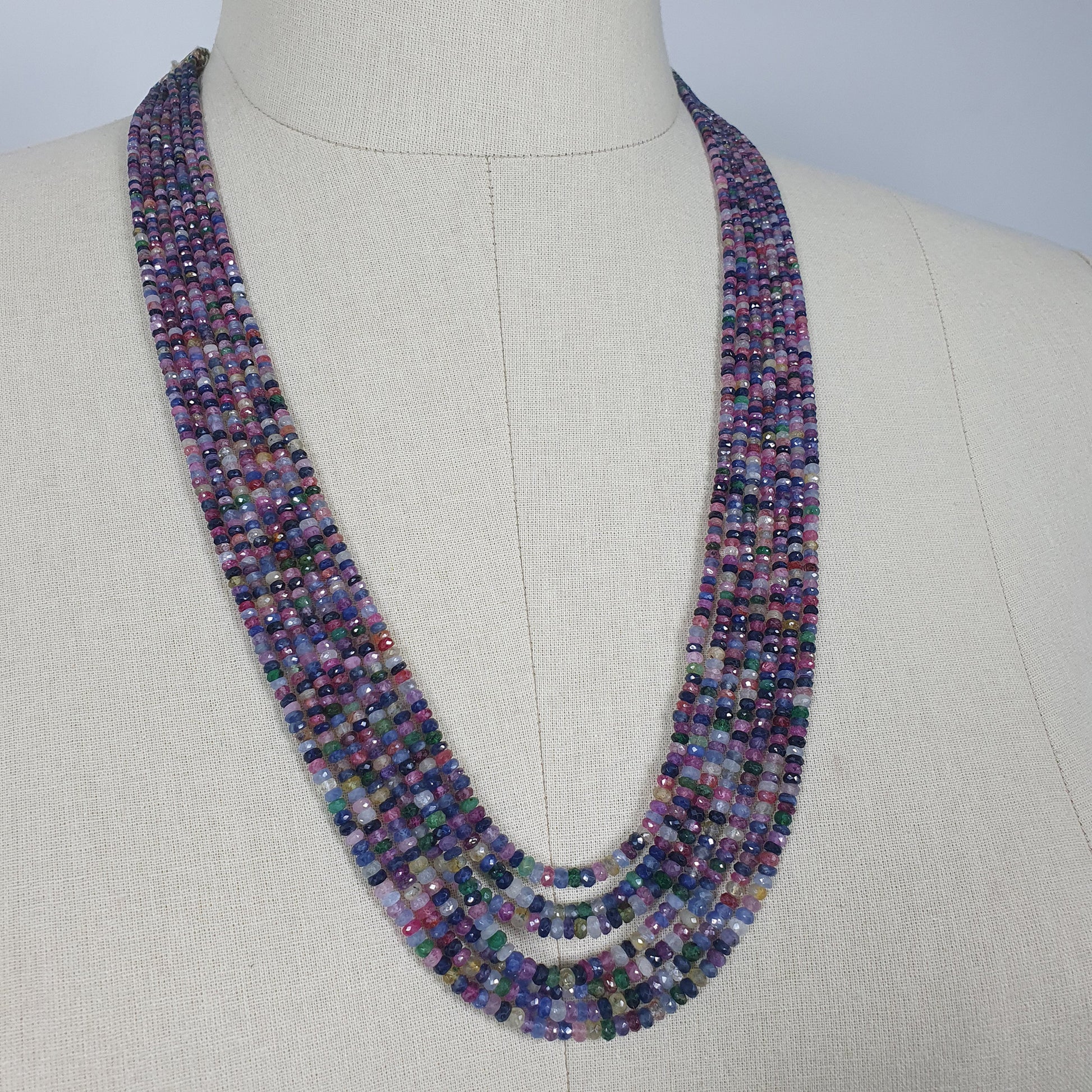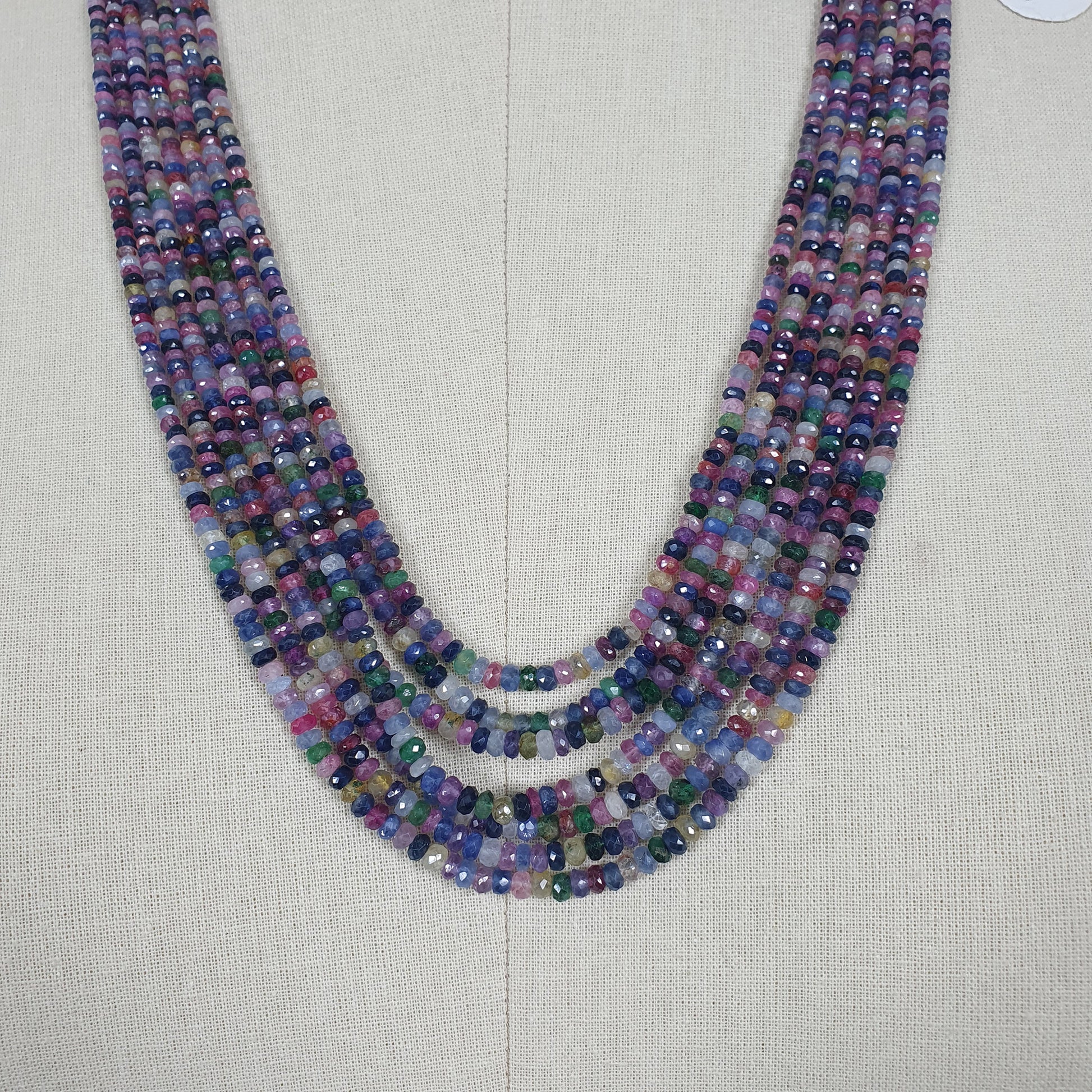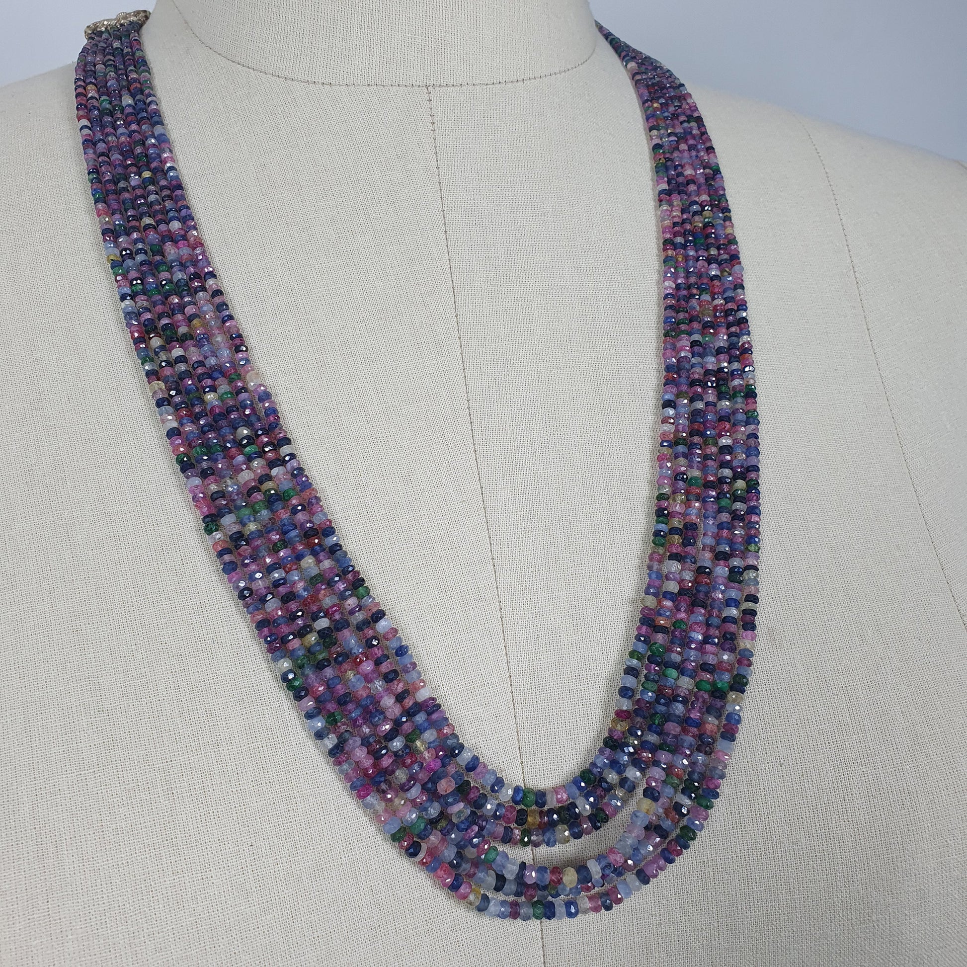 Natural Untreated MULTI SAPPHIRE Gemstone Faceted Shaded Rondelle Checker Cut Beads Necklace 18.2" - 20.2"