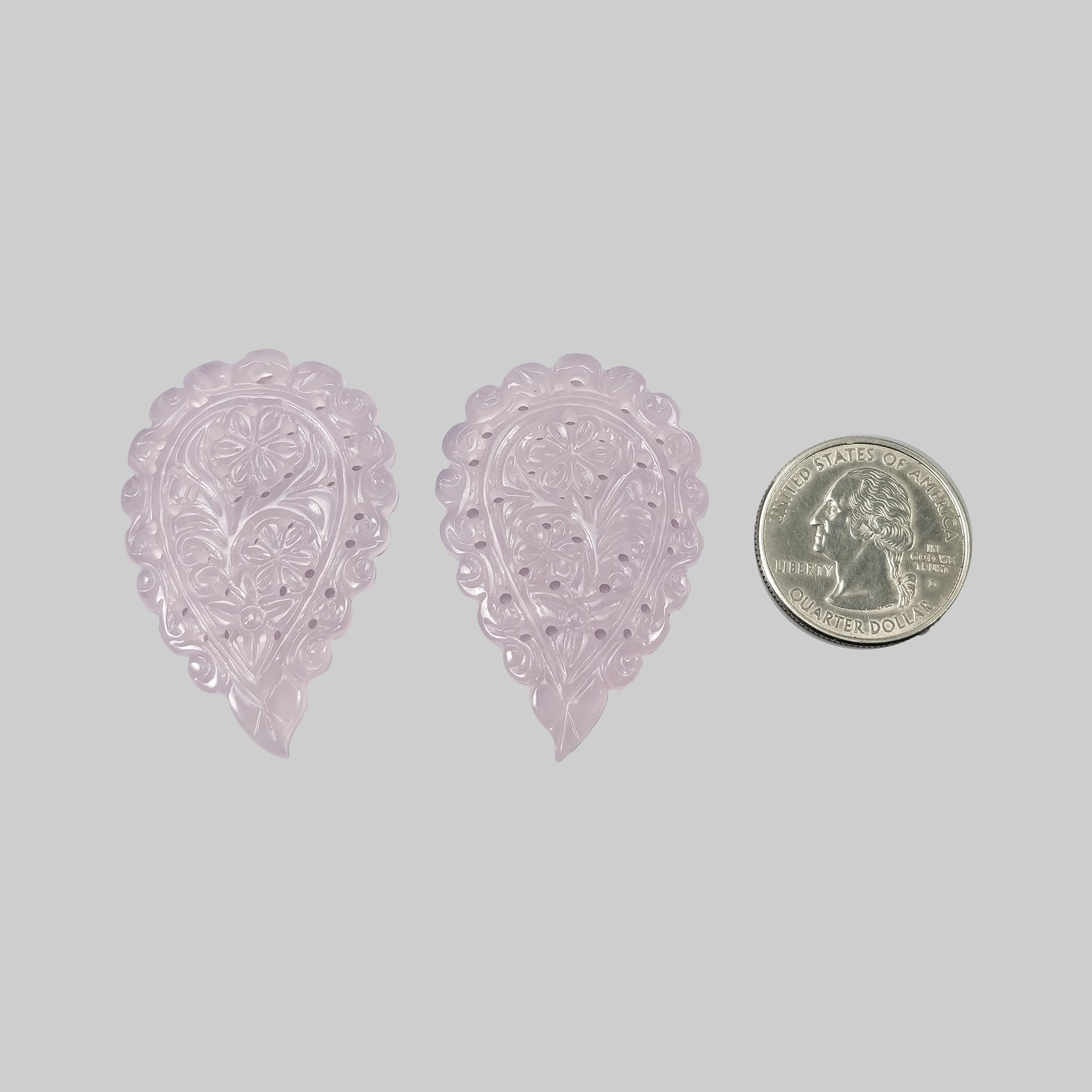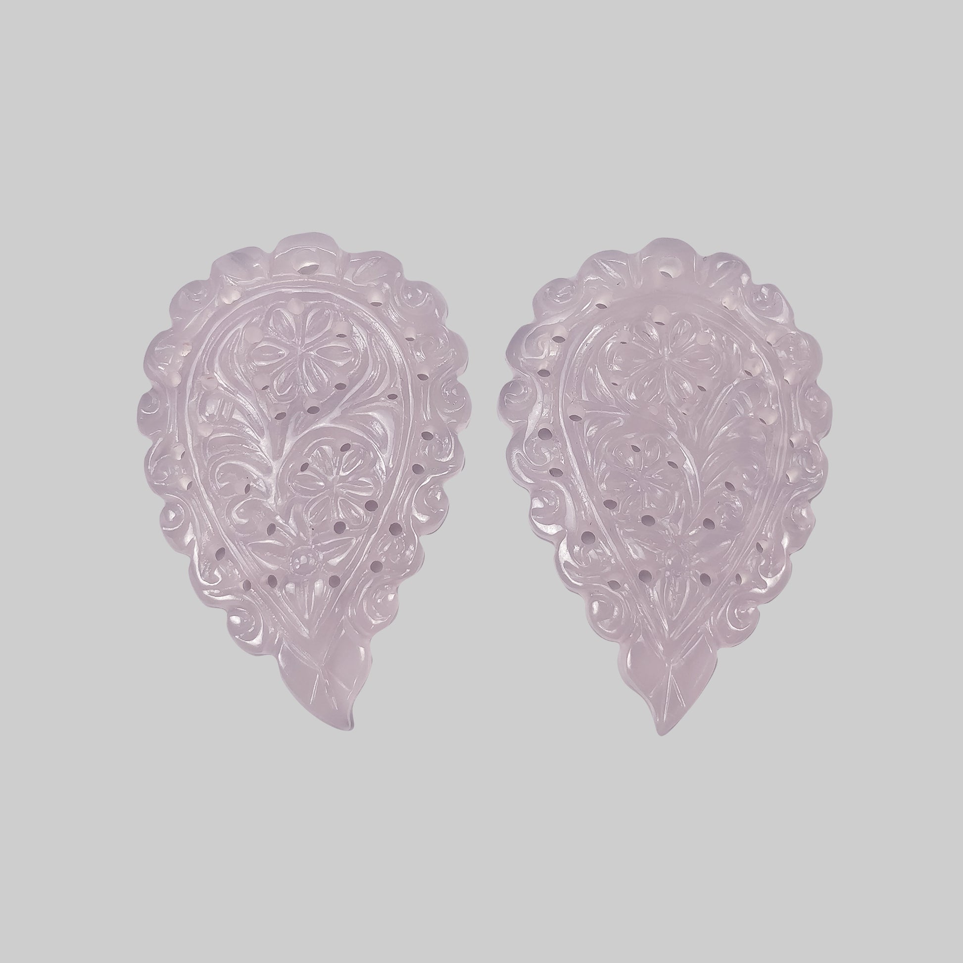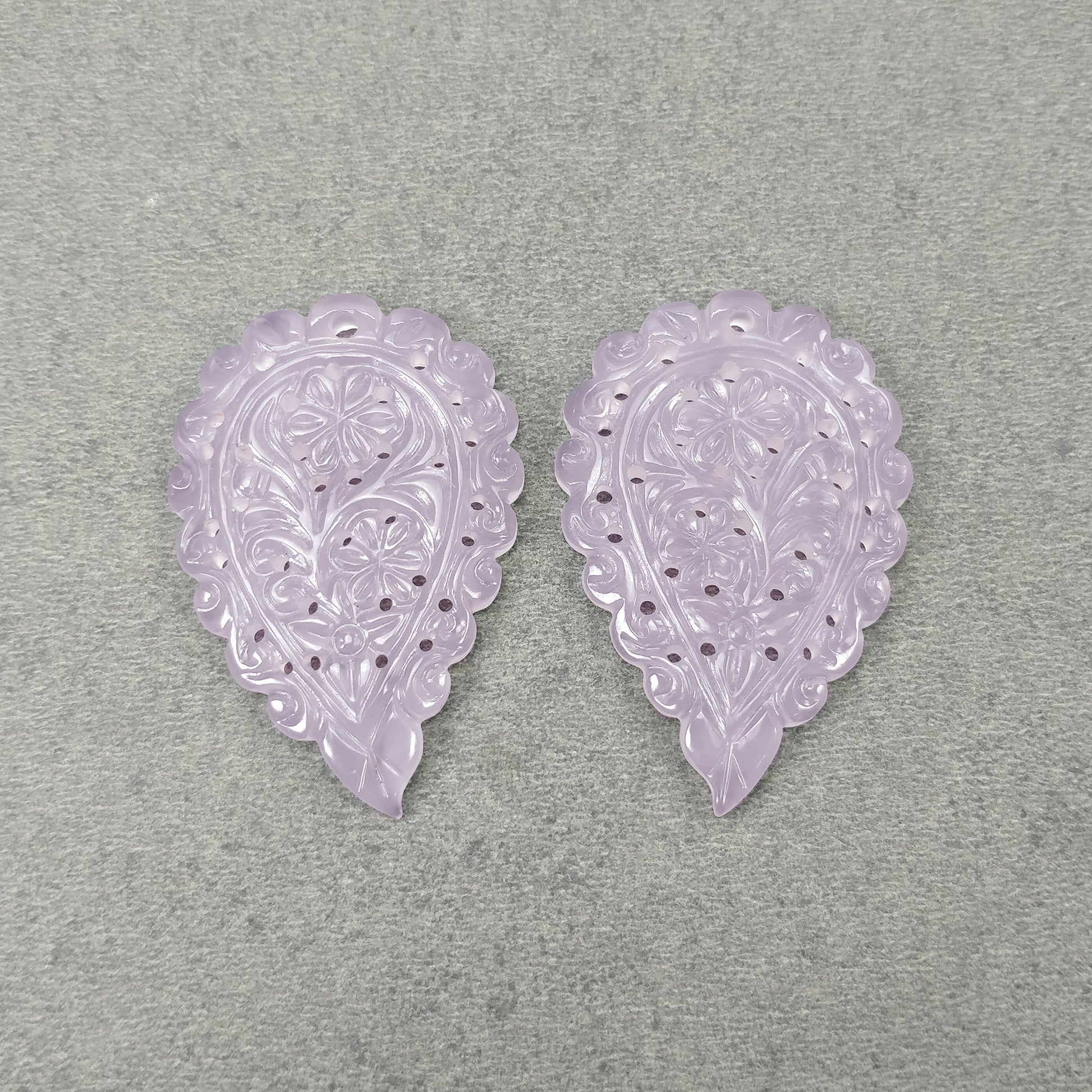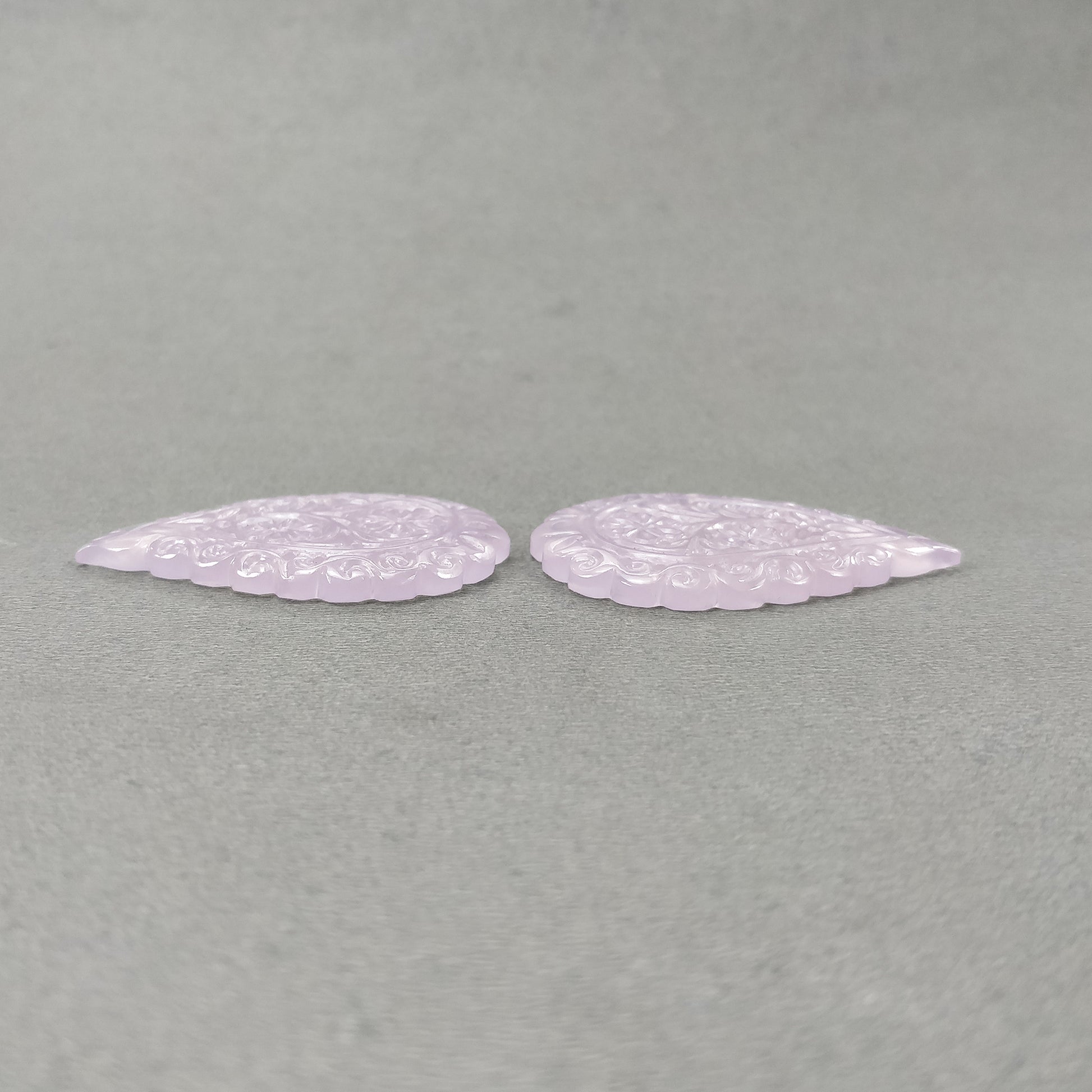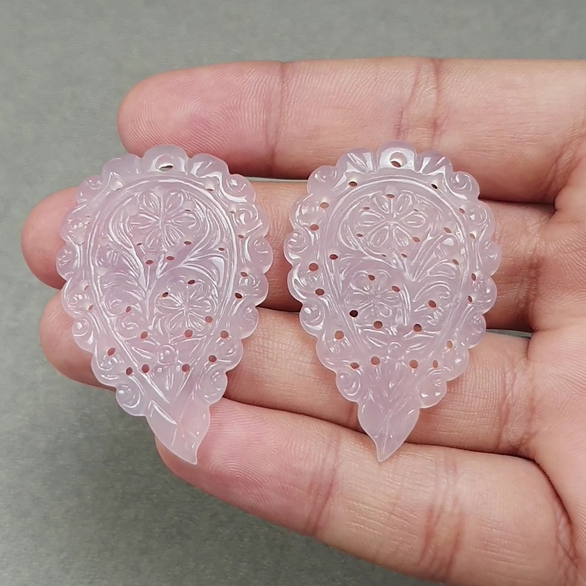 Chalcedony Gemstone Carving: 79.35ct Natural Untreated Pink Chalcedony One Side Hand Carved Indian Leaf 46*30.5mm- 46.5*31mm 2pc