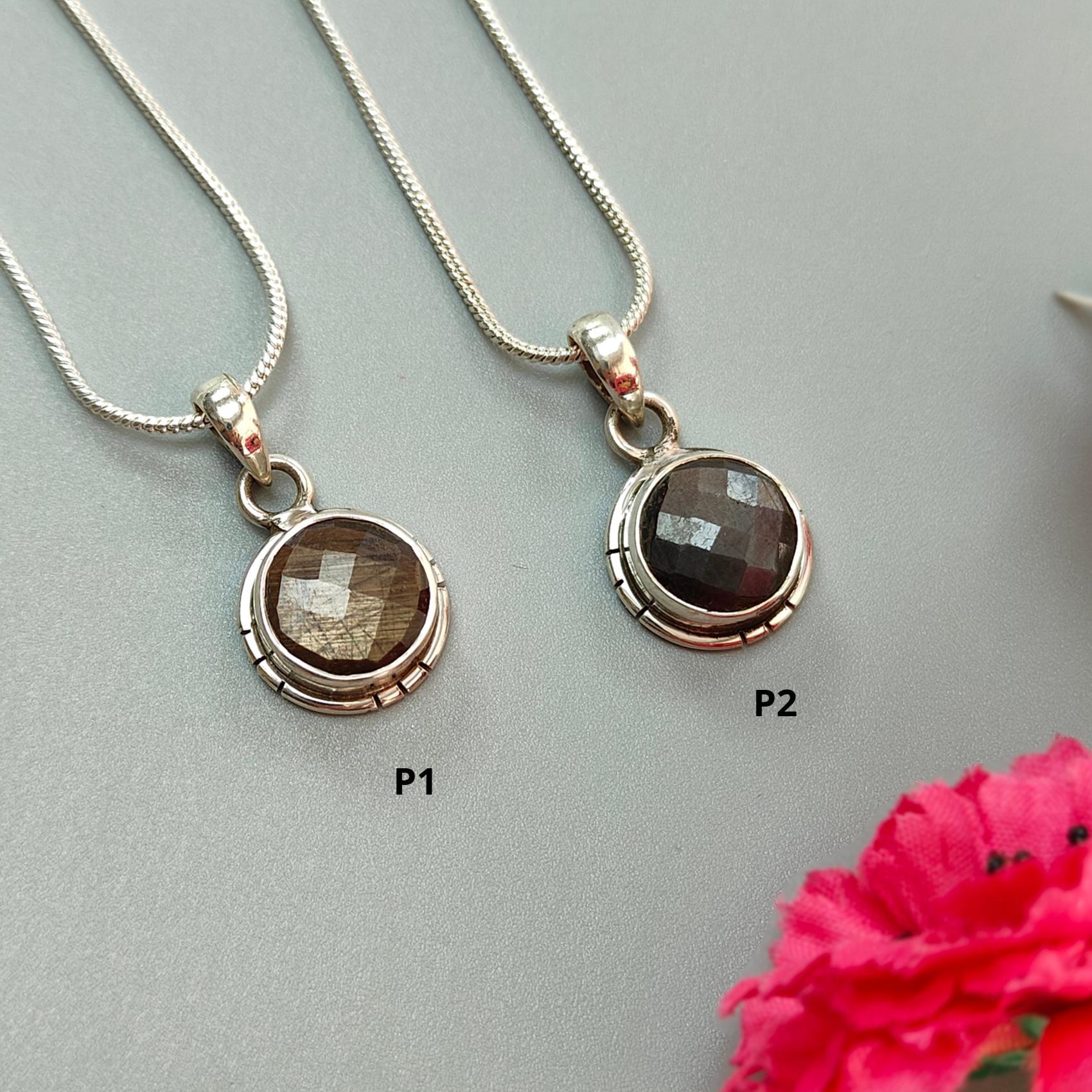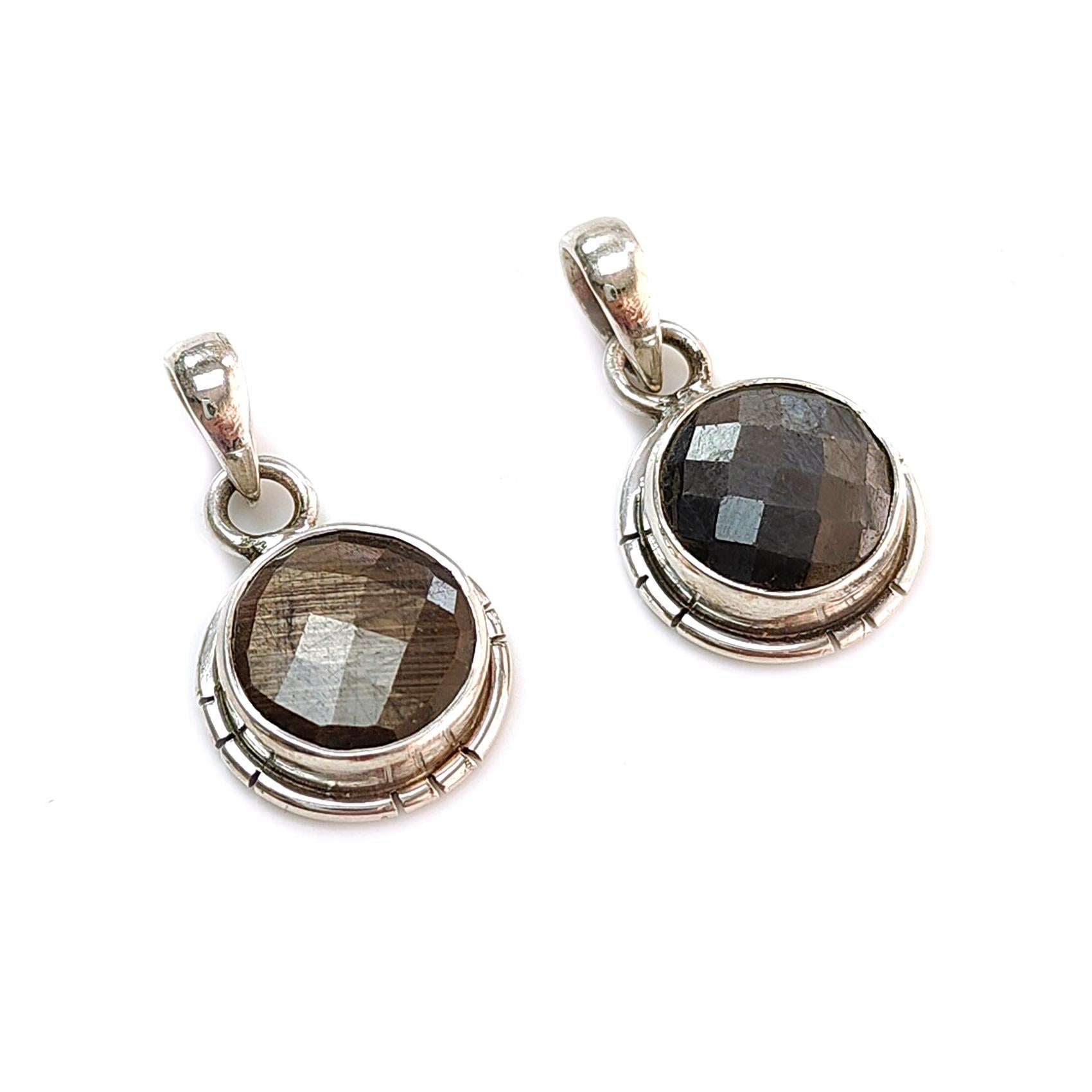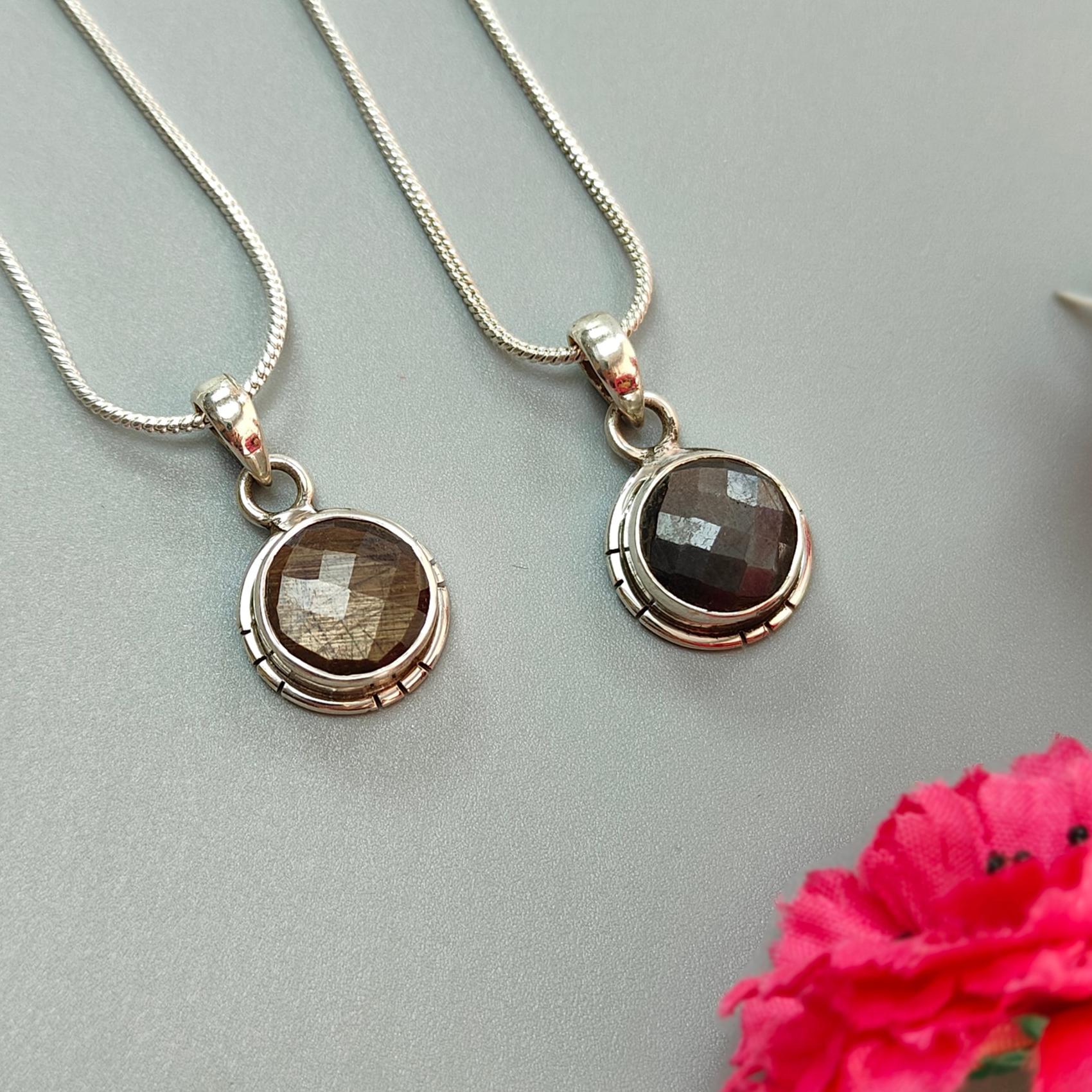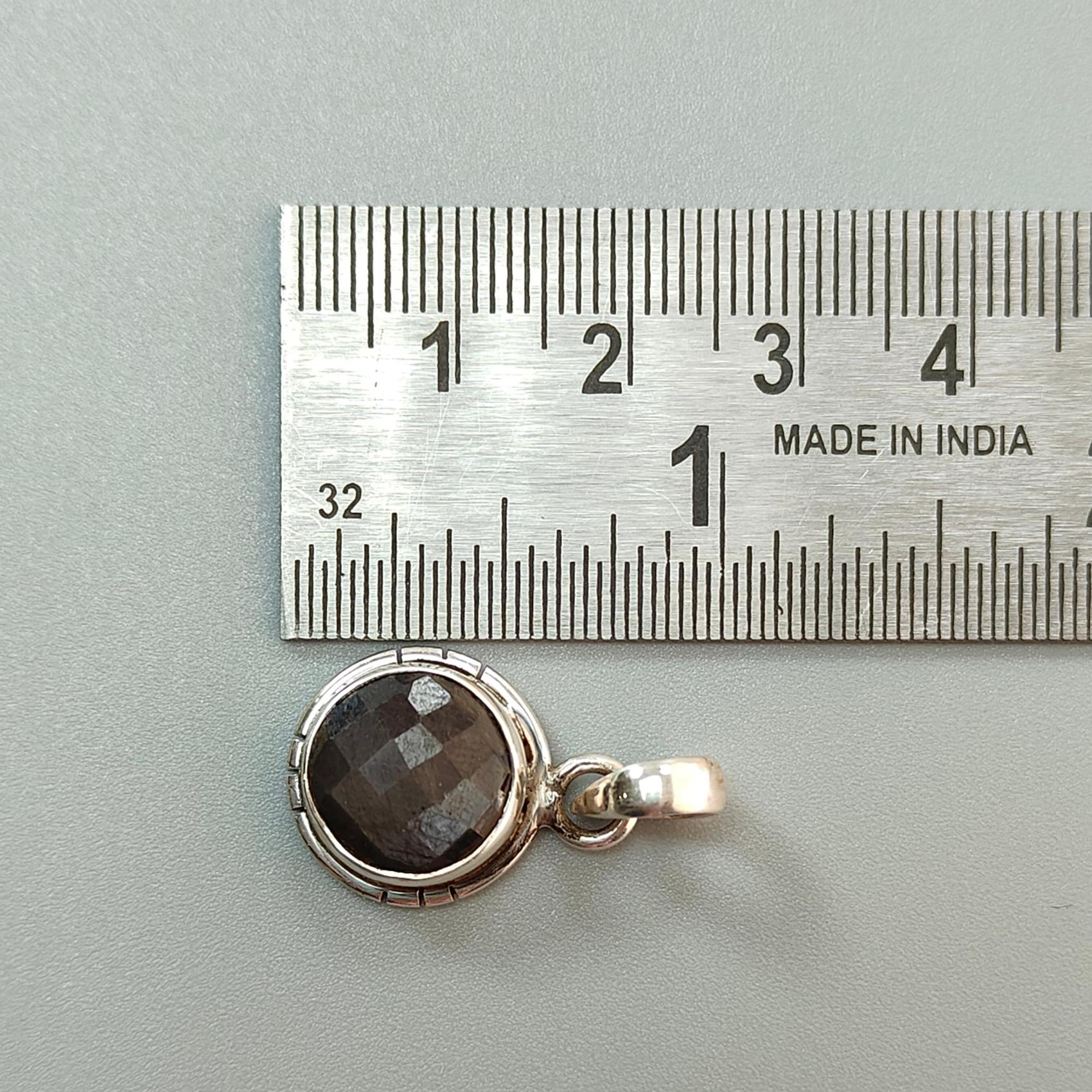 Golden, Silver Sapphire Faceted Silver Pendant: Natural Untreated Sapphire Round Checker Cut 925 Sterling Silver Bezel Set Pendant
