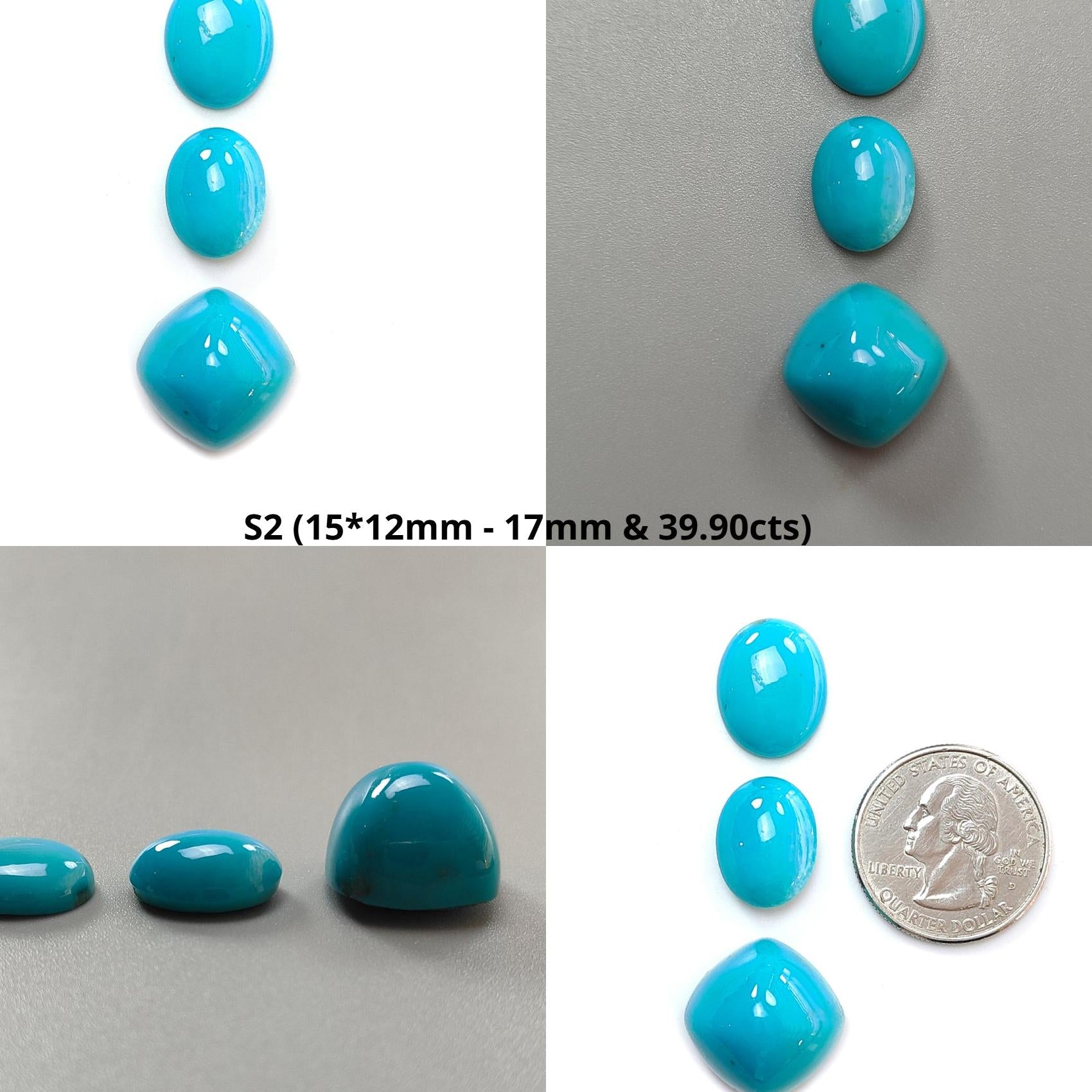 Blue Turquoise Gemstone Cabochon: Natural Untreated Sleeping Beauty Turquoise Oval, Cushion Shape 3pcs Set December Birthstone