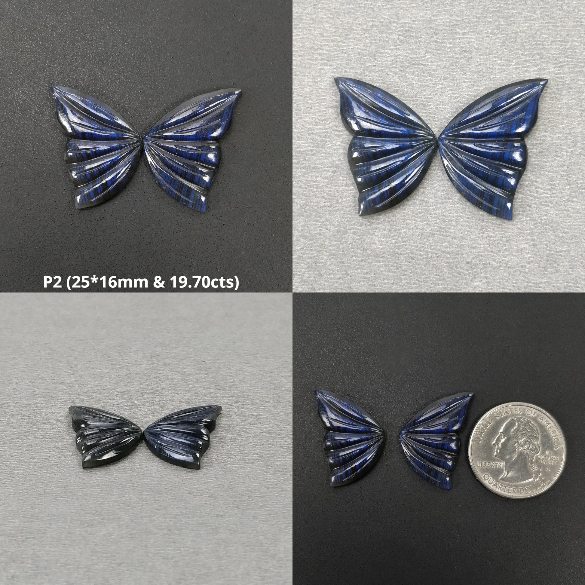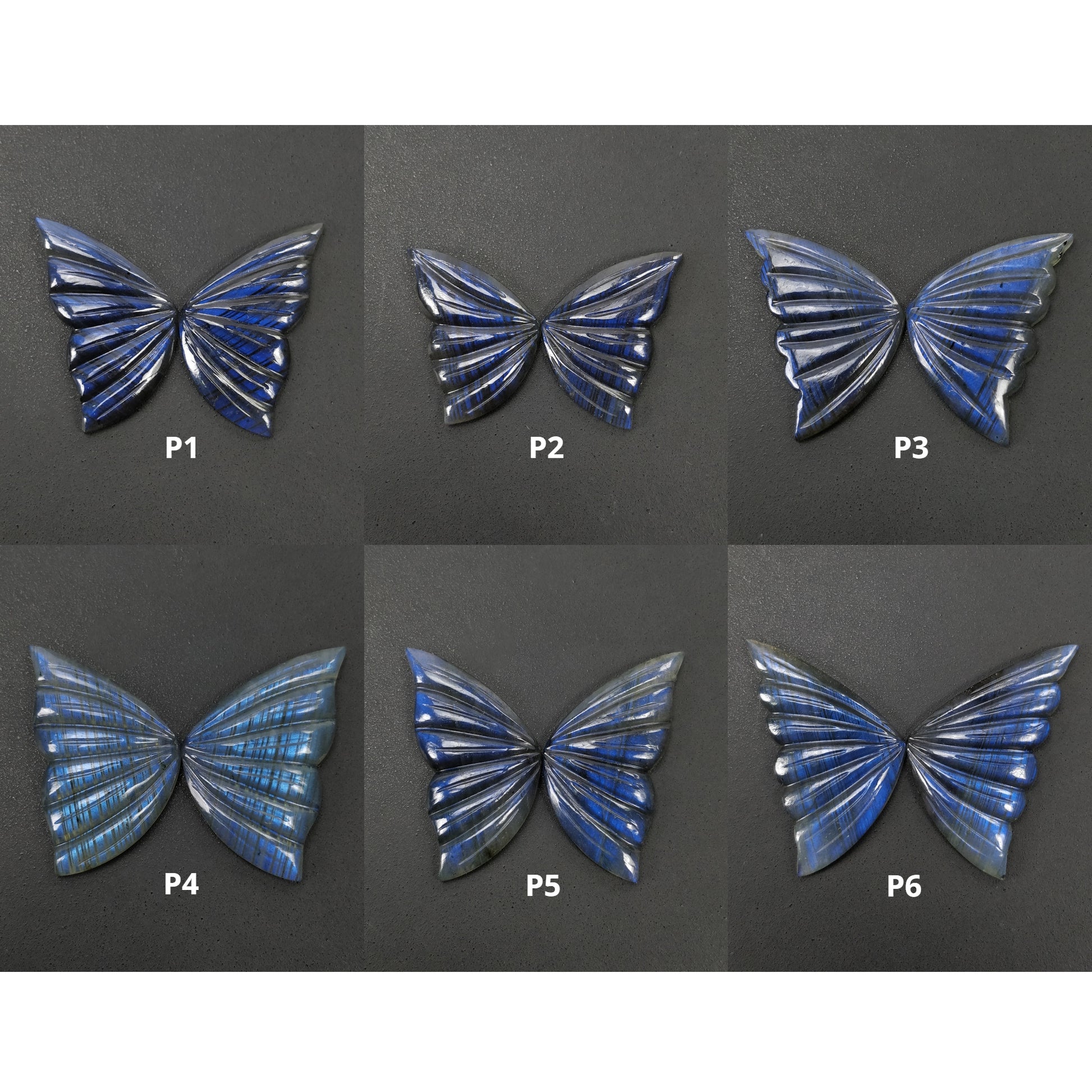 LABRADORITE Gemstone Carving : Natural Untreated Unheated Labradorite Hand Carved Butterfly Sets